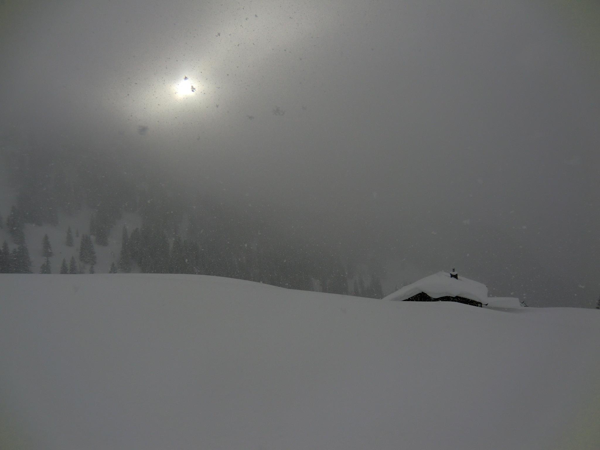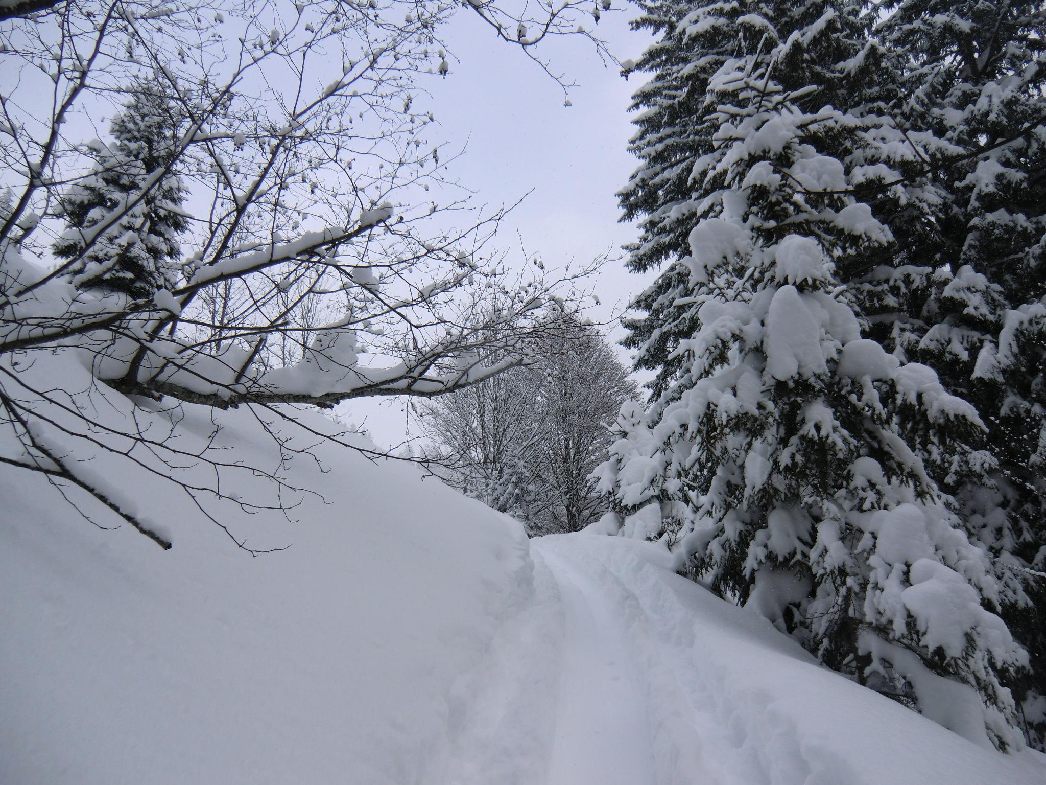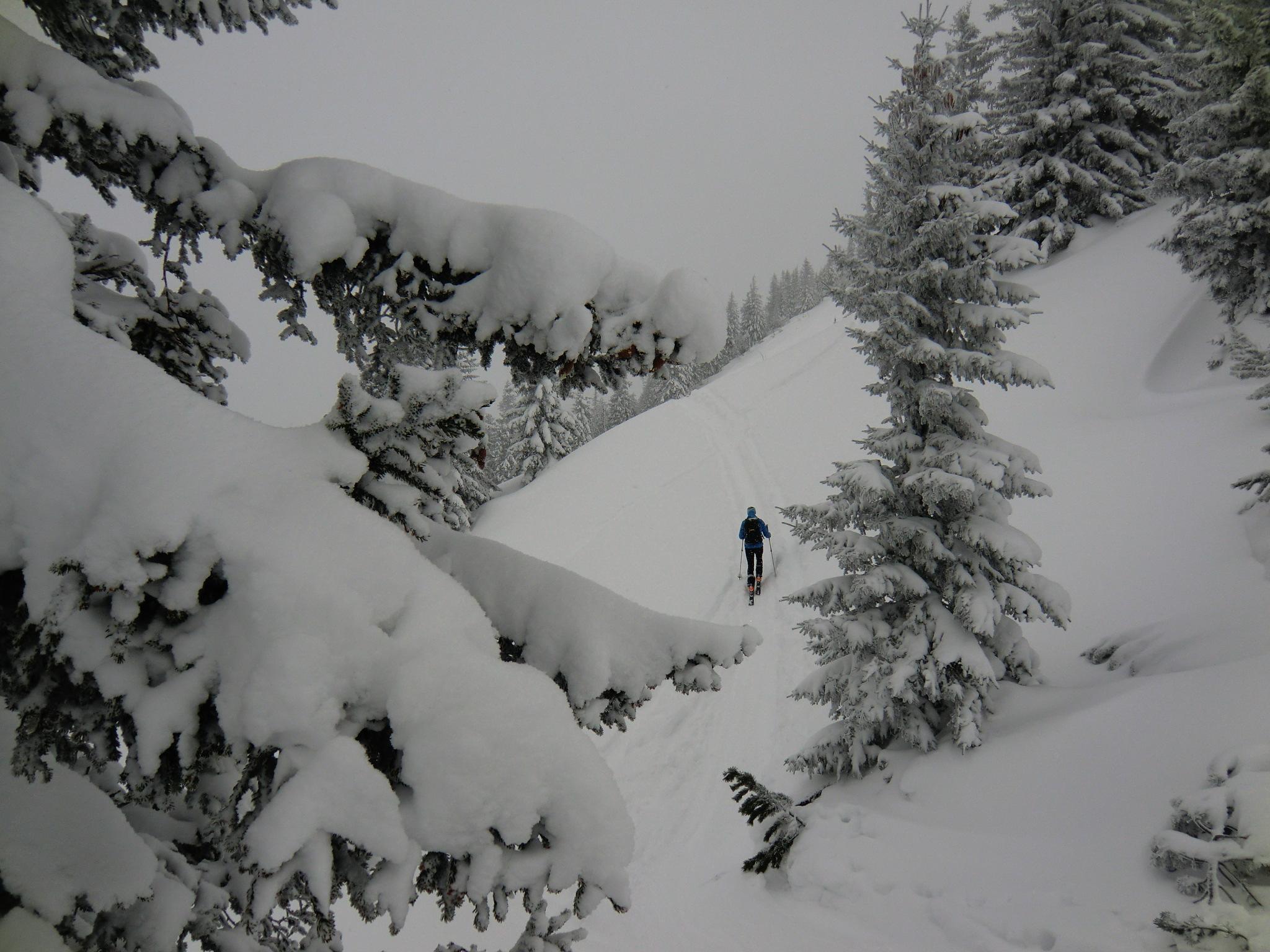 Die Schneepakete auf den Bäumen reichen bei meiner Körpergröße locker für eine Totalverschüttung aus. Mehr als 50cm Neuschnee sind in den letzten Tagen gefallen, aber offensichtlich nicht unter starkem Windeinfluß. Reichlich Schneeschauer wurden heute immer wieder von sonnigen Auflockerungen unterbrochen. Beim Aufstieg reichte die Sicht grade mal bis zu den Schispitzen – aber mehr braucht´s da ja auch nicht. Die Sicht wurde zunehmend besser. Das Abfahrtsvergnügen wurde durch die gewaltigen Neuschneemengen etwas gebremst, aber dafür konnte man heute auch mal die steileren Passagen in Angriff nehmen. Ein Winterzaubermärchentag... der ein bisschen bilderlastig ausfällt ;-)