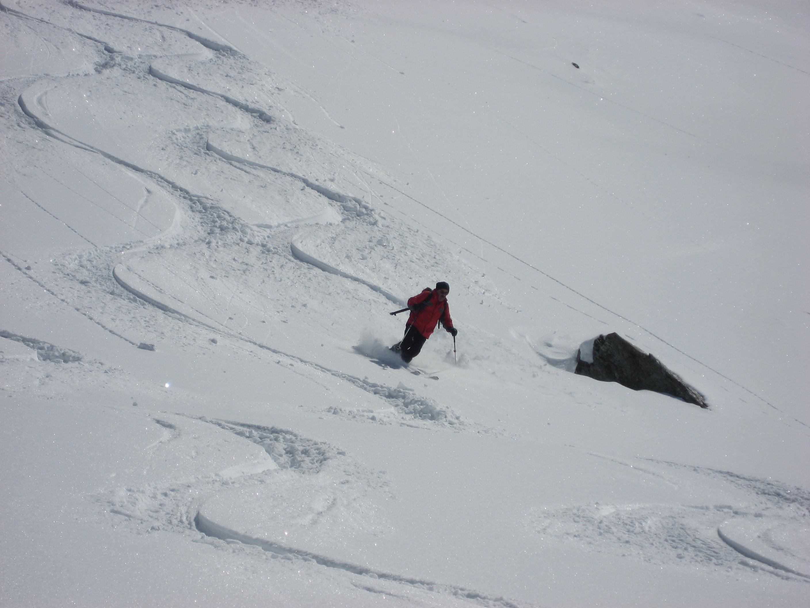 Solche Bedingungen gibt es nur einmal in hundert Jahren! Wolkenloses Wetter, 20 cm Pulverschnee im freien Gelände, Seilbahn wegen Wochentag nicht in Betrieb, dafür für das Wochenende perfekt präparierte Pistemit 5 cm Pulverschneeauflage! Nur ca. 15 Tourengeher unterwegs, daher fast alle Hänge unberührt. Die Wahl fiel schwer zwischen Piste und freien Hängen! Abfahrt problemlos bis zum Parkplatz.