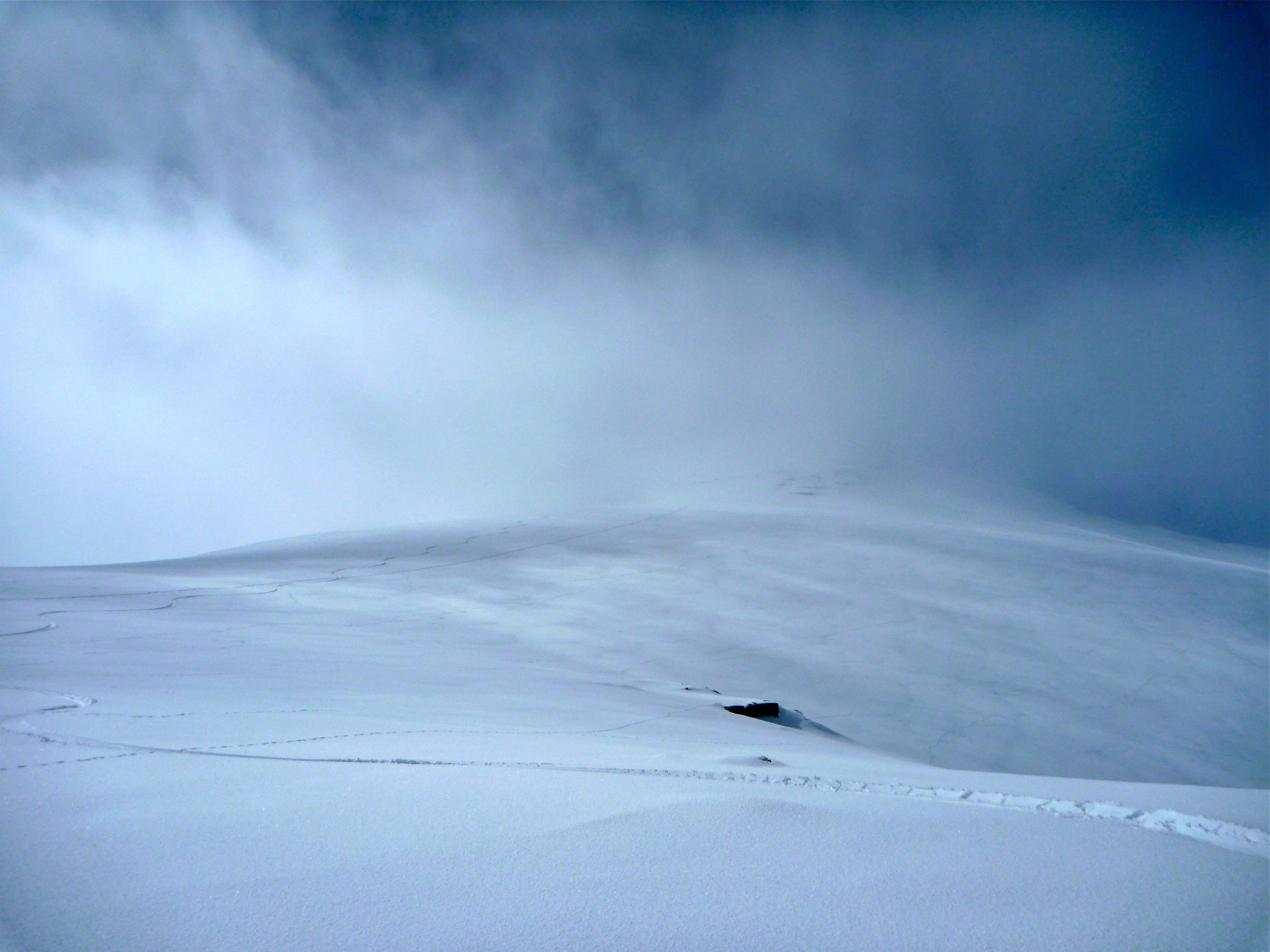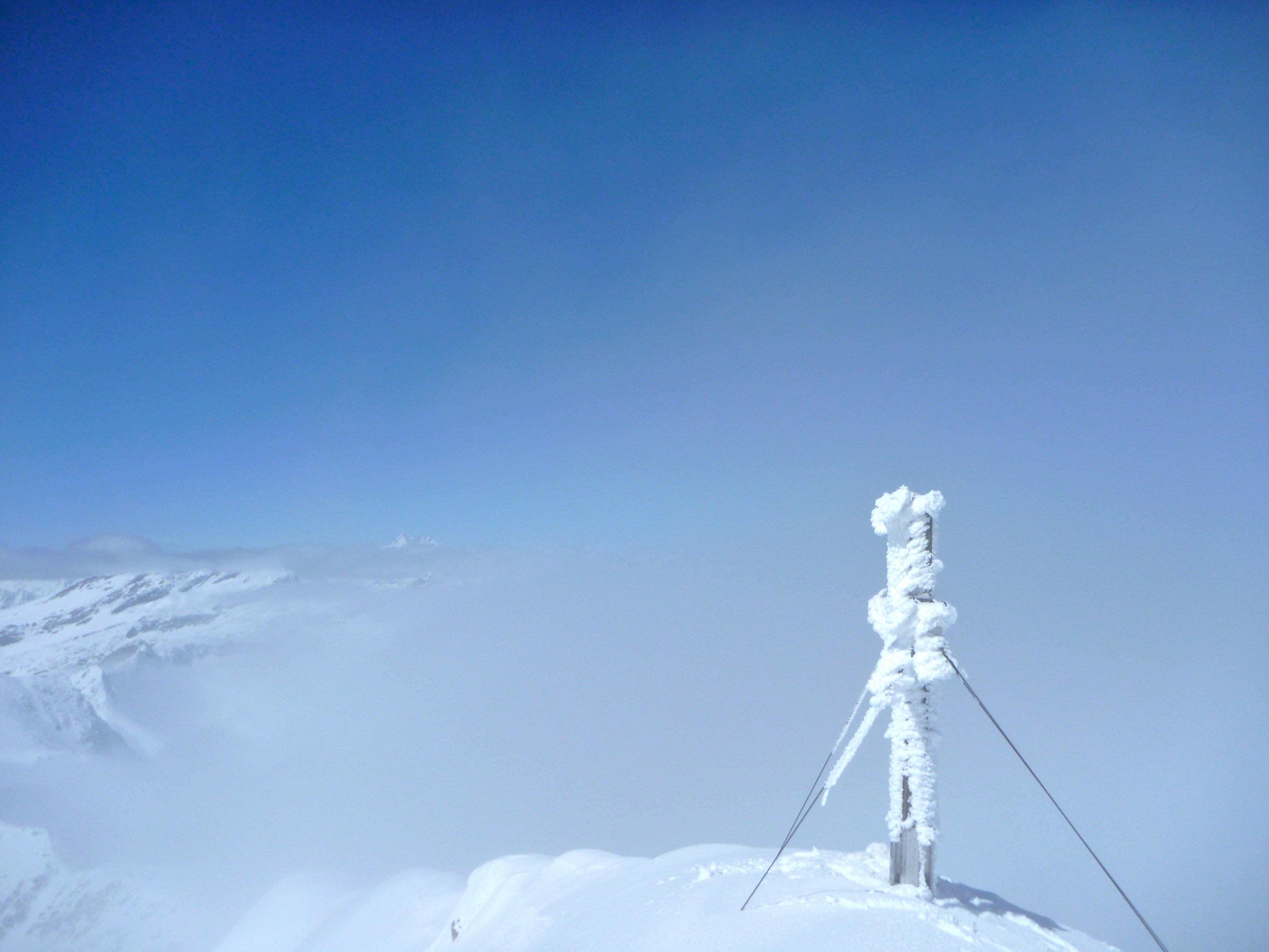 Wetter: anfangs Schneefall, schlechte Sicht, zw. 2000m und 2500m totales Whiteout (Nebel Wolken), darüber Blue Sky mit Wolken- und Nebelfetzen