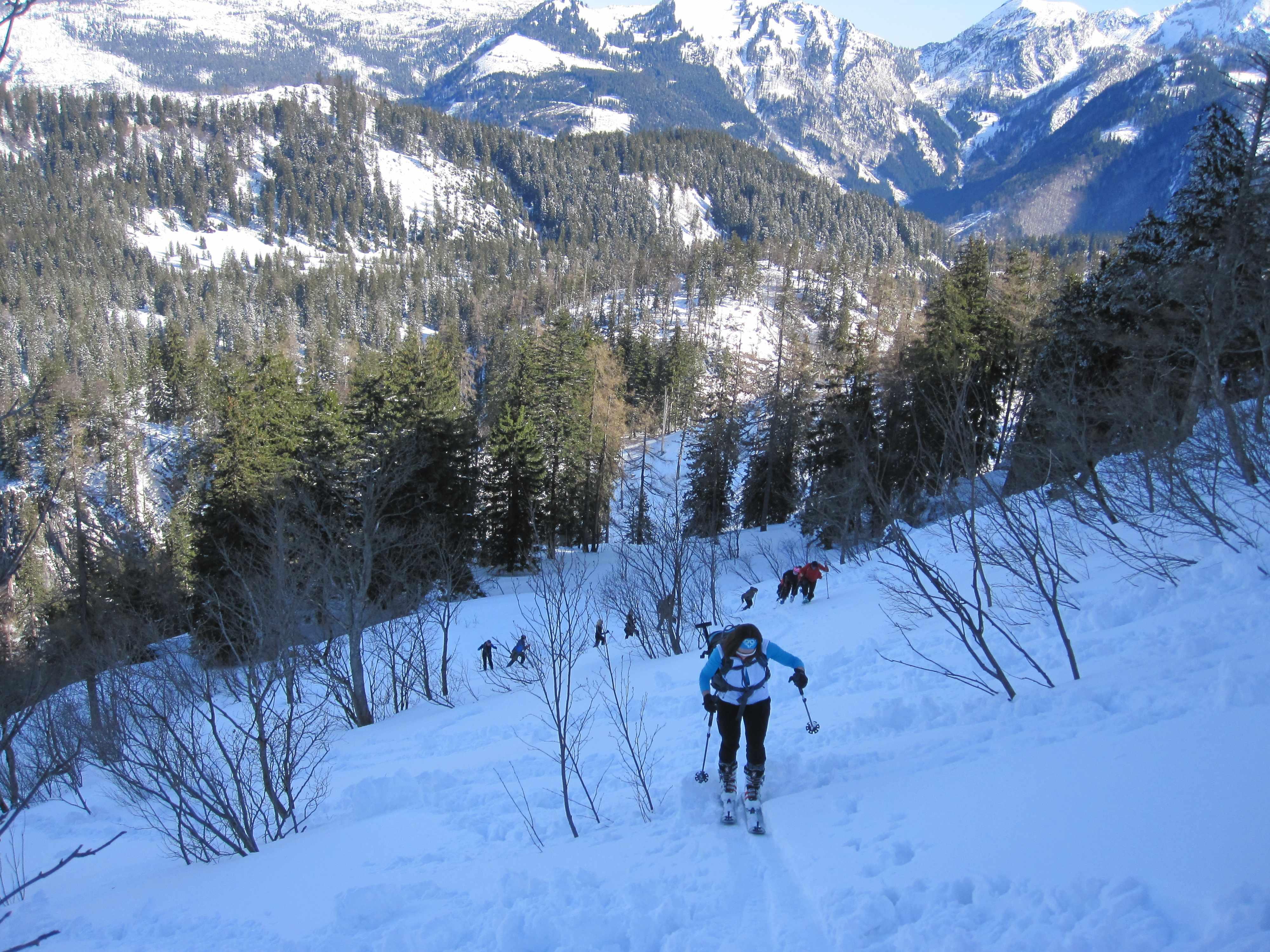 Die Schitour geht anfangs den Lift entlang u. dreht nach den Sandlingalmen auf die Nordseite.