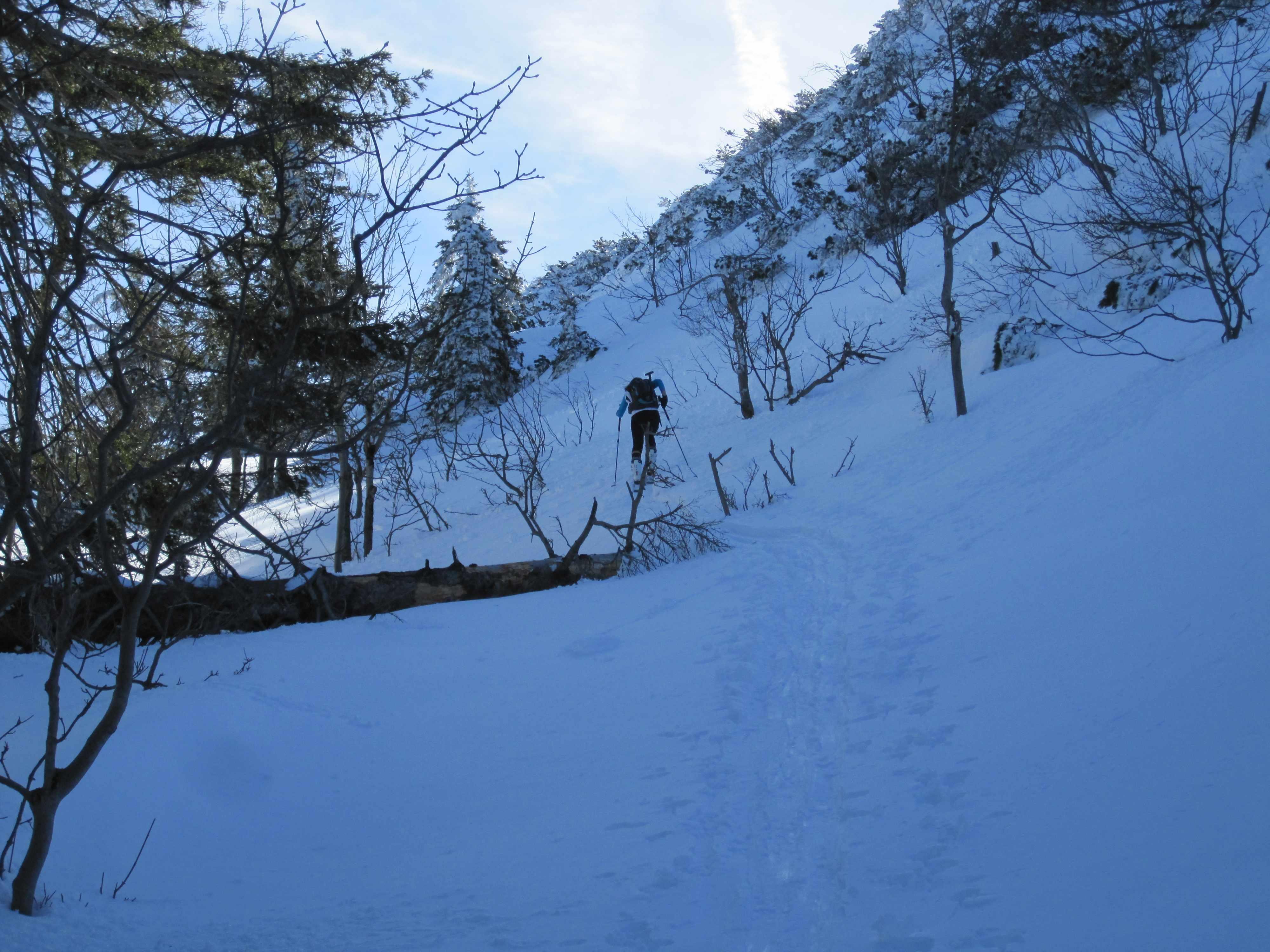 Die Abfahrt ging in den Süd/Osthang welcher schon etwas aufgeweicht u. von den Nassschneerutschern entsprechend durchzogen, aber trotzdem noch einigermaßen gut und sicher zu fahren war.