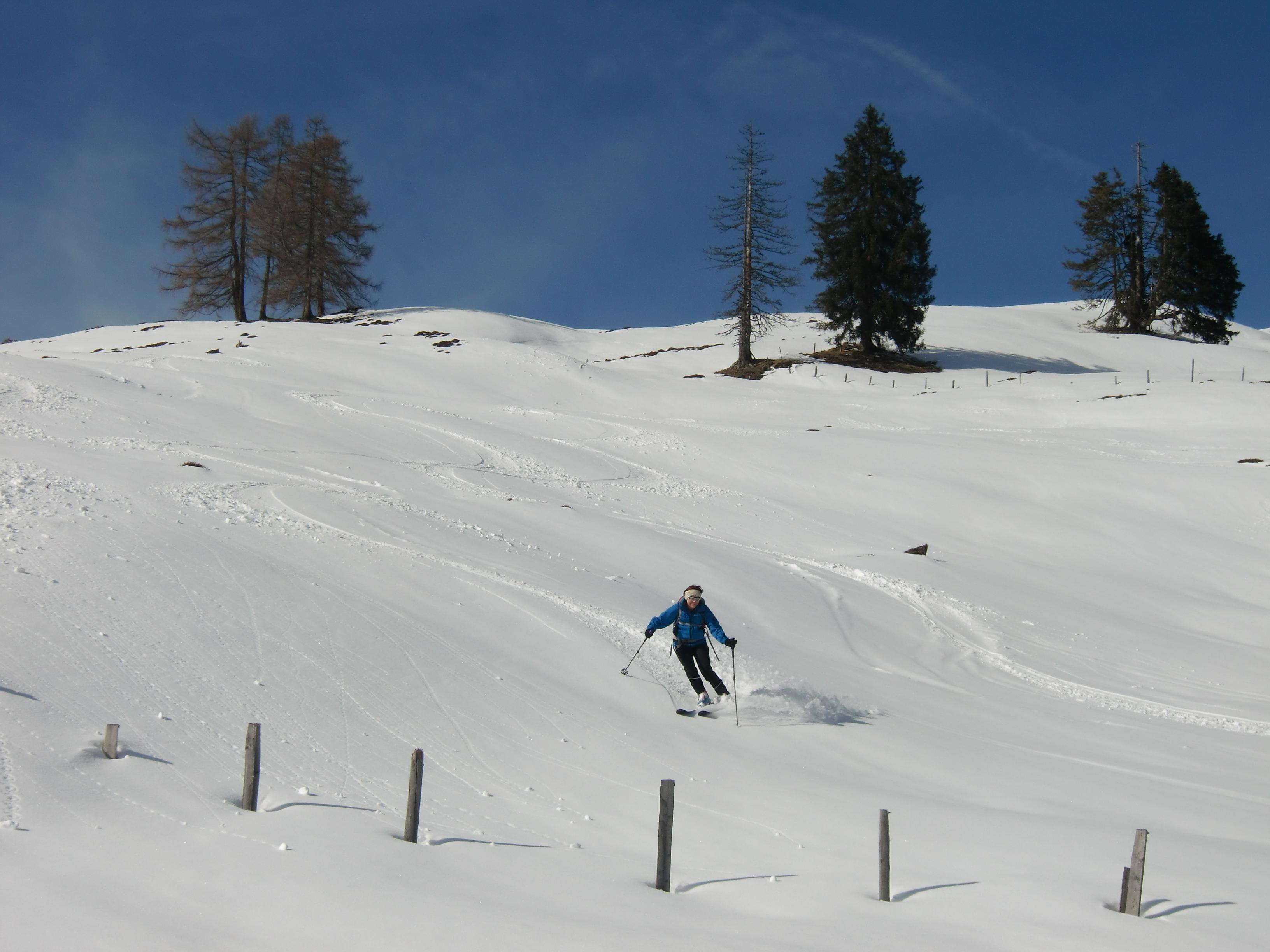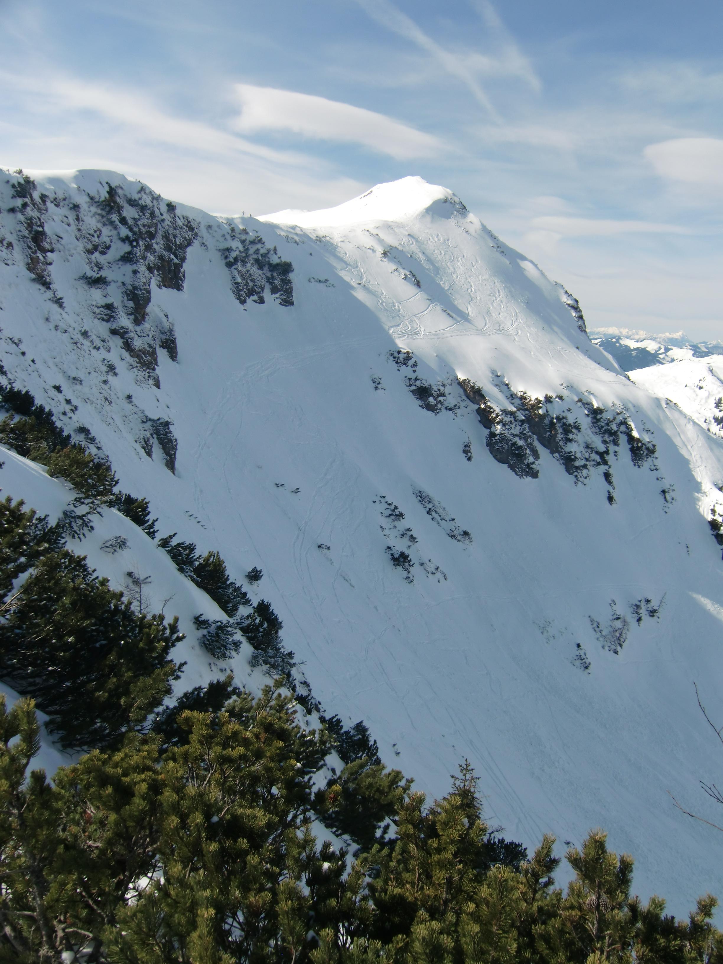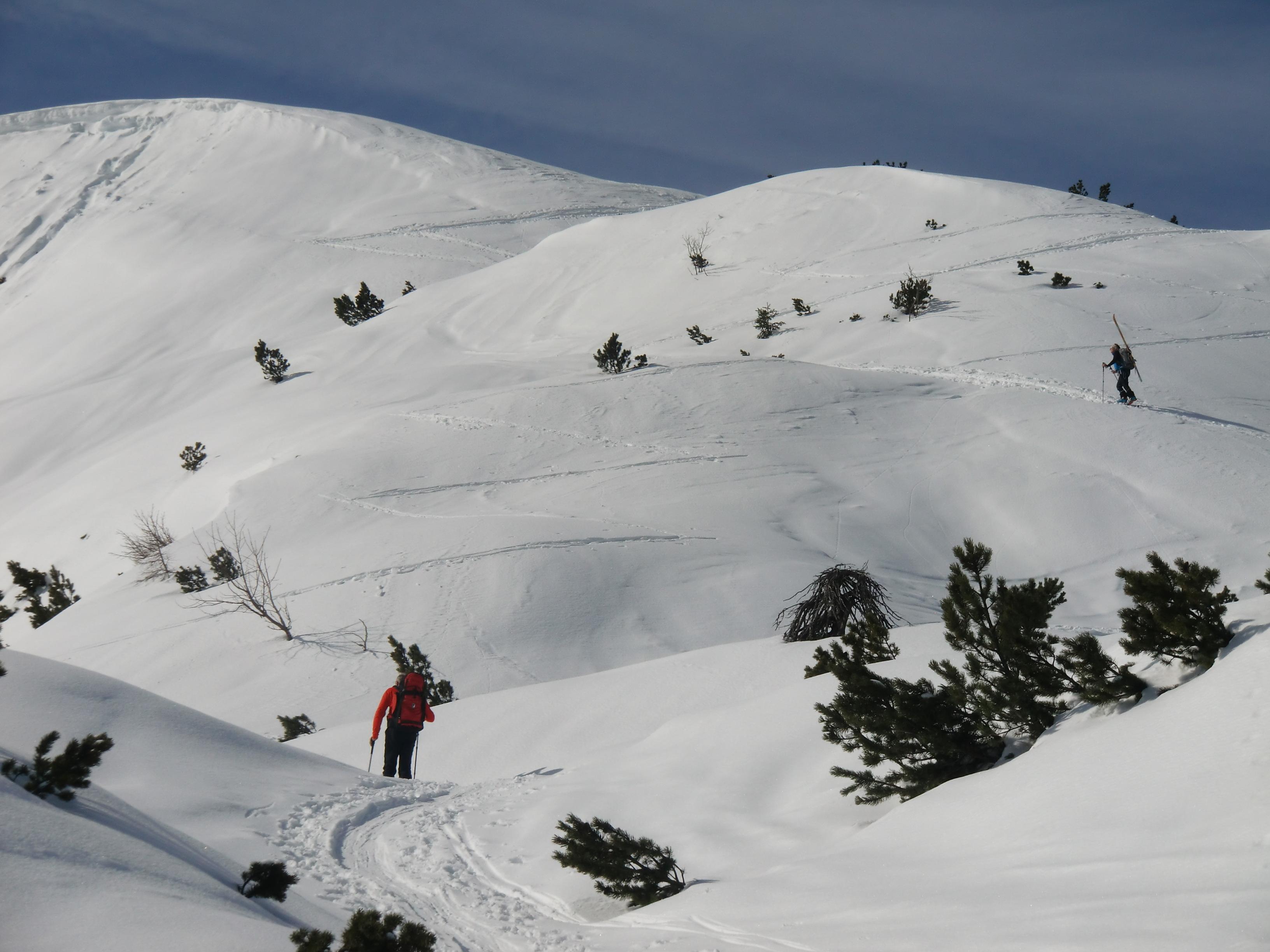 Tour: Start Gh. Winkelmoos (offen) am Ende der Straße in den Pletzergraben. Aufstieg NO-Kamm, Abfahrt N-Flanke. Im unteren Waldstück muss getragen werden (knapp 10').