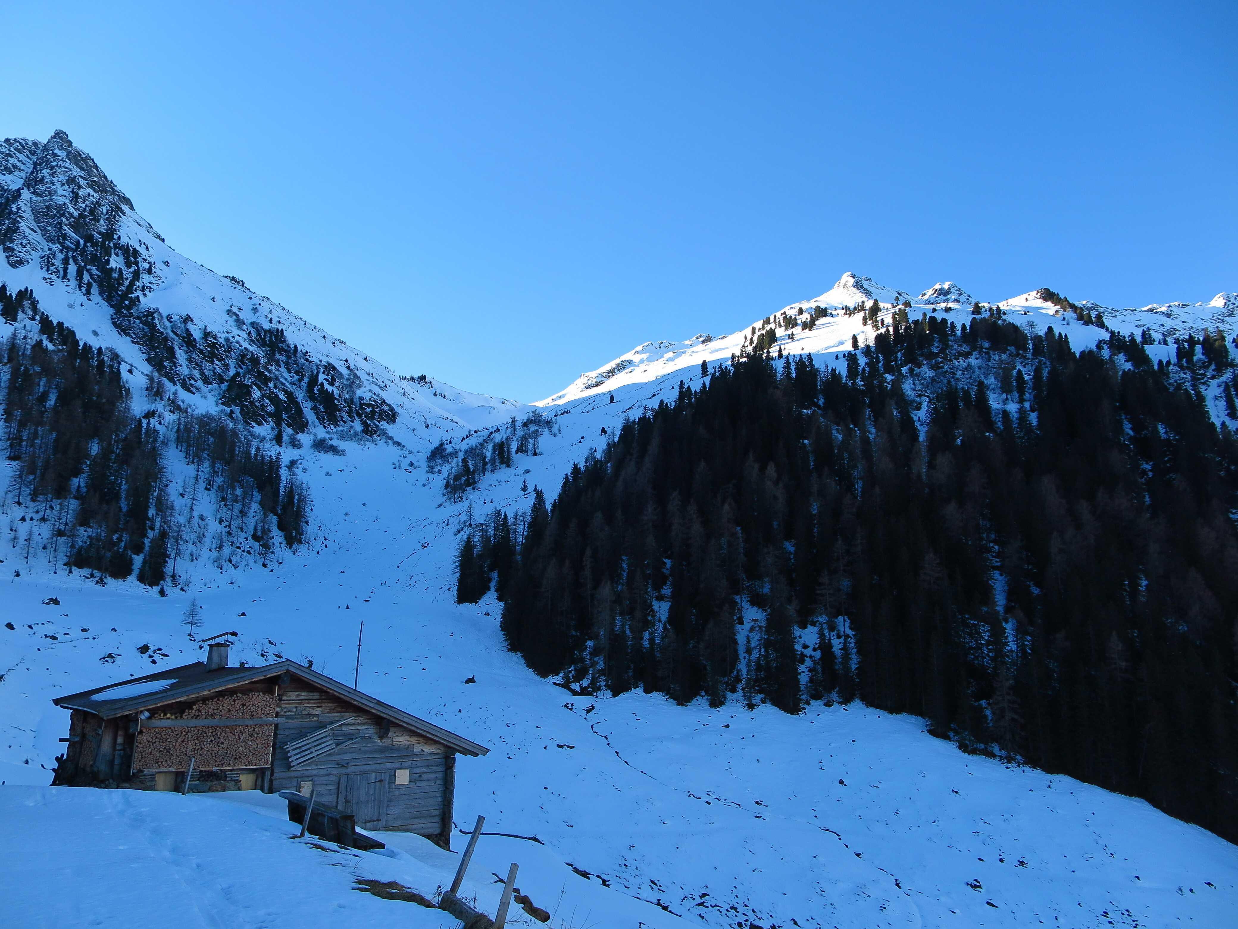 Von Inneralpbach, PP Greiter Graben (1100, 2,50 € Gebühr) über die Greitalm (1320) und Farmkehrniederalm (1521) zum Skidepot (ca. 2150). Zu Fuß weiter über den N-Rücken zum Gipfel (2424).