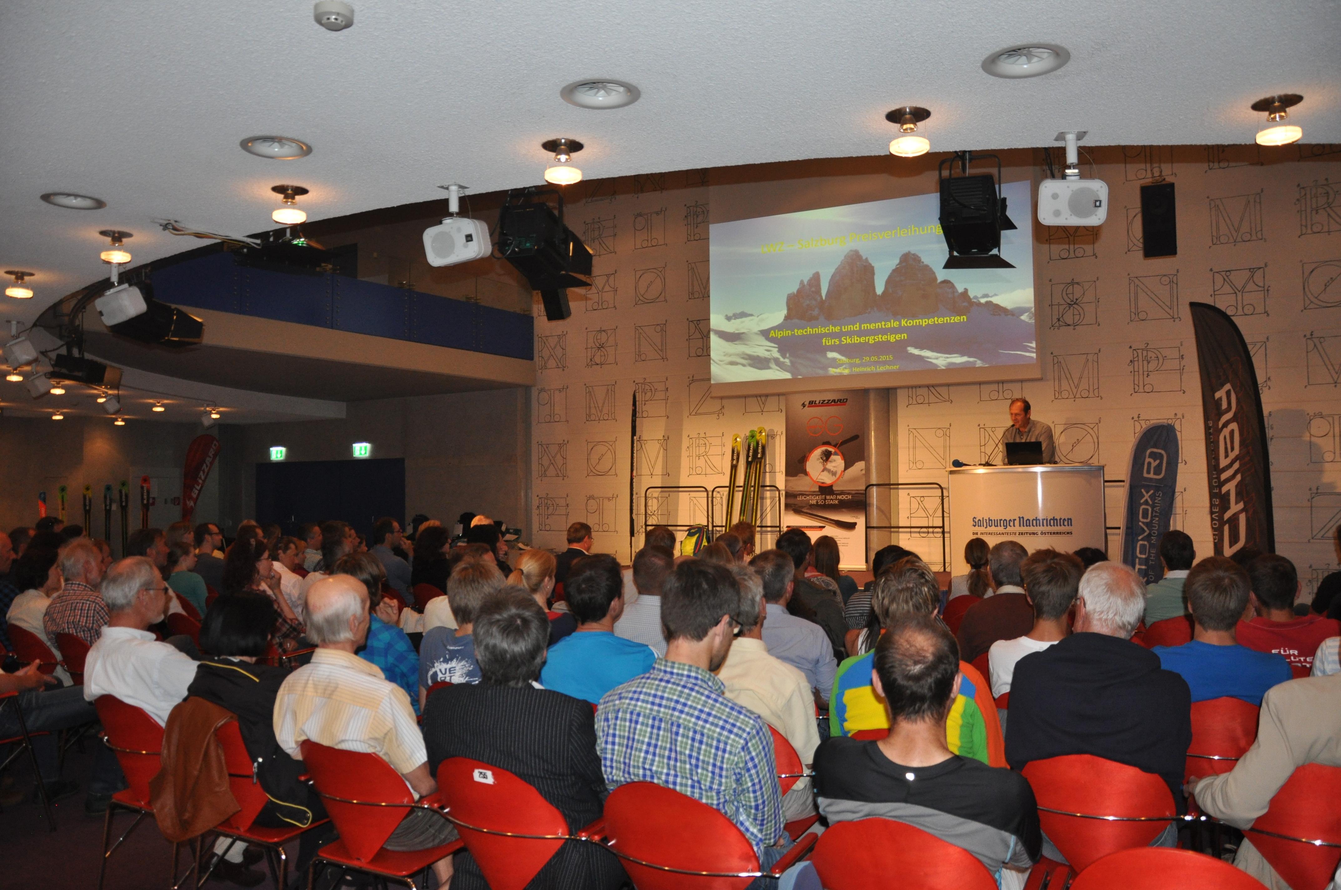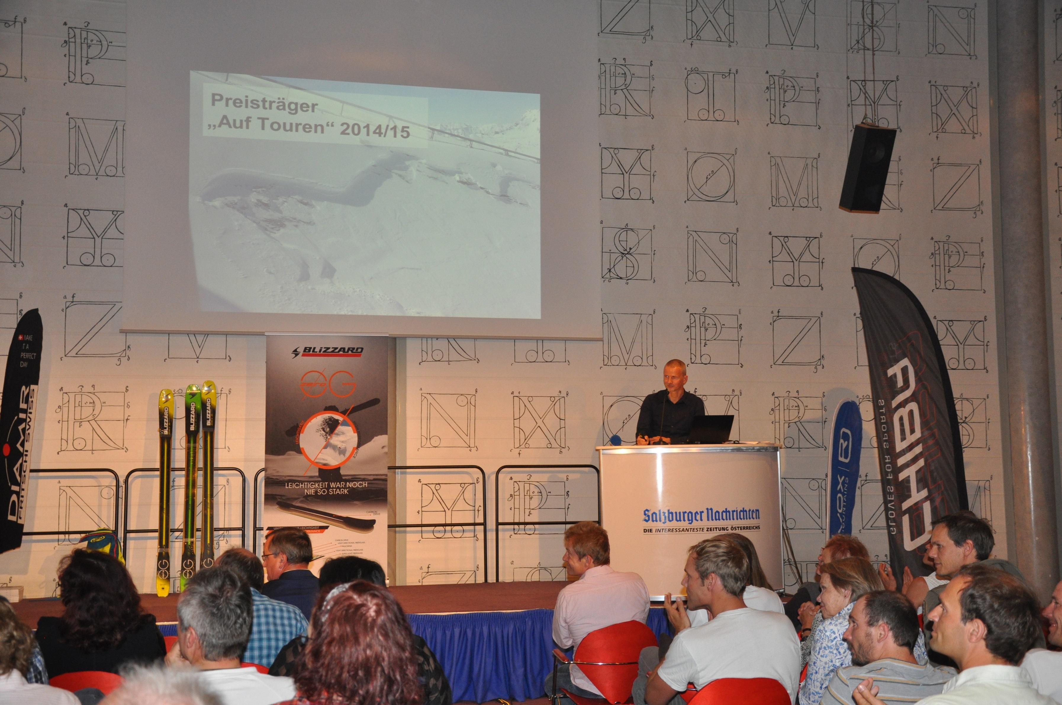 Im Rahmen eines unterhaltsamen Abends wurden am Freitag, den 29. Mai 2015 im SN-Saal der Saisonabschluss gefeiert und die diesjährigen Preisträger von "Auf Touren" prämiert. Tourengeher und Freerider, aber auch die Mitarbeiter und Kooperationspartner des Salzburger Lawinenwarndienstes trafen sich, um die Siegerbeiträge zu bestaunen - aber auch, um zu plaudern, Kontakte zu knüpfen und den letzten Winter noch einmal Revue passieren zu lassen.