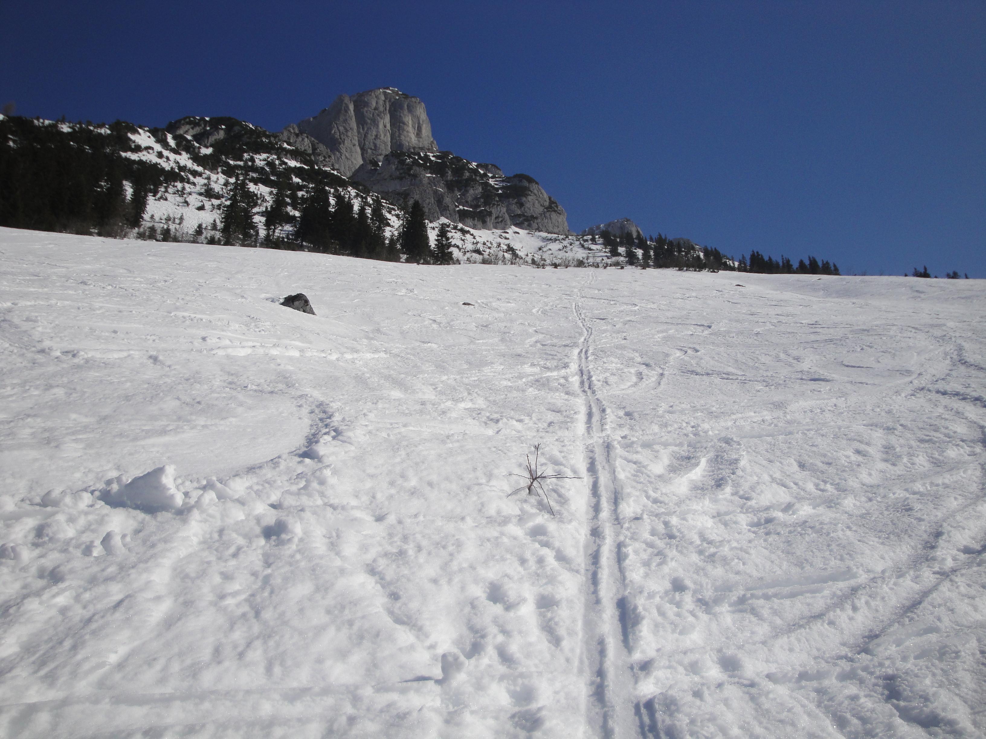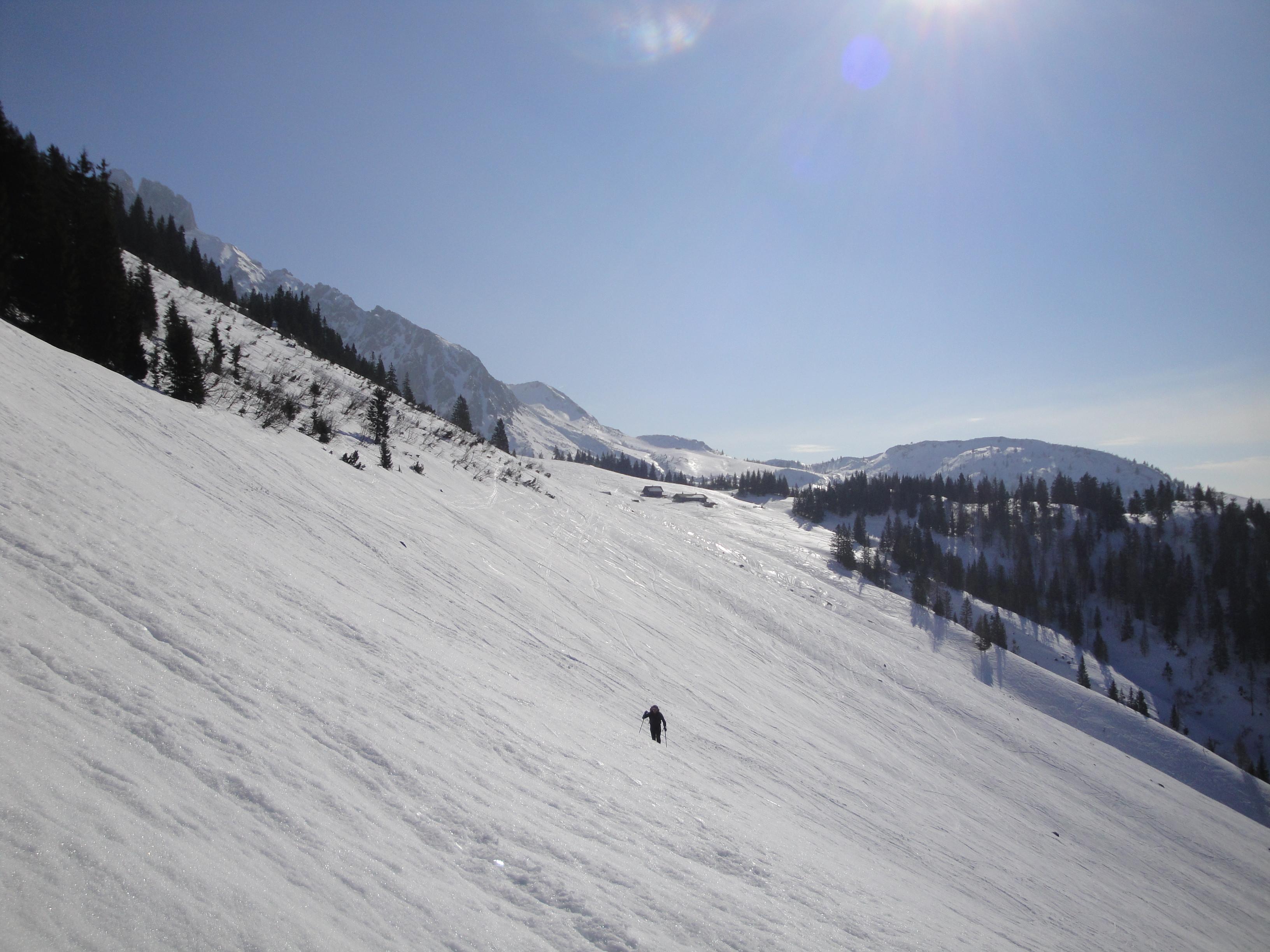 Eigentlich sollte es eine Frühjahrstour werden. Am frühen Nachmittag sollten die breiten Hänge bei der Stuhlam richtig auffirnen. Es wurde allerdings nichts daraus. Nur an vereinzelten Stellen weichten die vielen gefrorenen Spuren auf - leider.