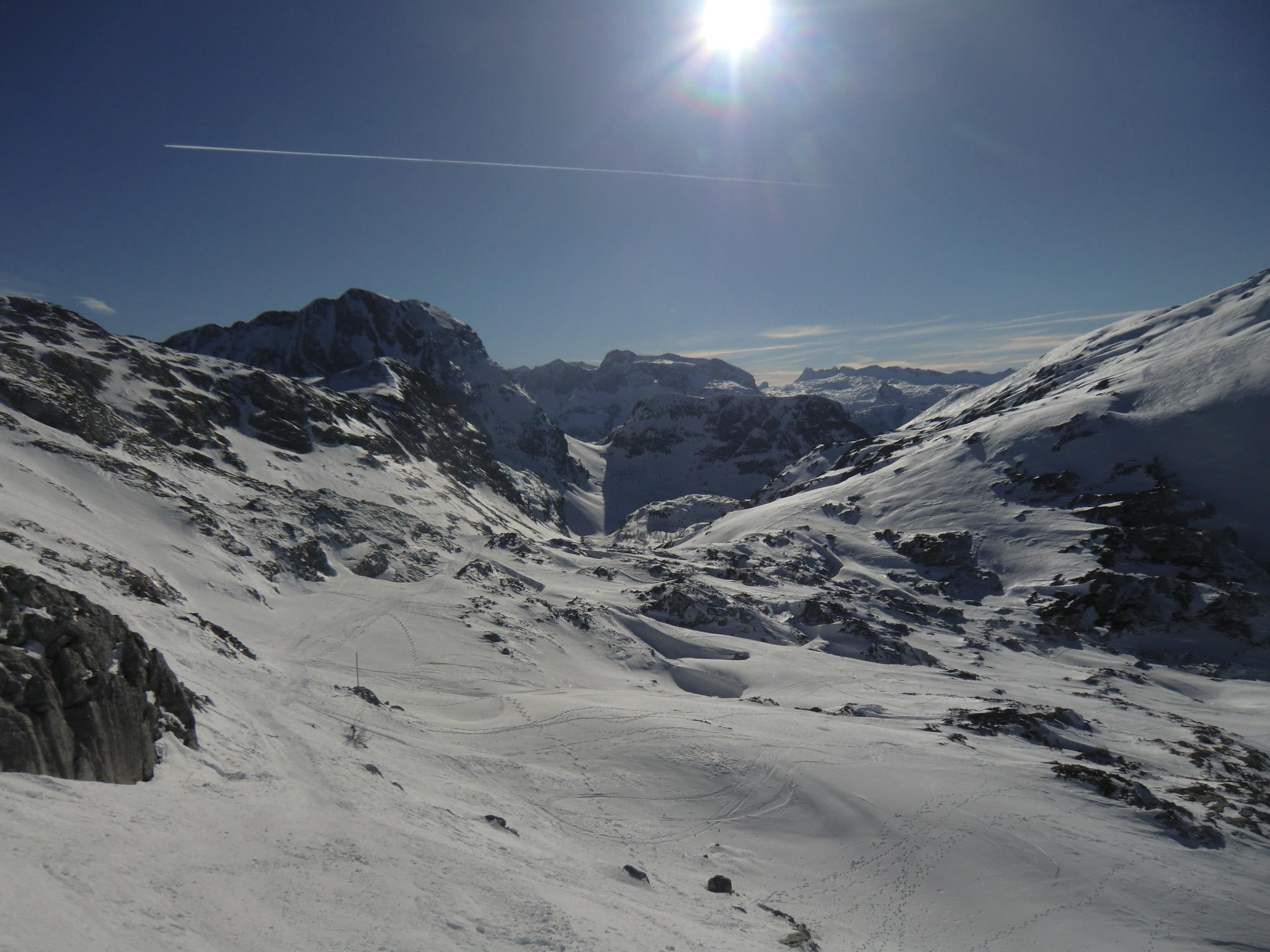 PP Hinterbrand -->Schneibsteinhaus --> Schneibstein. Das Wand´l war mühsam mit dem Latschendschungel und wenn man die Ideallinie verpasst muß man schon mal abschnallen und über´s Grünzeug grein. Am Gipfel windstill wie selten. Hochfläche mit vielen aperen Stellen ein Steinchenslalom bis zur Querung unter dem Windschartenkopf. Danach wurde es sehr viel besser und die Rossfelder waren überhaupt das Beste - pistenartig eingefahren und ganz leicht aufgefirnt. Insgesamt ganz passabel, grandios wie immer die Landschaft.