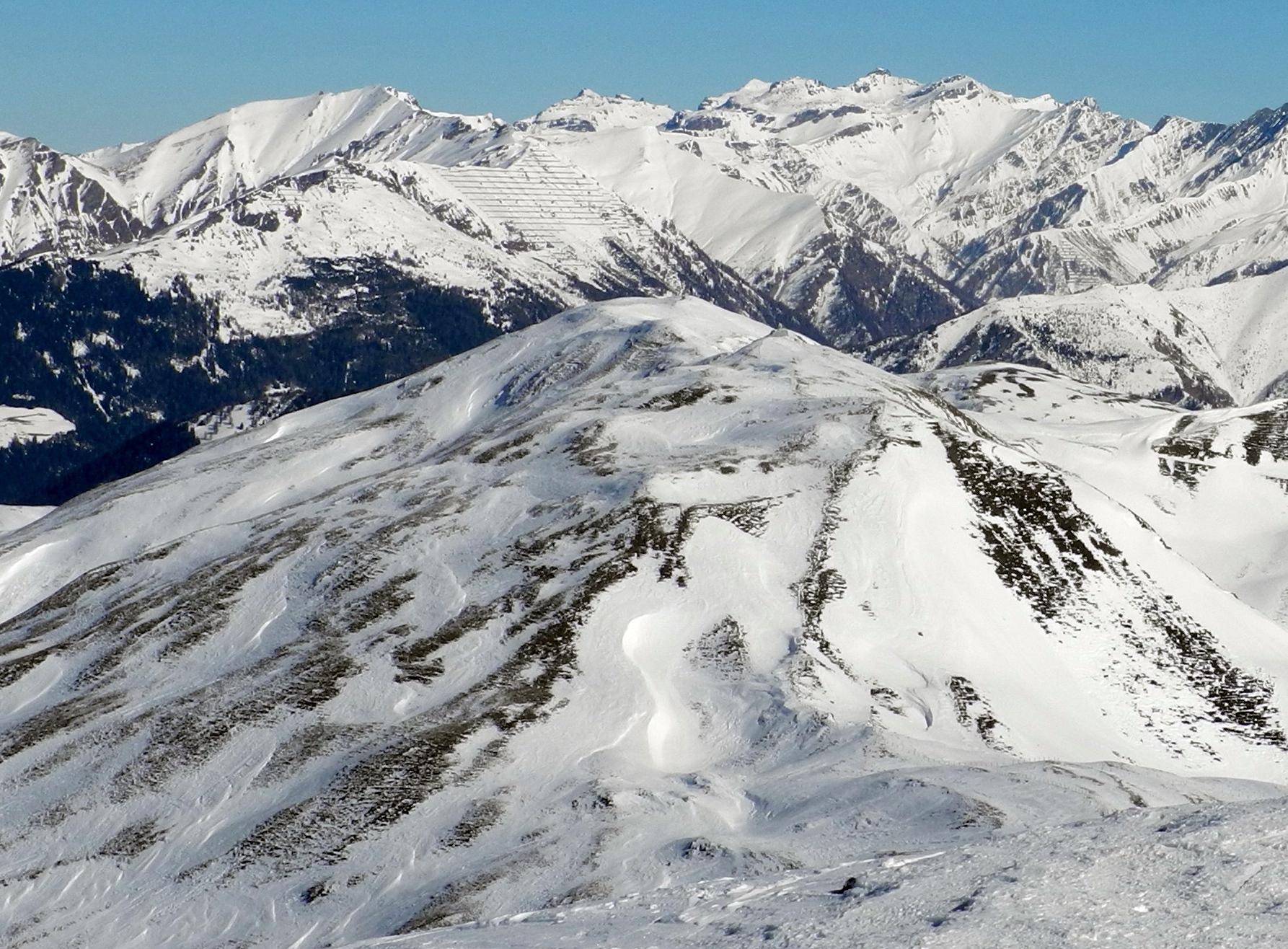 Situationsbericht: Die Schneedecke der Brennerberge stand und steht immer noch unter starkem Windeinfluss. Über der Baumgrenze gibt es zahlreiche apere Stellen. Der Schnee in den Mulden (Windharsch oder auch Eis!) macht das Höhersteigen ohne Harscheisen zu einer Qual. In windgeschützten Lagen (Nordhänge) findet man auch noch etwas Pulverschnee vor - bei nur leichter Richtungsänderung wandelt sich dieser sofort zu Bruchharsch! Auf südseitigen Hängen reicht die Schneedecke oft nicht bis ins Tal hinab. Trotz dieser Hindernisse findet man doch viele lohnenswerte Touren vor.