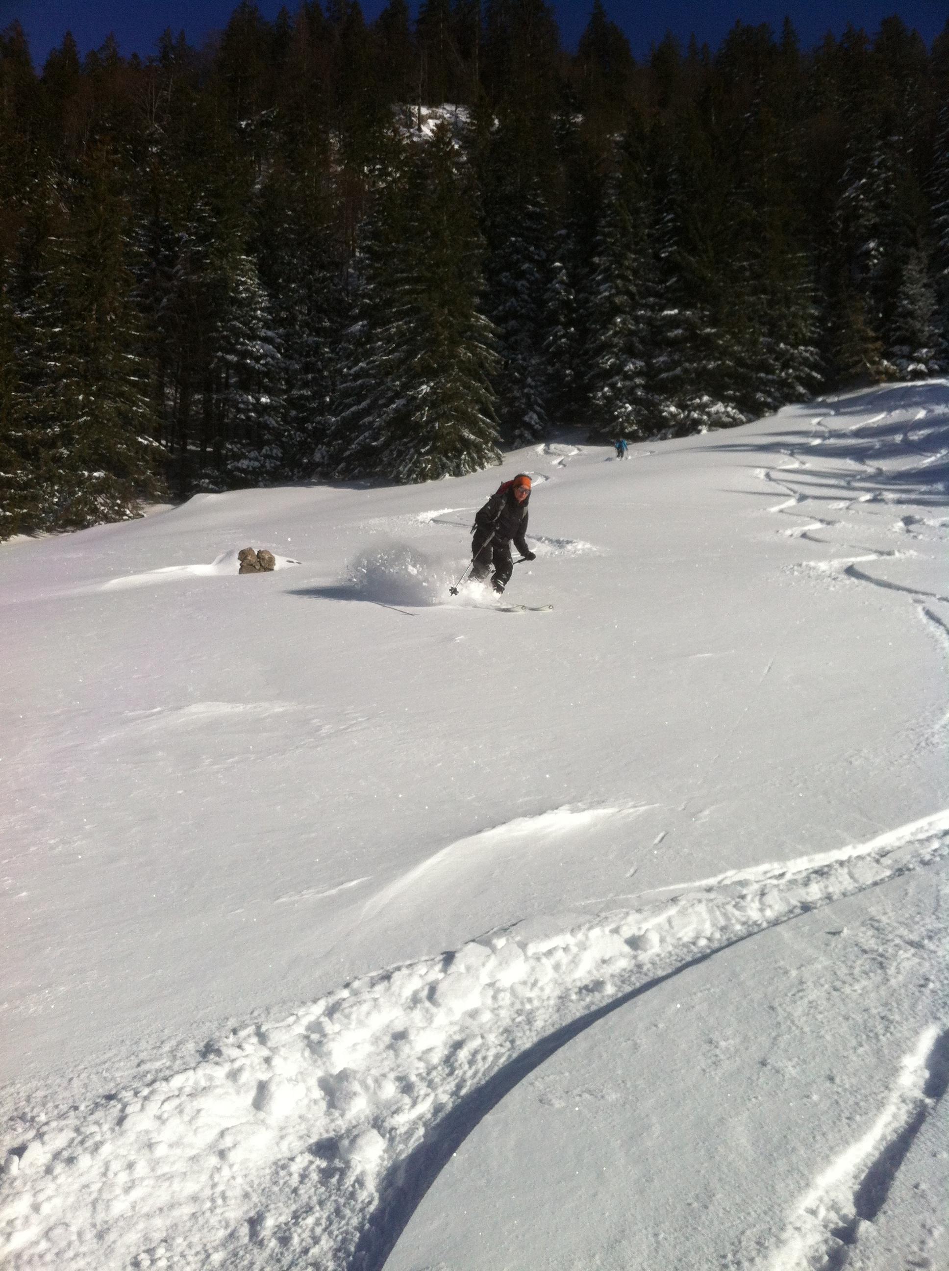 Heute bei allerbesten Verhältnissen unterwegs im Hochries-Spitzstein Gebiet. Bei sehr gut gesetzter Pulverschneeauflage ein Traumtag. In Kammlage zum Teil leicht abgeblasen.