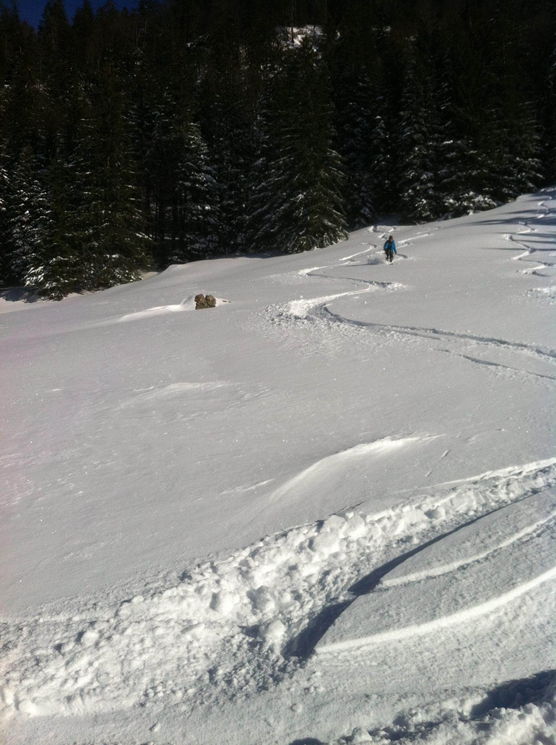 Lawinenbeobachtungen: Keine, ausser eine kleine Schneerutsche am Kranzhorn ganz unten im Klausengraben, südostseitig am Nachmittag