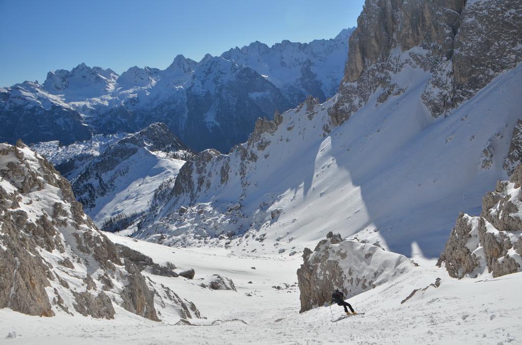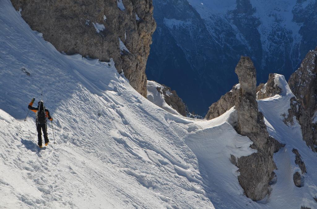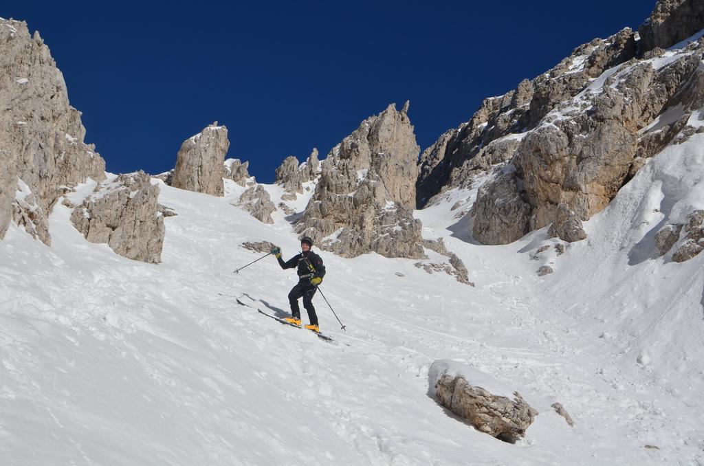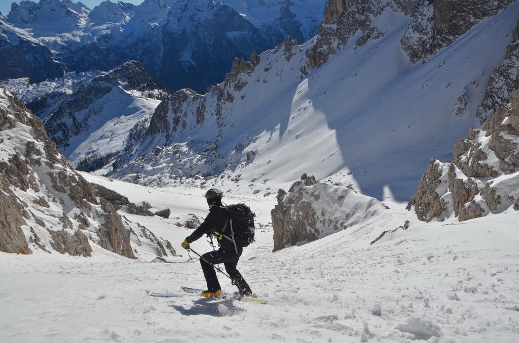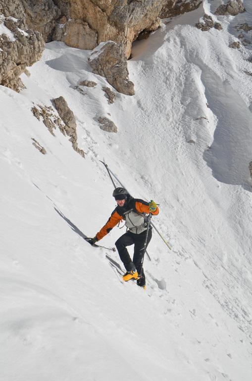 Von Missurina weg auch bei relativ geringer Schneelage zur Zeit gut machbar. Allerdings würde ich die Runde mit dem Aufstieg übers Refugio Fonda Savio und Abfahrt über die Nevesscharte empfehlen. WIndgepresste und harte Schneedecke beim Aufstieg und Firn.- bzw. Sulzbedingungen dann bei der Abfahrt, welche wir gleich nach der Querung von der Forcella Nevaio in Angriff nehmen konnten.