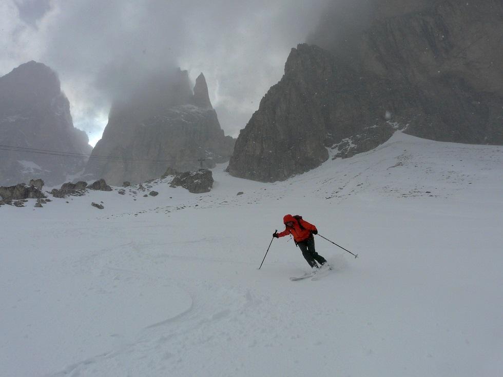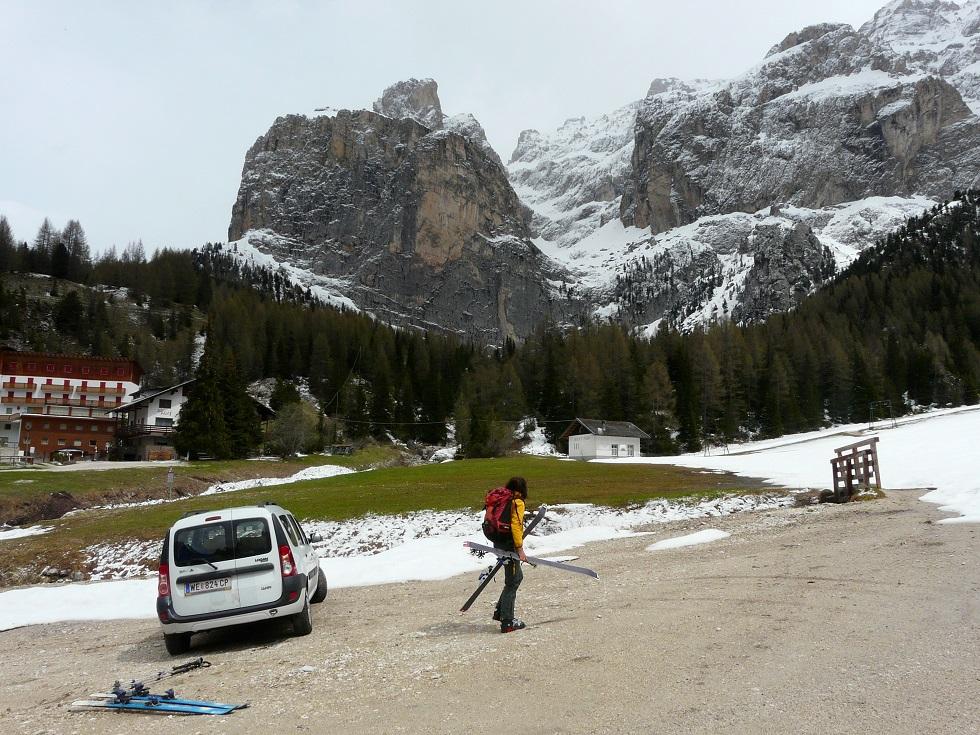 Zu Beginn Fahrt ins Pfitschertal, mußten feststellen, daß hier viel weniger Schnee liegt als erwartet, auch war kein Zimmer zu bekommen (für Schrammacher Süd oder Hochfeiler ist bereits mit einer längeren Tragestrecke zu rechnen). Aufgrund der aktuellen Wetterprognosen haben wir am Hauptkamm ohnehin keine guten Karten, wir entscheiden uns für einen Wechsel in die Dolomiten.