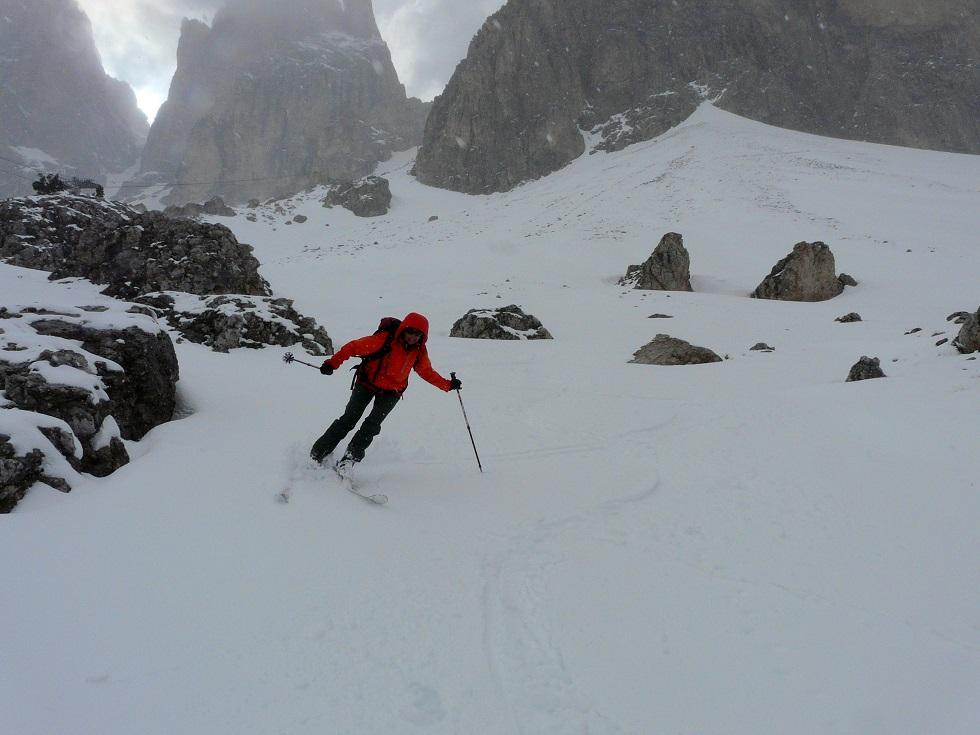 lässige Skiroute zwischen Felsen