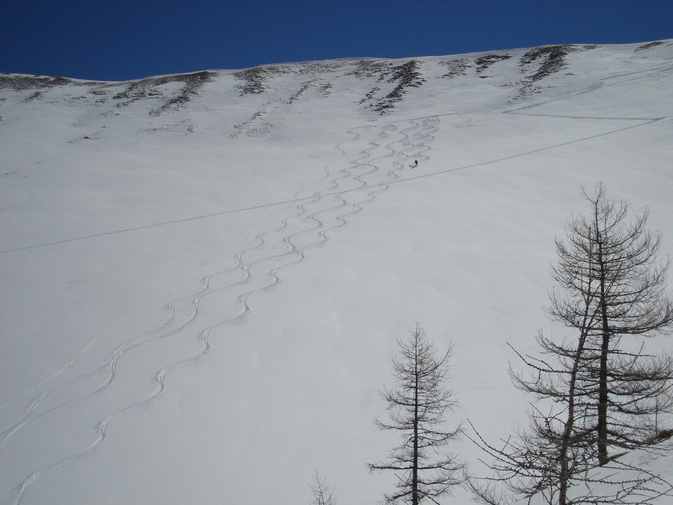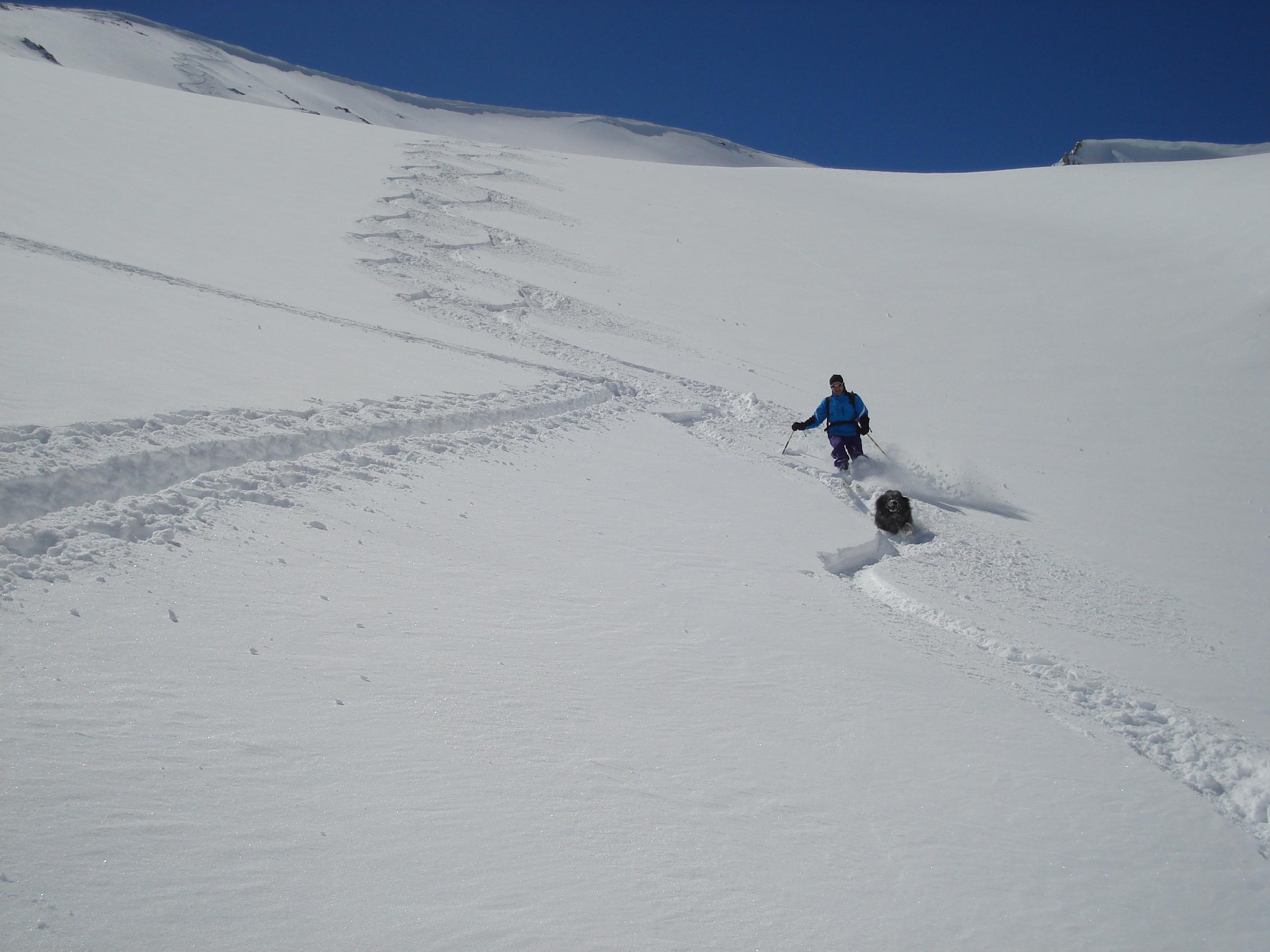 Die Abfahrt war dann reinster Hochgenuss, Schweben wie auf Wolken, 50cm Pulver.
