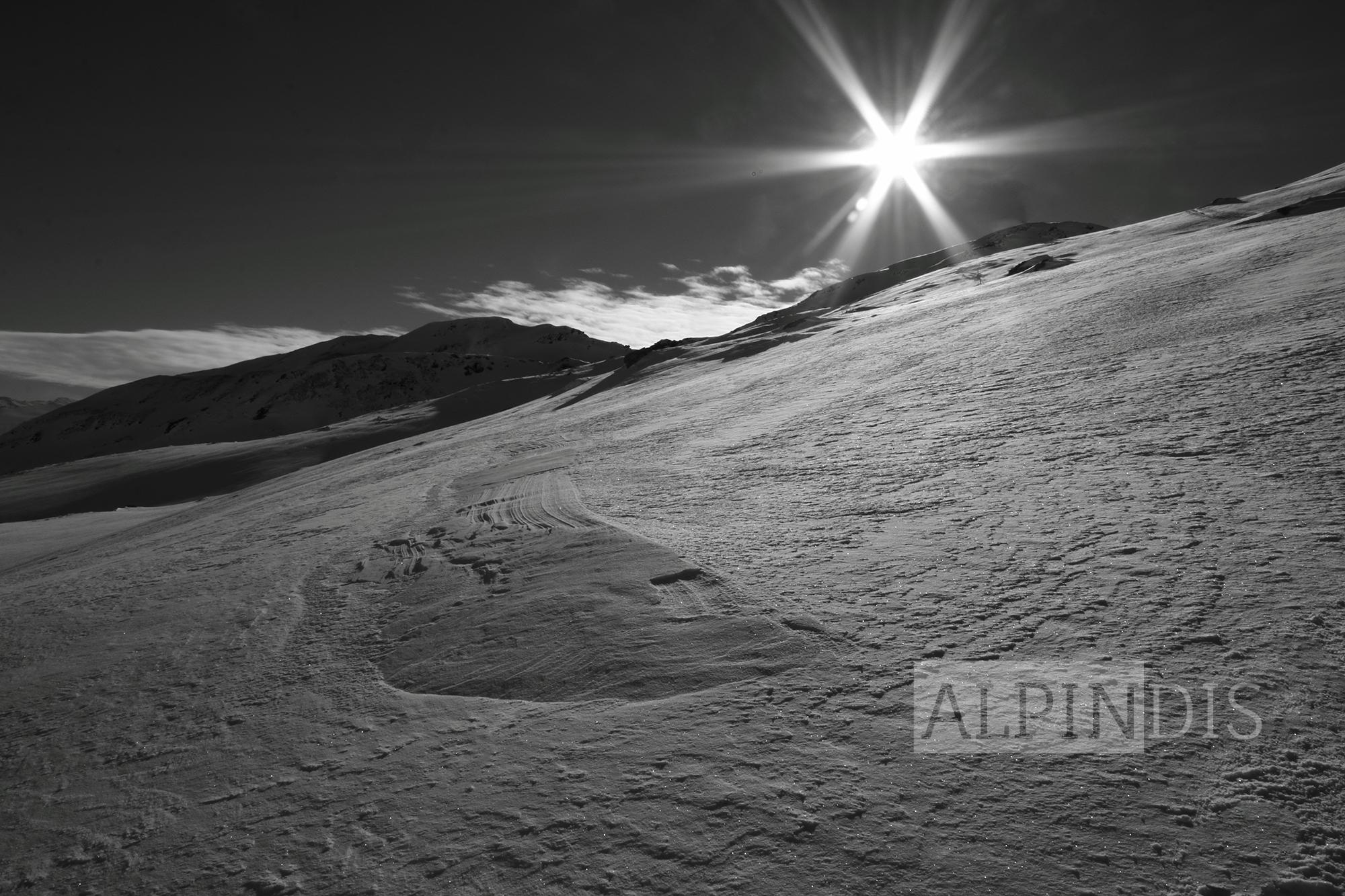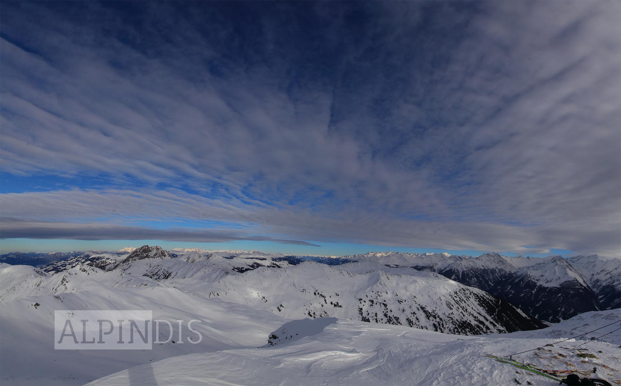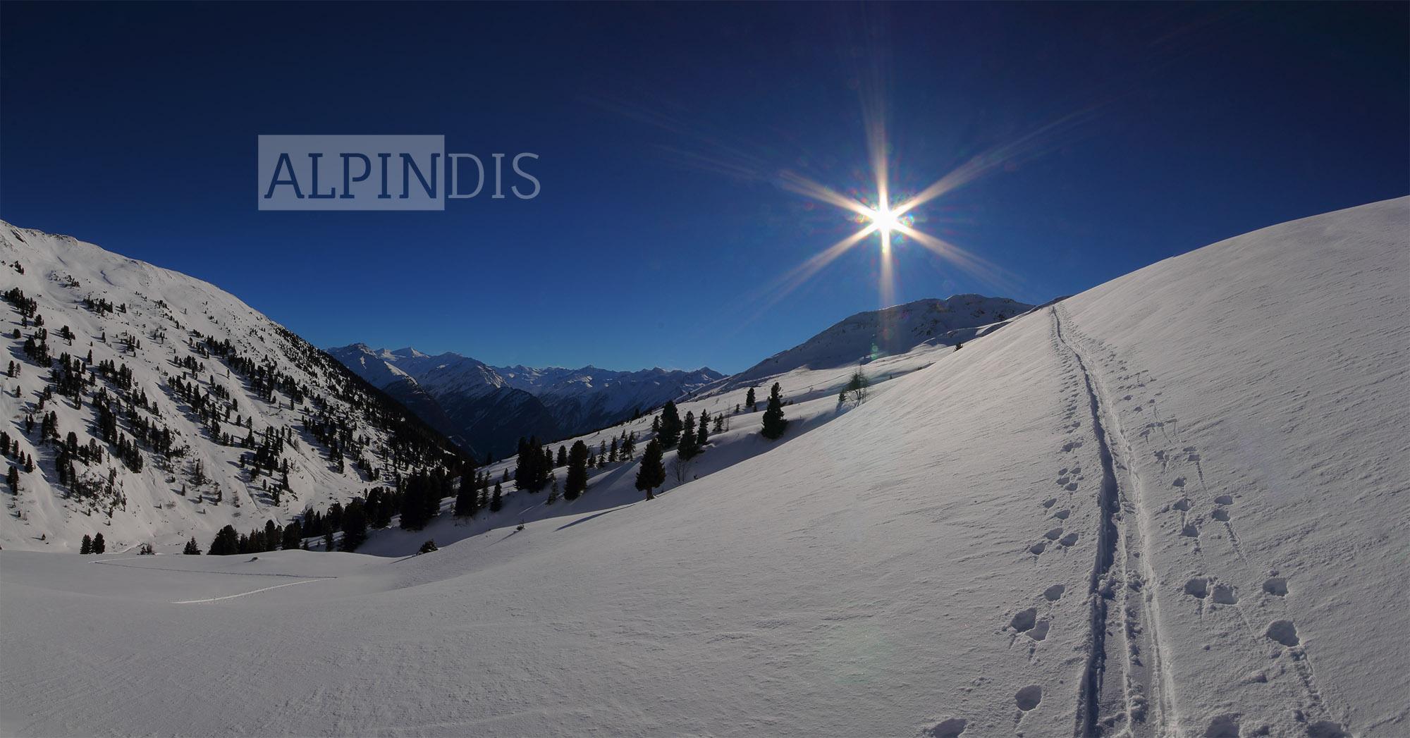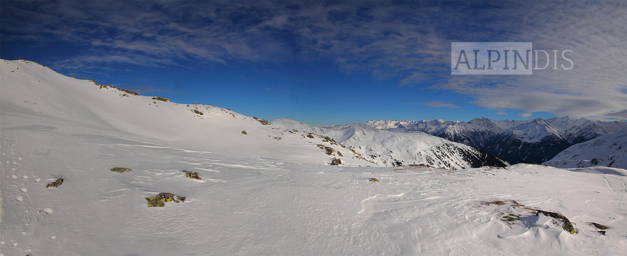 Schnee: Oberflächlich 10cm lockerer Pulverschnee, darunter in windgeschützten Bereichen noch lockerer Schnee, windexponiert Triebschnee. Unterhalb 1800m war unterm Pulver ein dünner Schmelzharschdeckel spürbar. An Südhängen wurde der Schnee schon etwas angefeuchtet, wird wahrscheinlich morgen in der Früh Bruchharsch werden (wenn es abkühlt). Der Pulverschnee von gestern auf heute wurde im Kammbereich vom West- bzw. Südwestwind bereits verweht und bildet kleinräumige Triebschneepakete im Nord bis Ostsektor.
