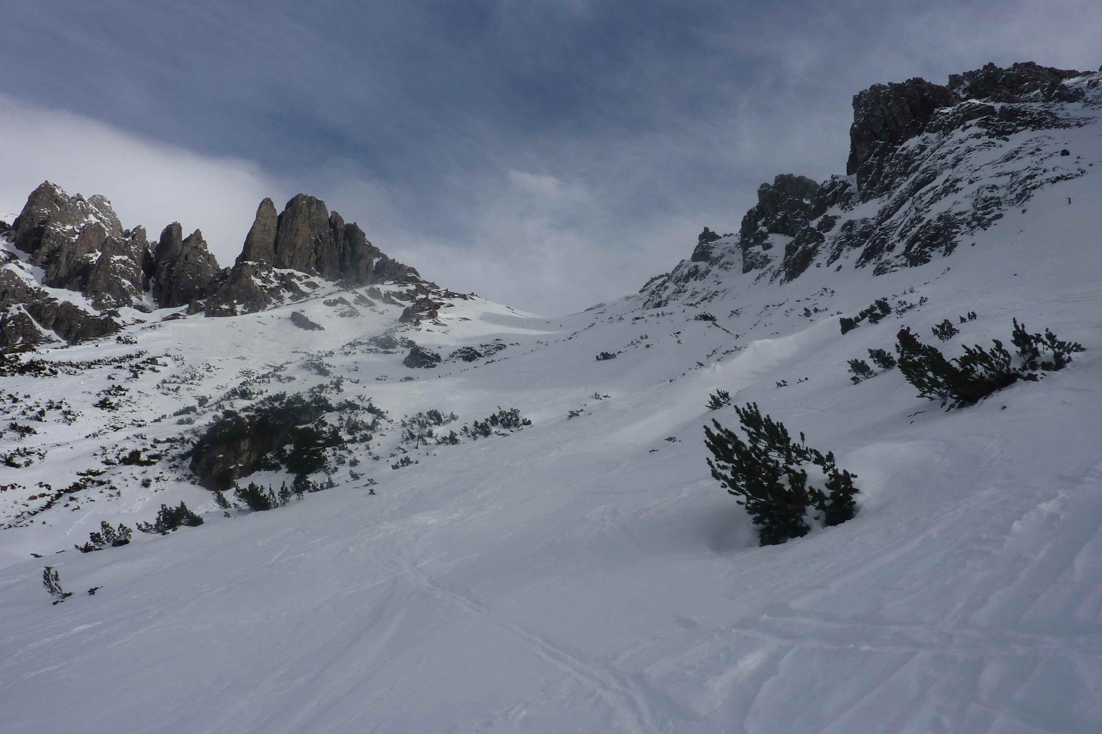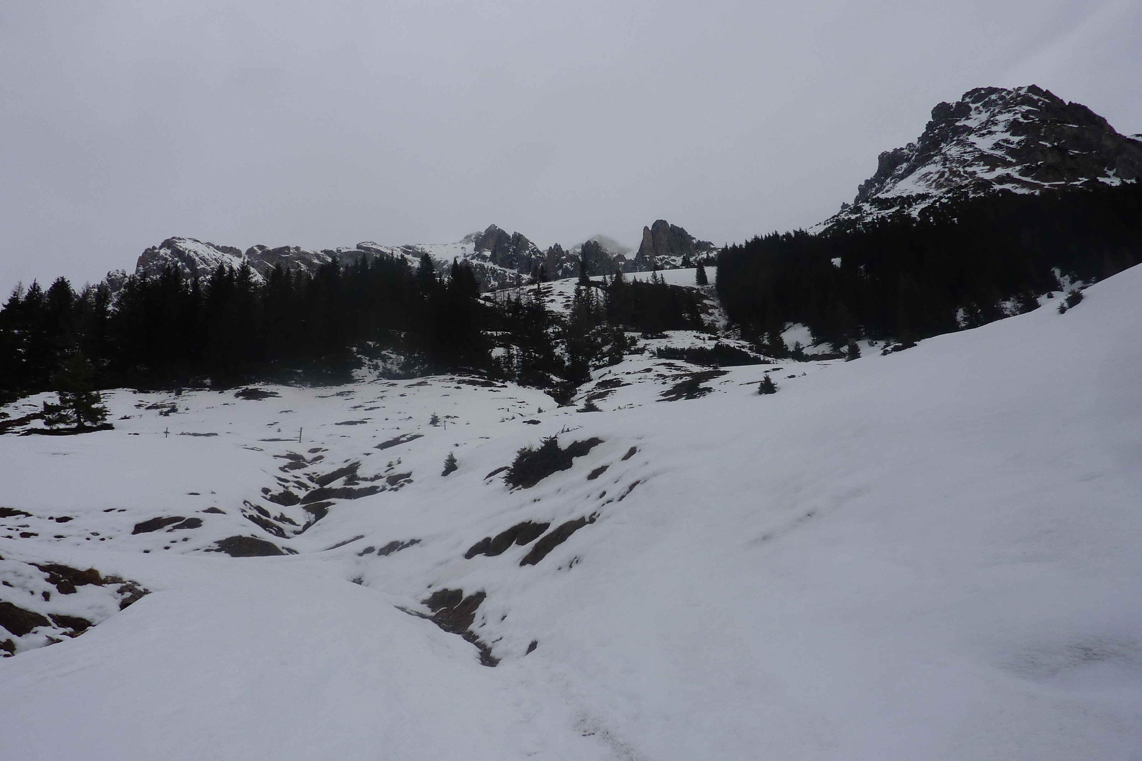 Schneelage: zwischen Parkplatz und Erichhütte ist es eindeutig besser, auf der Straße zu bleiben. Dann ausreichend Schnee, Dünne Harschkruste am Vormittag- zu dünn, als dass Firn daraus werden könnte.