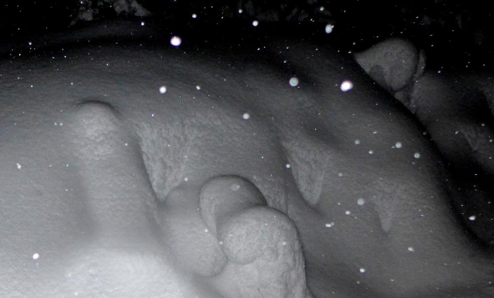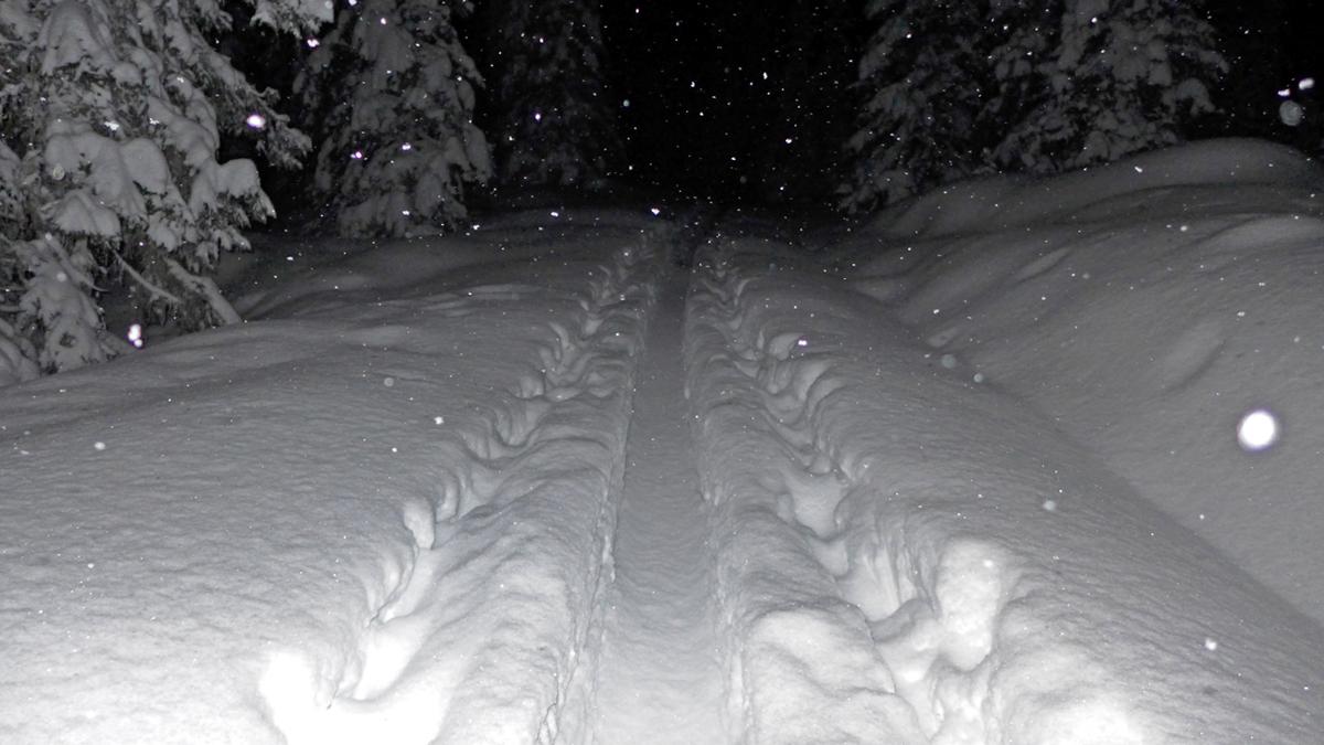 Nachts von Bischofshofen auf den Hochkeil (1782 m) , es geht auf sicheren Wegen durch romantisch, tiefverschneiten Wald, eine Aufstiegsspur vorhanden, leichter Schneefall, im Gipfebereich zunehmende Kälte.