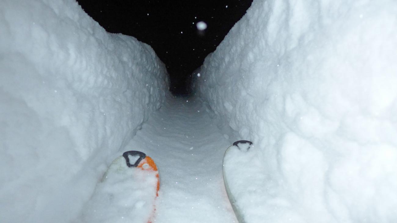 Abfahrt über Knappensteig bei pistenartigen Verhältnissen.