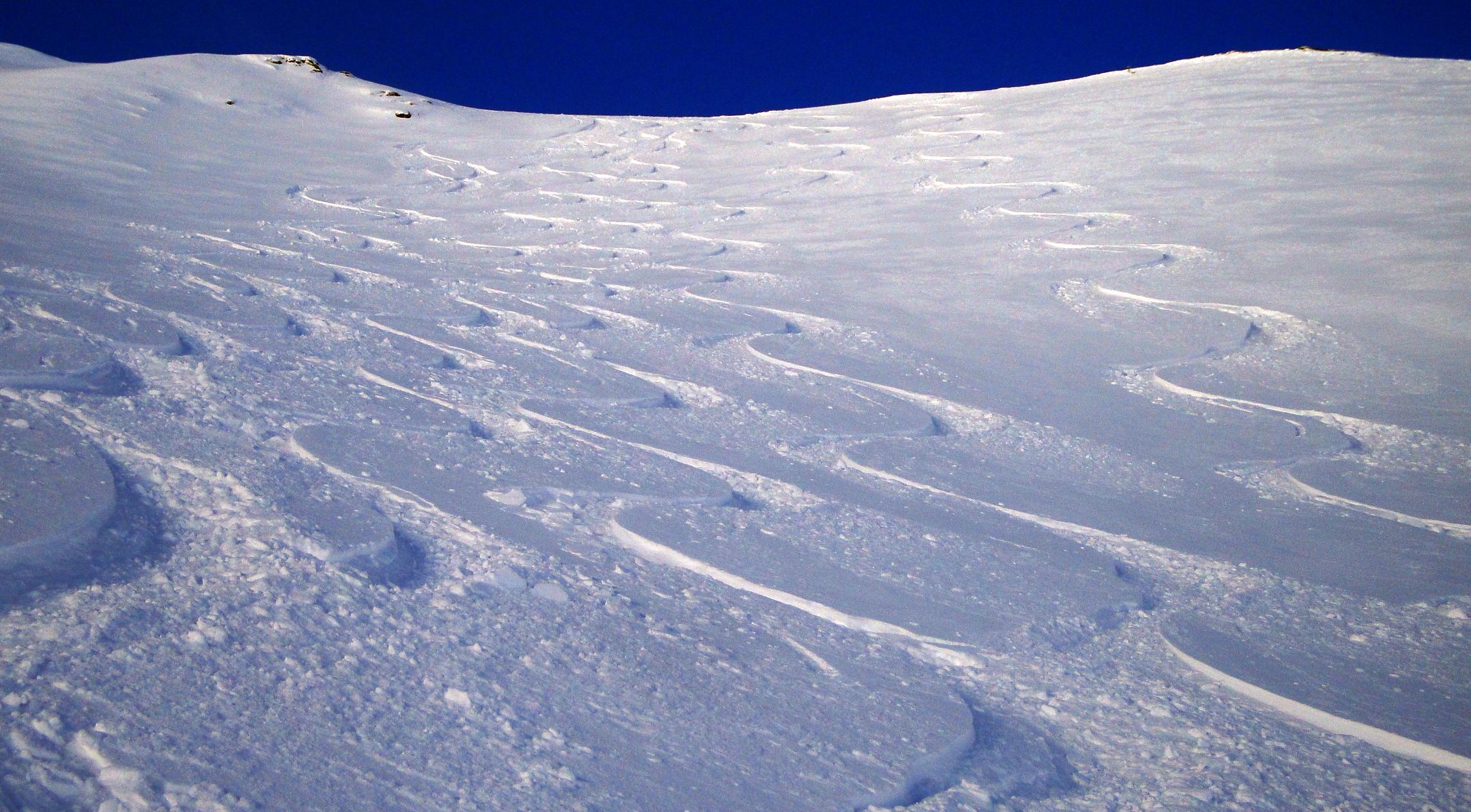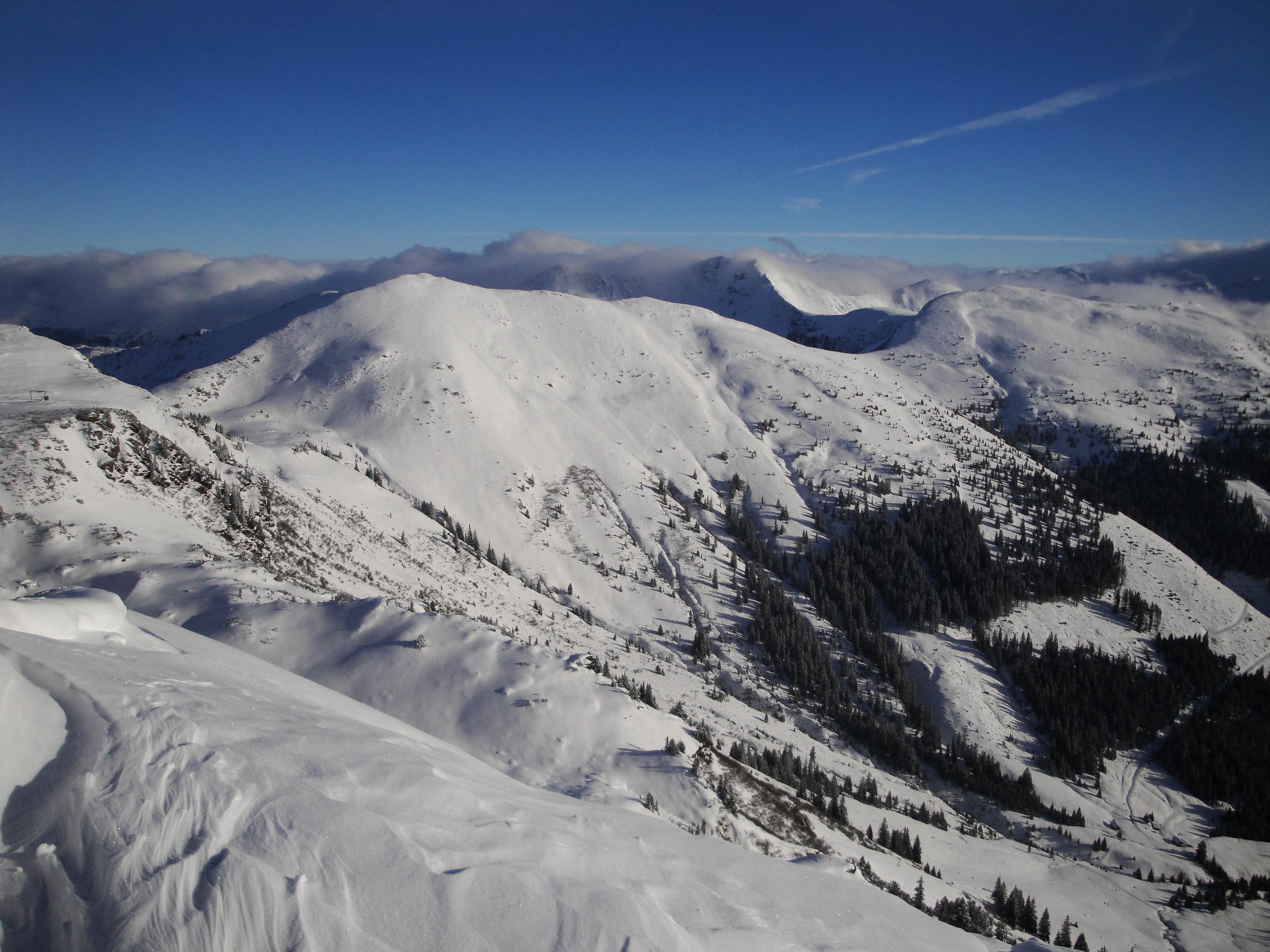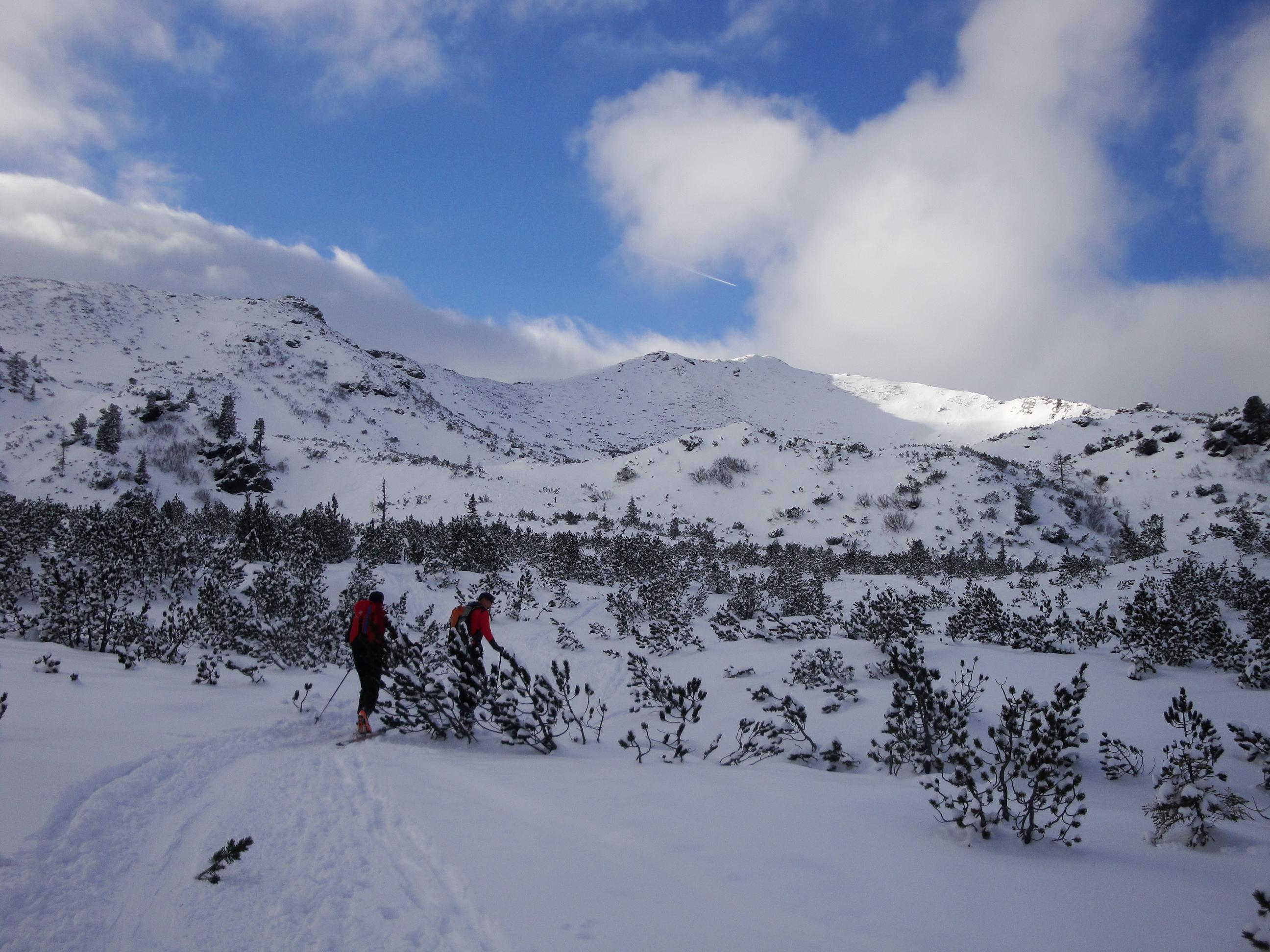Ganz gute Verhältnisse im Bereich der Planneralm. Etwa 20cm Neuschnee. Teilweise etwas unangenehmer kalter Ostwind. Trotzdem ist Steinkontakt nicht immer vermeidbar.