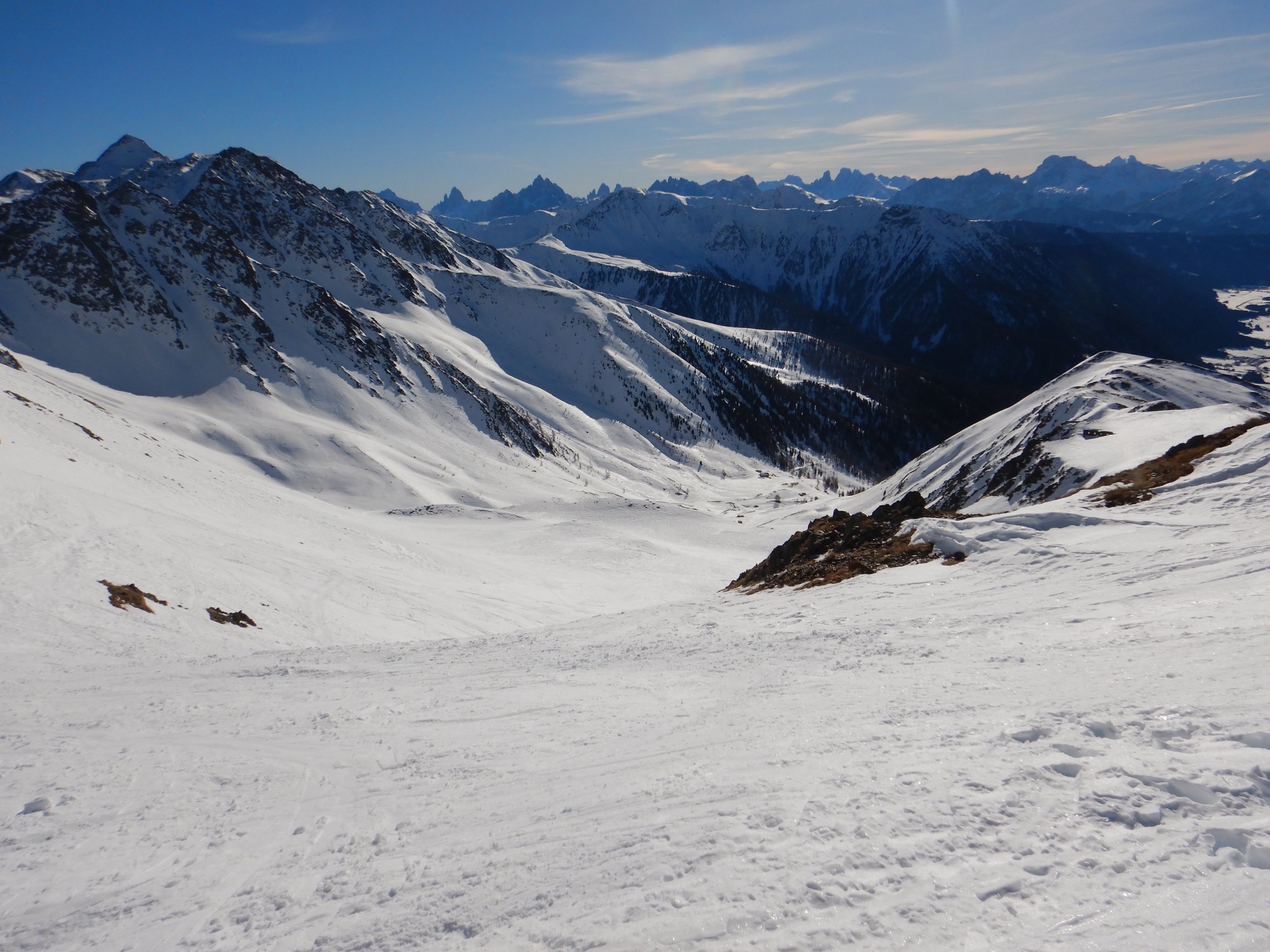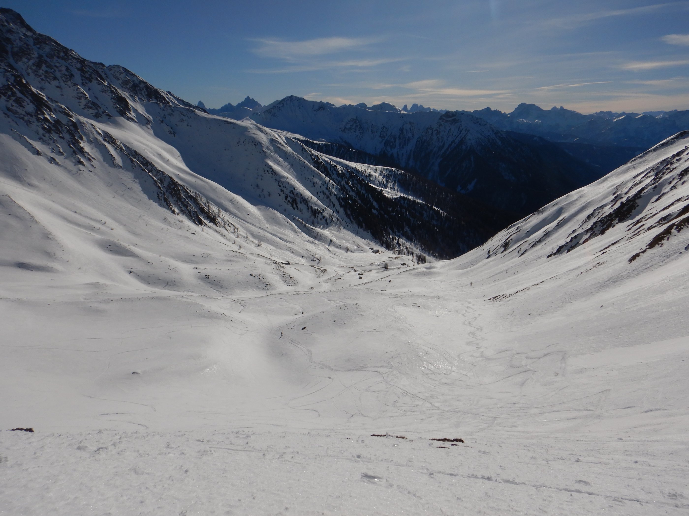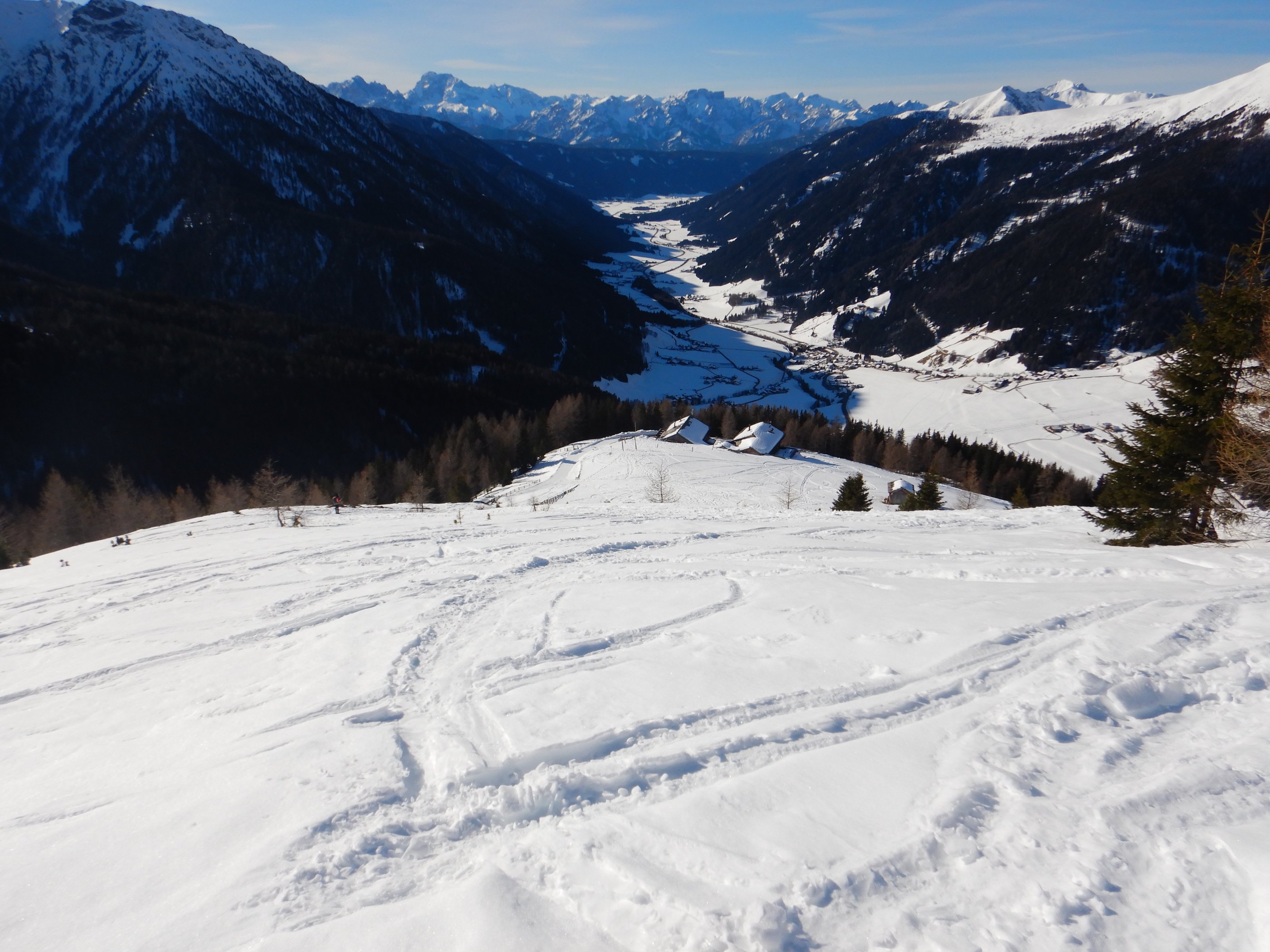 Ausreichend Schnee ab Ausgangspunkt Talschluss Gsiesertal. Rodelpiste bestens gepflegt, direkt durch den Graben wenig empfehlenswert. Aufstieg ohne Harscheisen gut machbar. Abfahrt durch Sonneneinstrahlung firnig oder weich, großteils gut zu fahren.