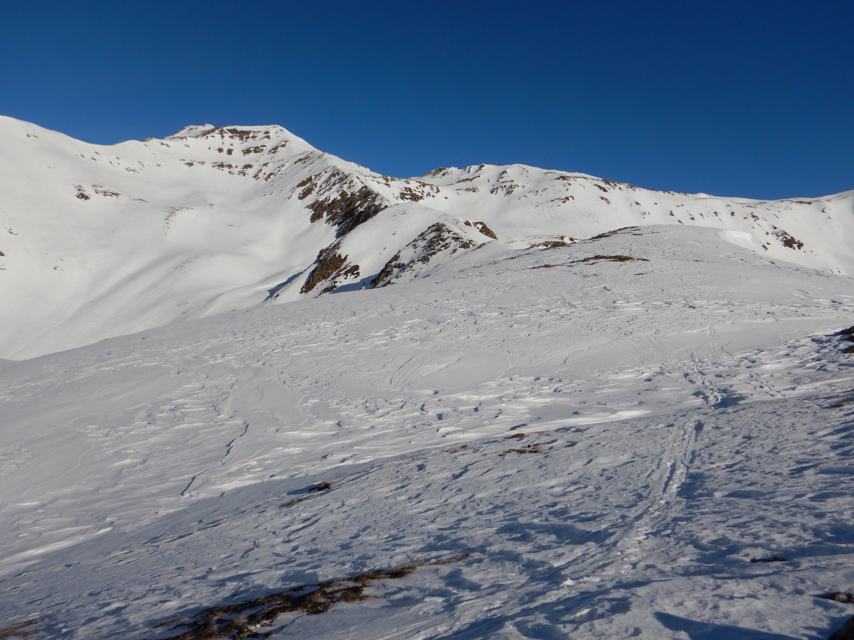500 Höhenmeter Waldgürtel auf angenehmer Rodelpiste (Forststraße) bis zur Uwaldalm. Ab da großartiger, leichter Kammanstieg Richtung Hochkreuz mit tollen Ausblicken und Tiefblick auf den Normalanstieg durch das Pfoital. Kurze, felsige Passage am Kamm mit Skiern begehbar, danach Querung zum Normalanstieg und über diesen zum Gipfel. Diese Variante ist unwesentlich länger als der Direktanstieg durch das Pfoital.