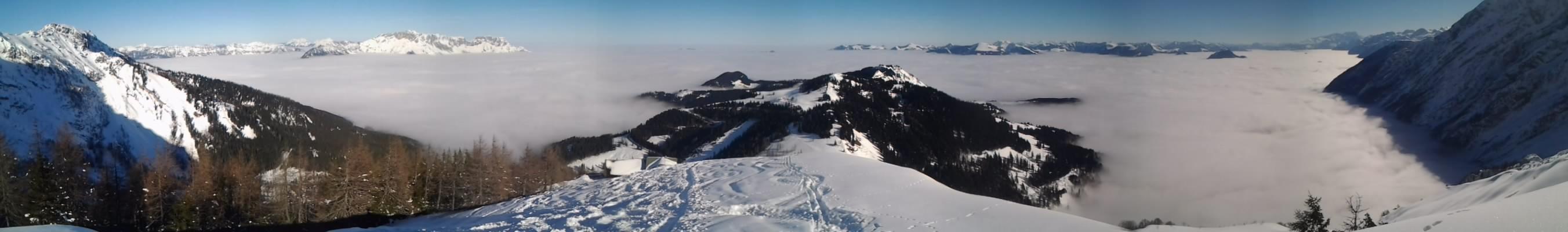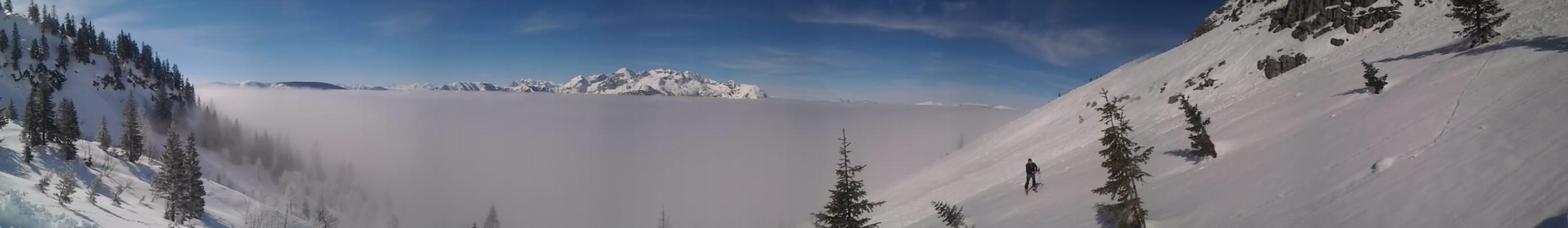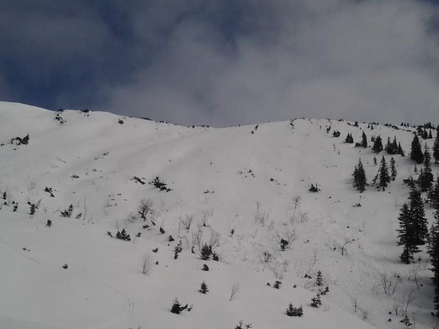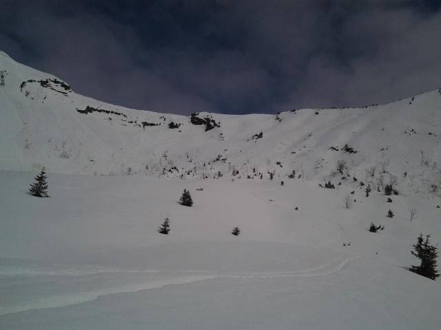 Wetterprognose war ja sehr gut leider im Heutal um 7 Uhr leichter Regen und alles bewölkt.Erster Versuch aufn Reifelberg obn heftiger Wind Abfahrtsversuch über die steile Südseite nur teilweise Bruchharsch entschied mich doch lieber für den vodere Kamm ab Mitte ins Kar hinab perfekt erwischt und hinab bis zur letztn Hütte Wetterumschwung Sonnenstrallen kamen hervor.