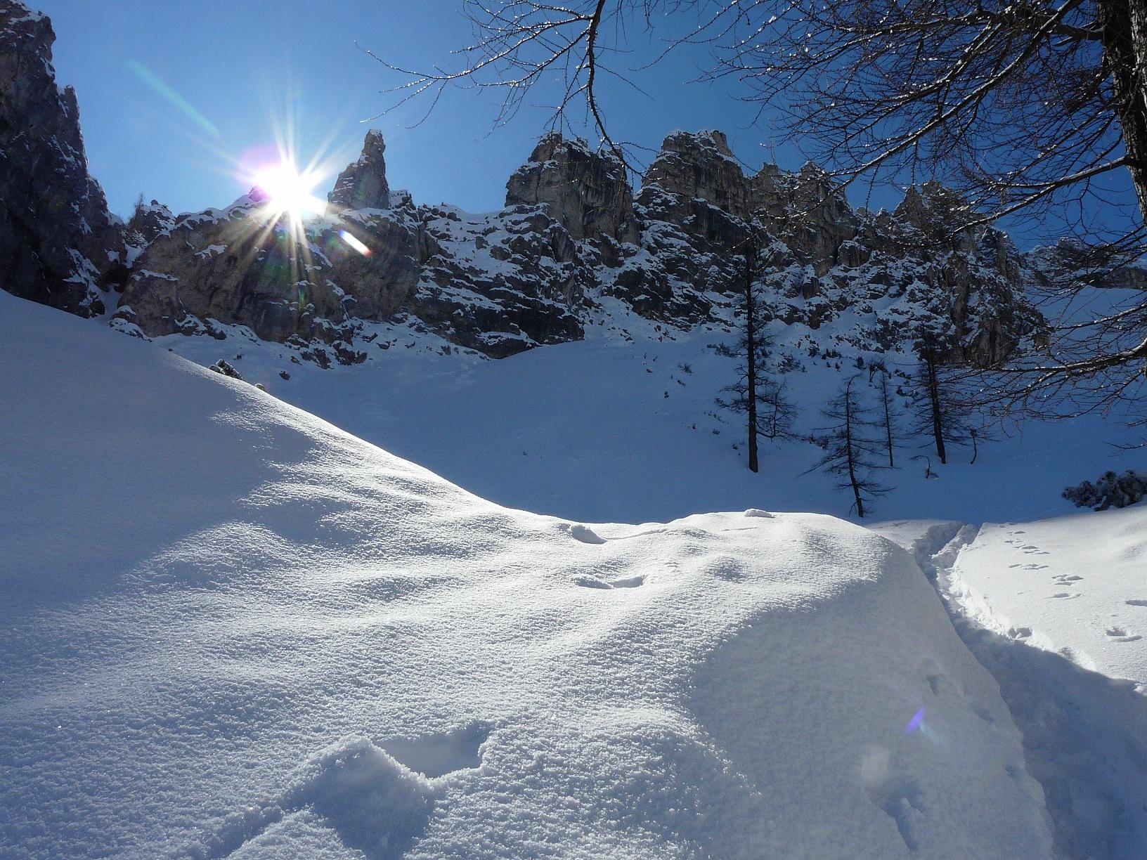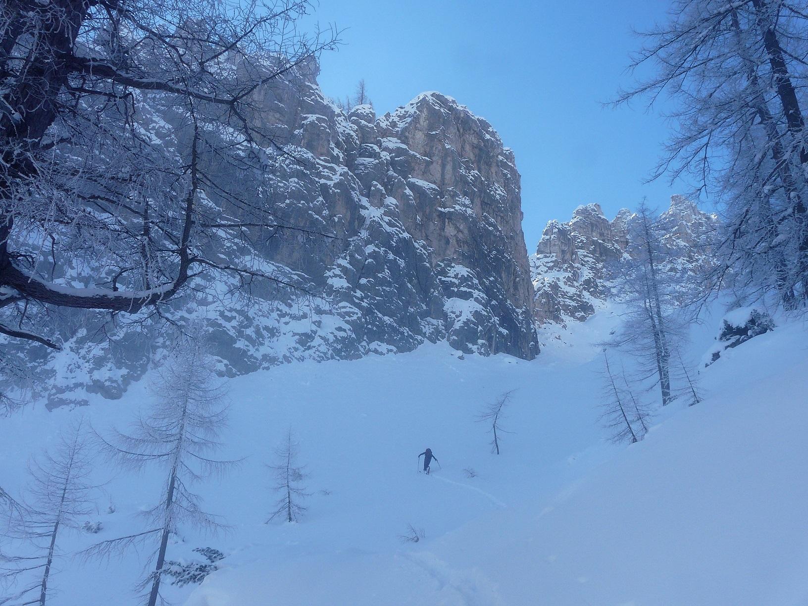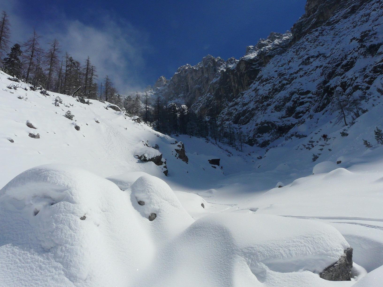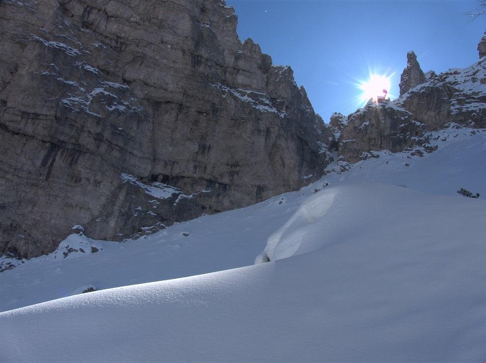 Hervorragende Verhältnisse am Birnhorn. Nur im untersten Viertel der Waldstufe müssen die Ski getragen werden. Darüber dann jede Menge Schnee. Im Lärchenwald sogar gesetzter Pulver, je nach Exposition bei der Abfahrt schon leicht angefeuchtet. Im Ebersbergkar haben Wind und Wärme den Schnee behandelt, zur Mittagszeit aber sehr gut zu fahren. Ich habs auf den Punkt erwischt, nachmittags wirds bei Sonnenschein sicher schwer und nass.