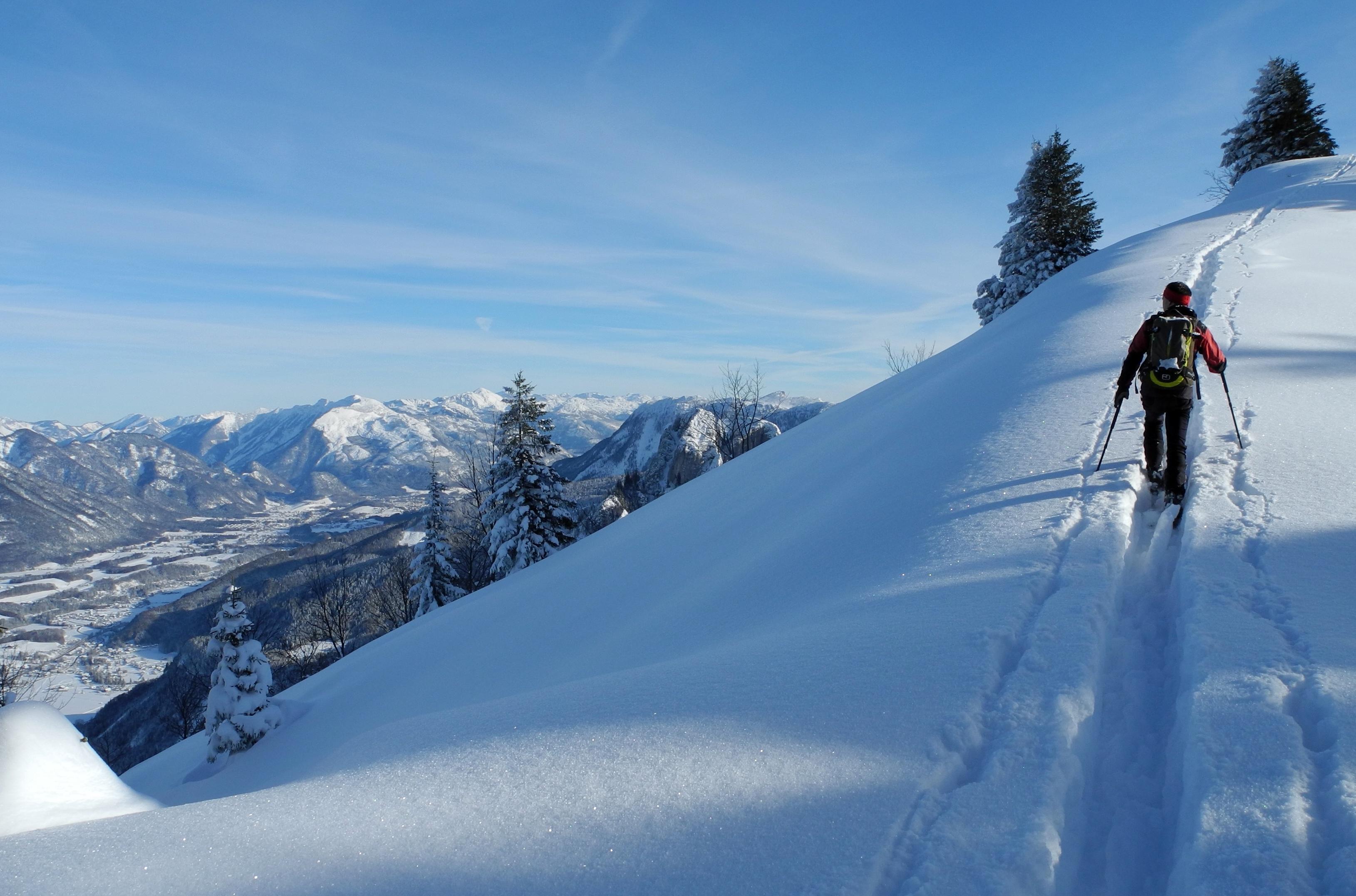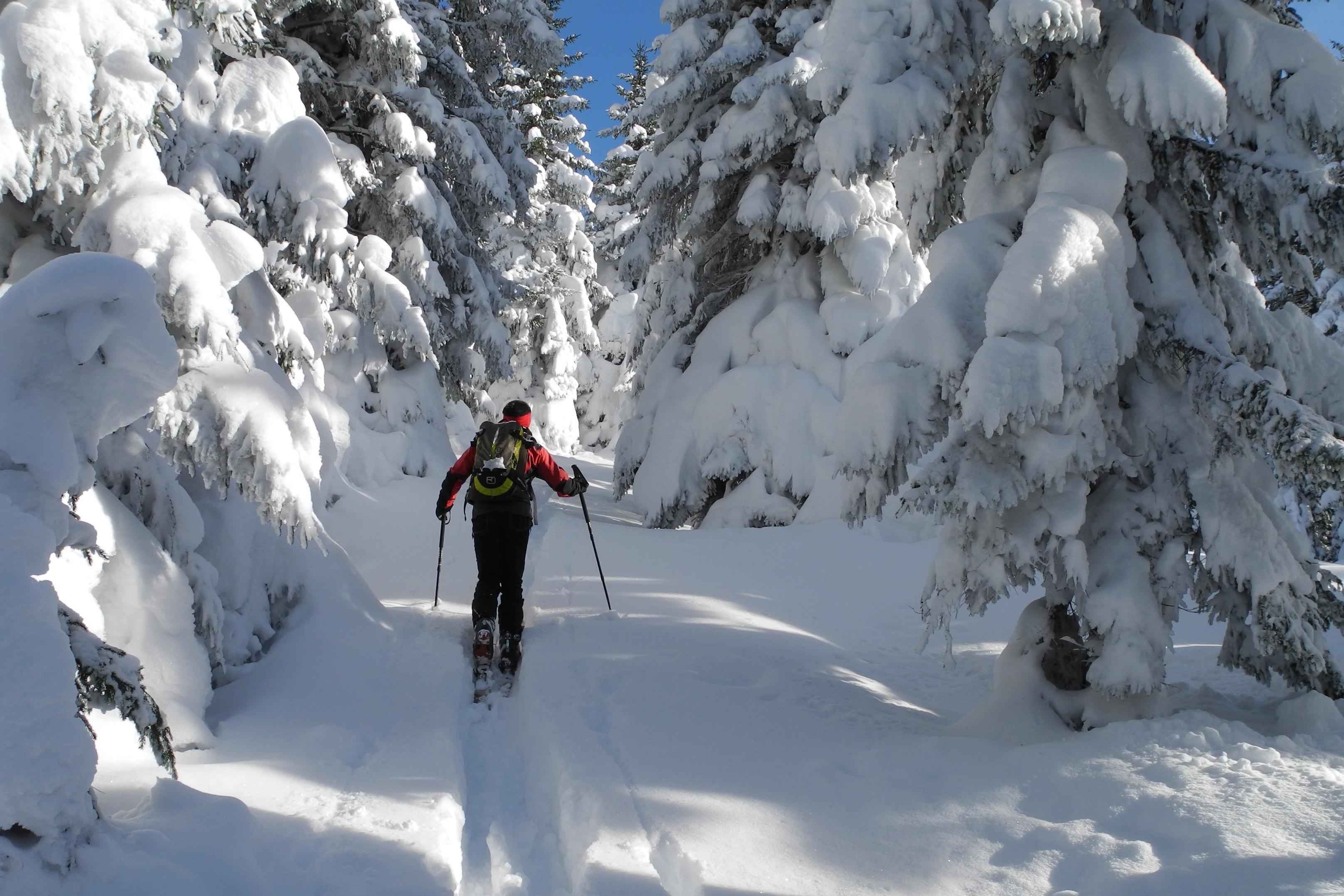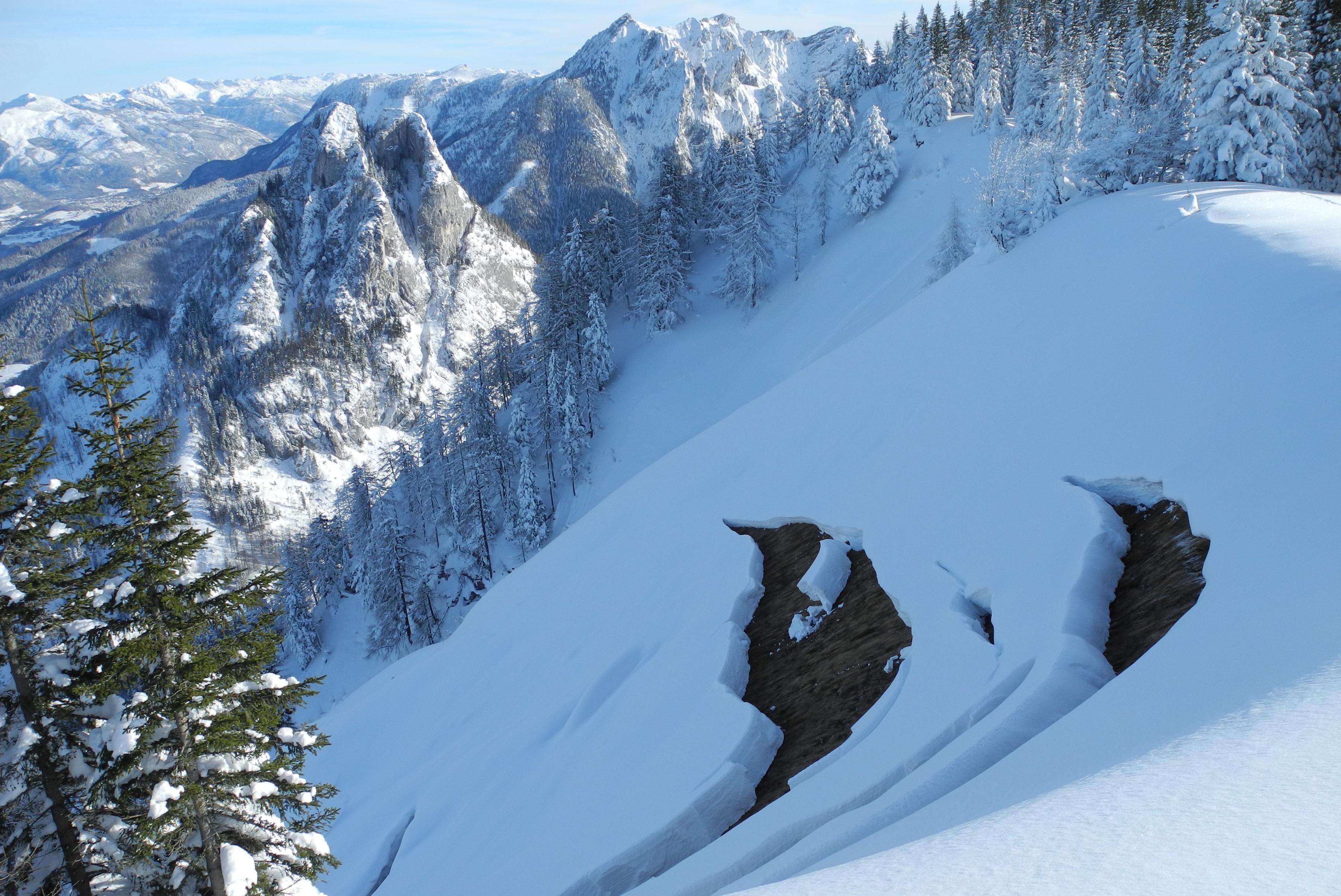 Aufstieg und Abfahrt über Vitz am Berg und Bleckwandalm. Die für Mitte Dezember enorme Schneedecke hat sich schon stark gesetzt. Teilweise starker Oberflächenreif, der aber für die weitere Saison aufgrund der prognostizierten Erwärmung kein Problem sein dürfte. Traumhafte Abfahrtsbedingungen!