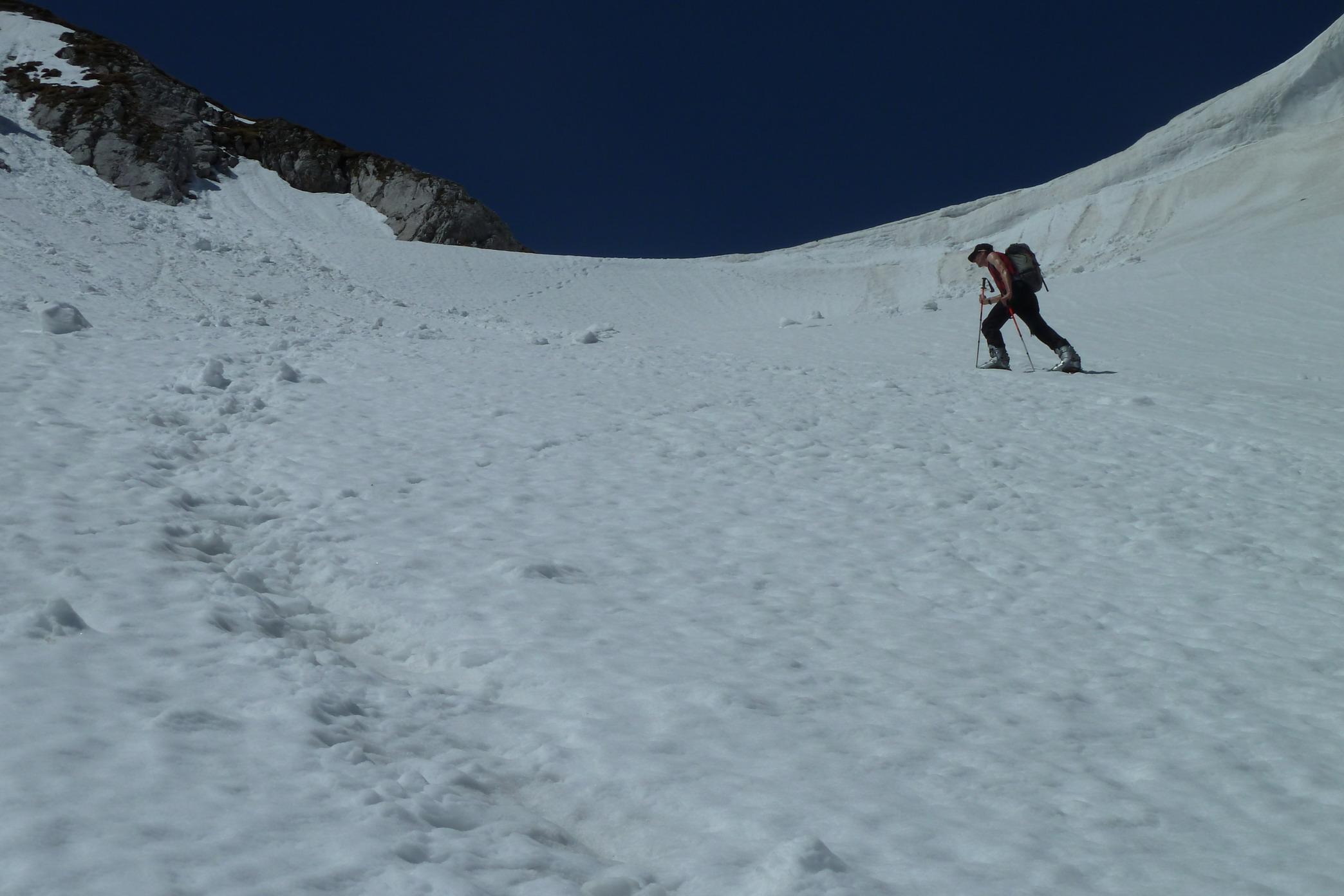 Schneeverhältnisse: oben patziger Neuschnee - weiter unten Sommerfirn - insgesamt sehr gute Bedingungen!