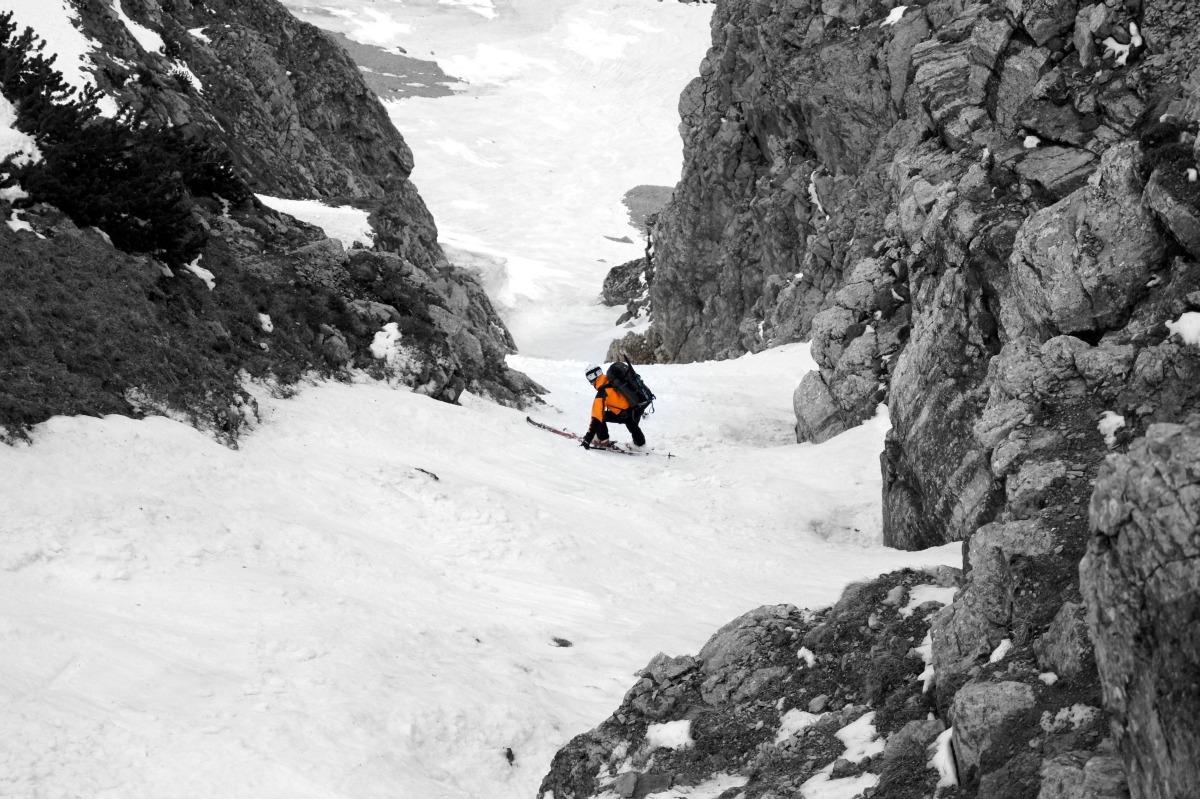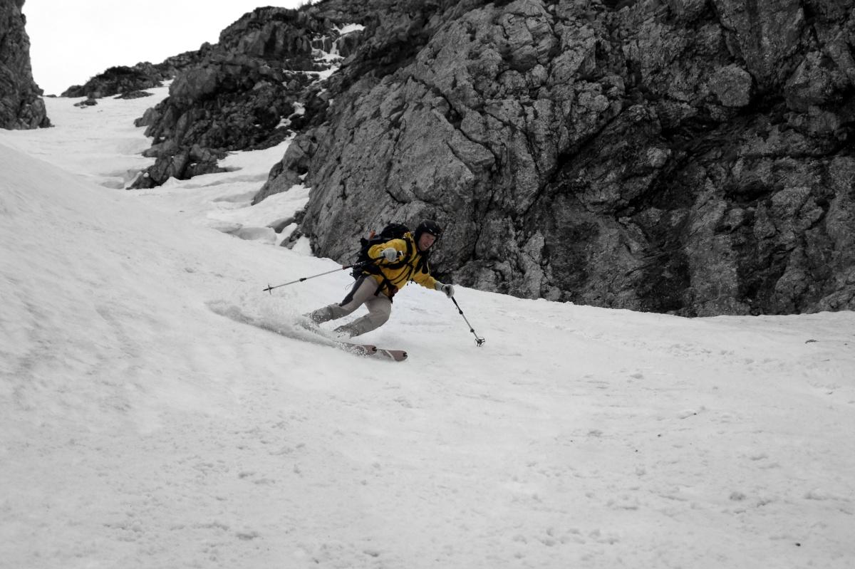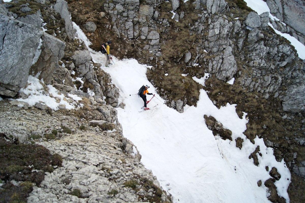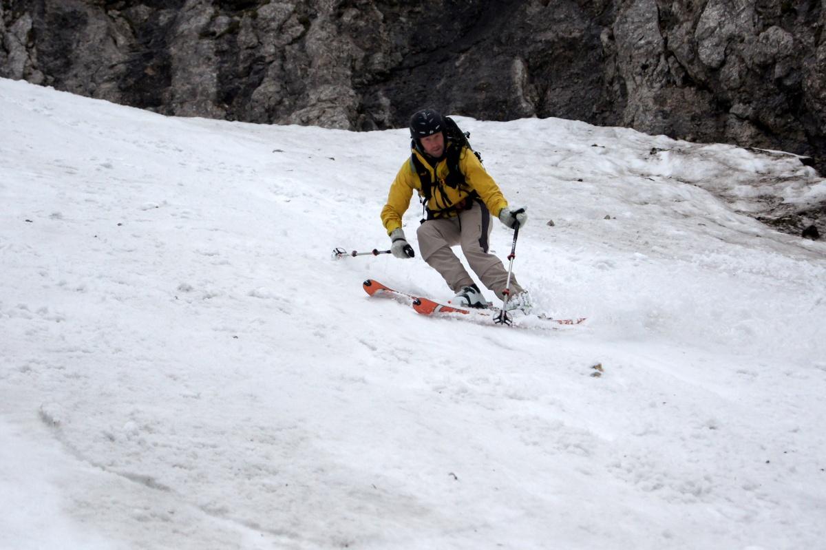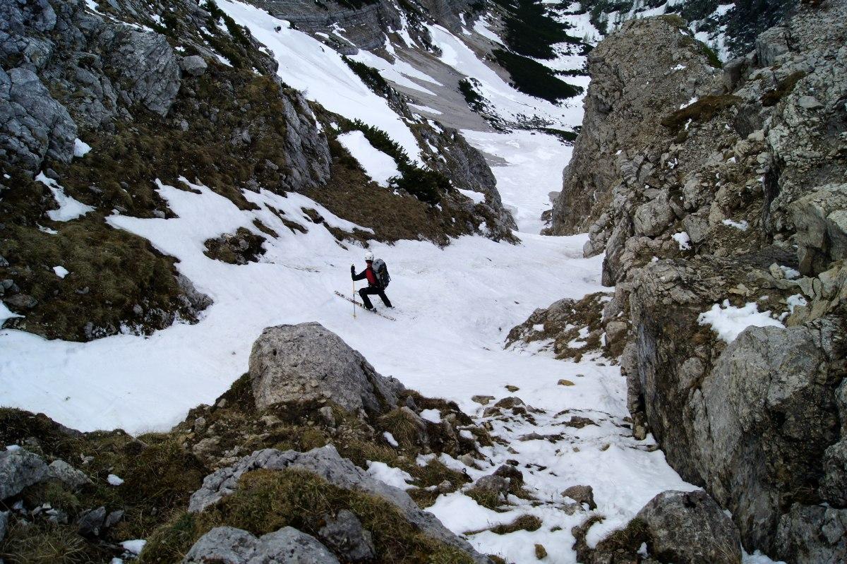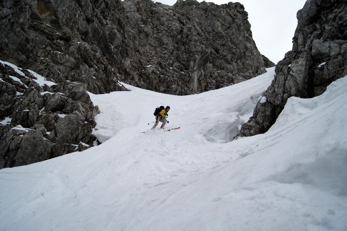 Wems nicht zu blöd ist die Schi bis zur Dümlerhütte zu tragen (oder wer gerne Figlt), der findet in der Stofferkarrinne noch ein lässige Steilabfahrt. Abfahrt war bis kurz vor der Hütte noch möglich (knapp 500Hm).