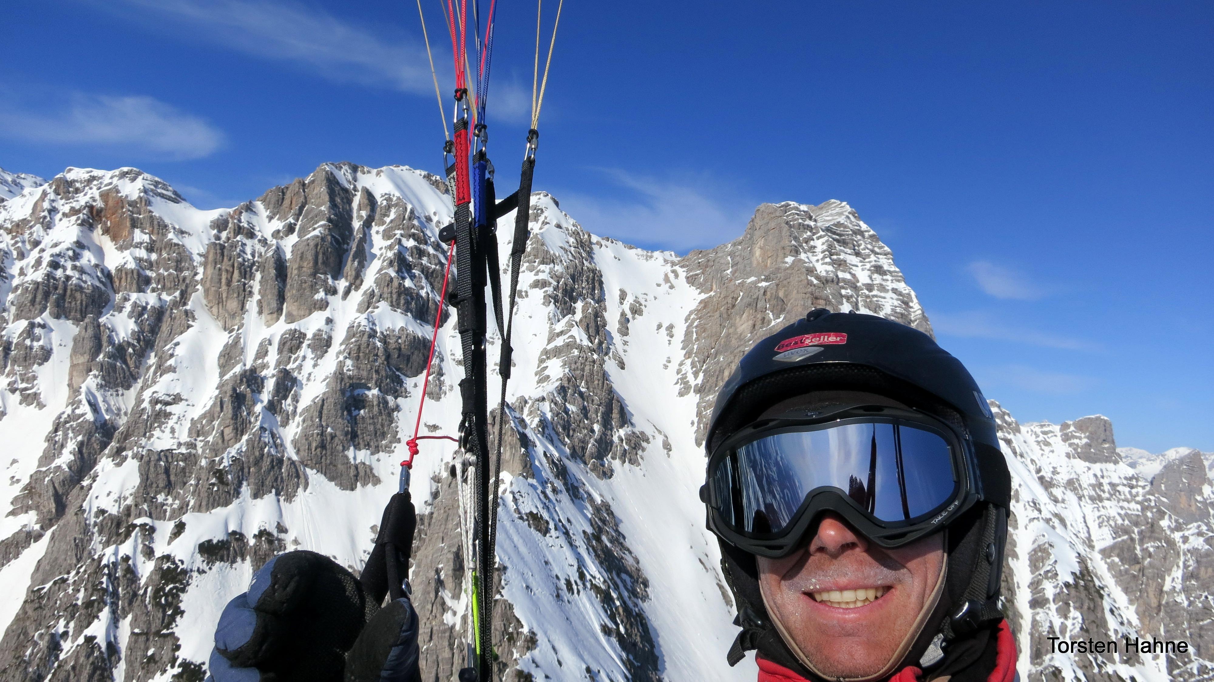 Am Nachmittag hab ichs mir nicht nehmen lassen noch einmal mit dem Paraglider vorbeizufliegen. Dann liegt das ganze Kar wunderbar und sehr fotogen in der Sonne.