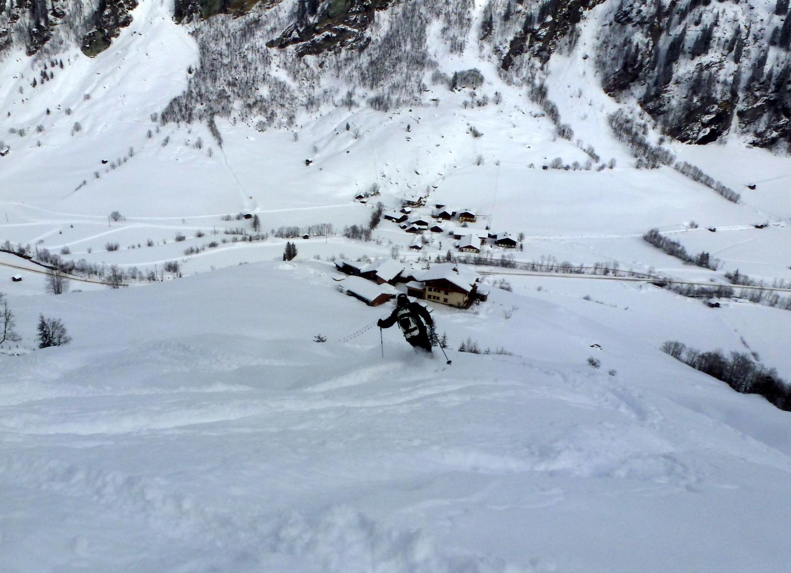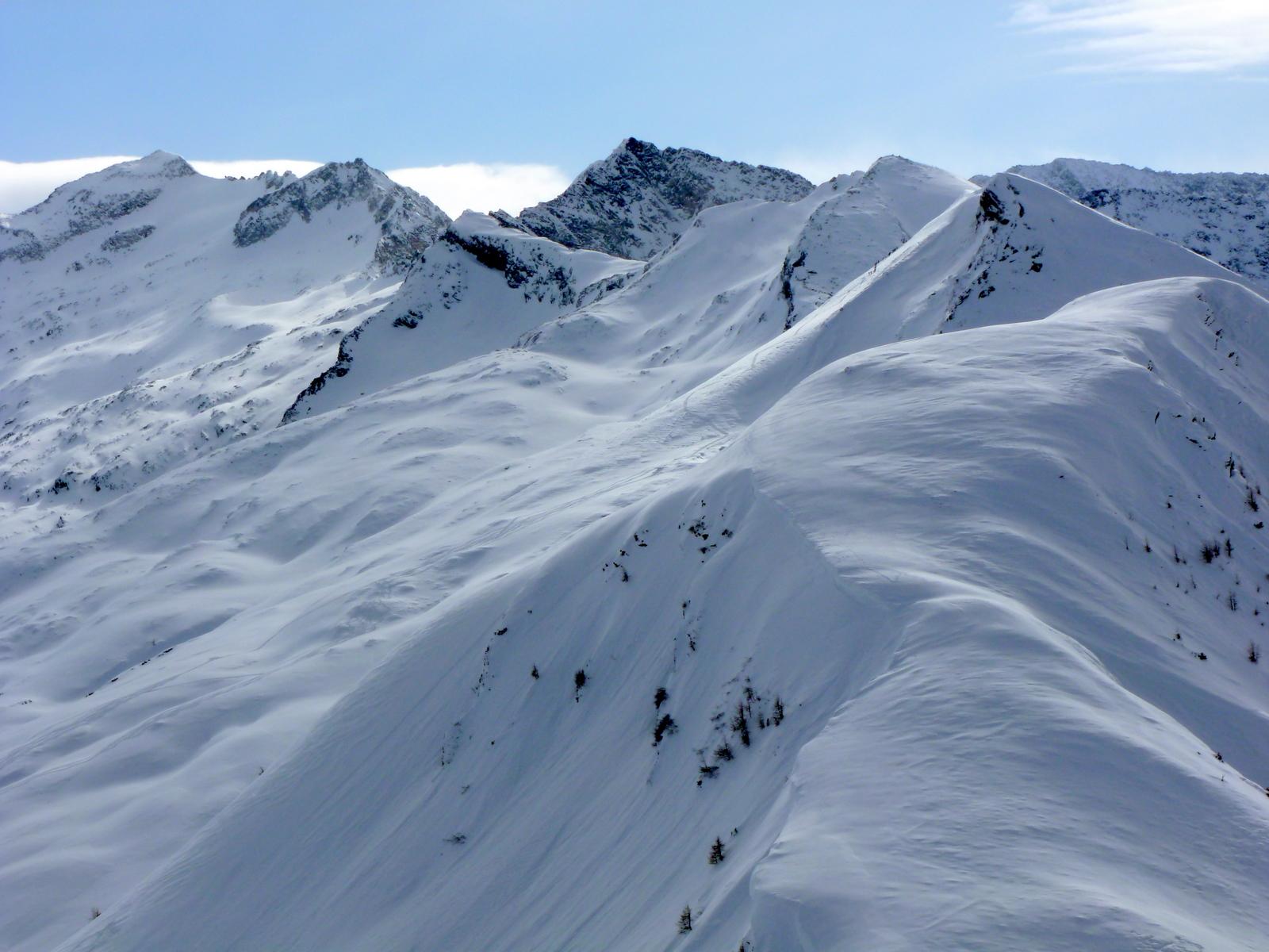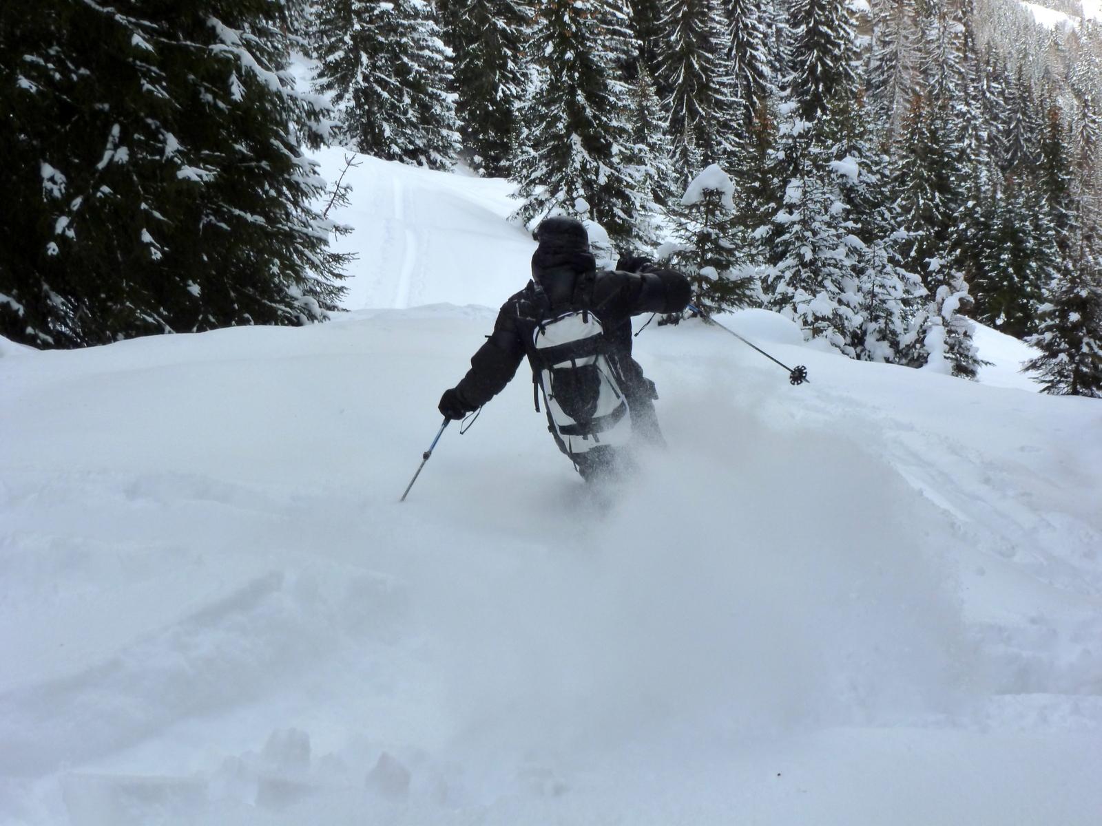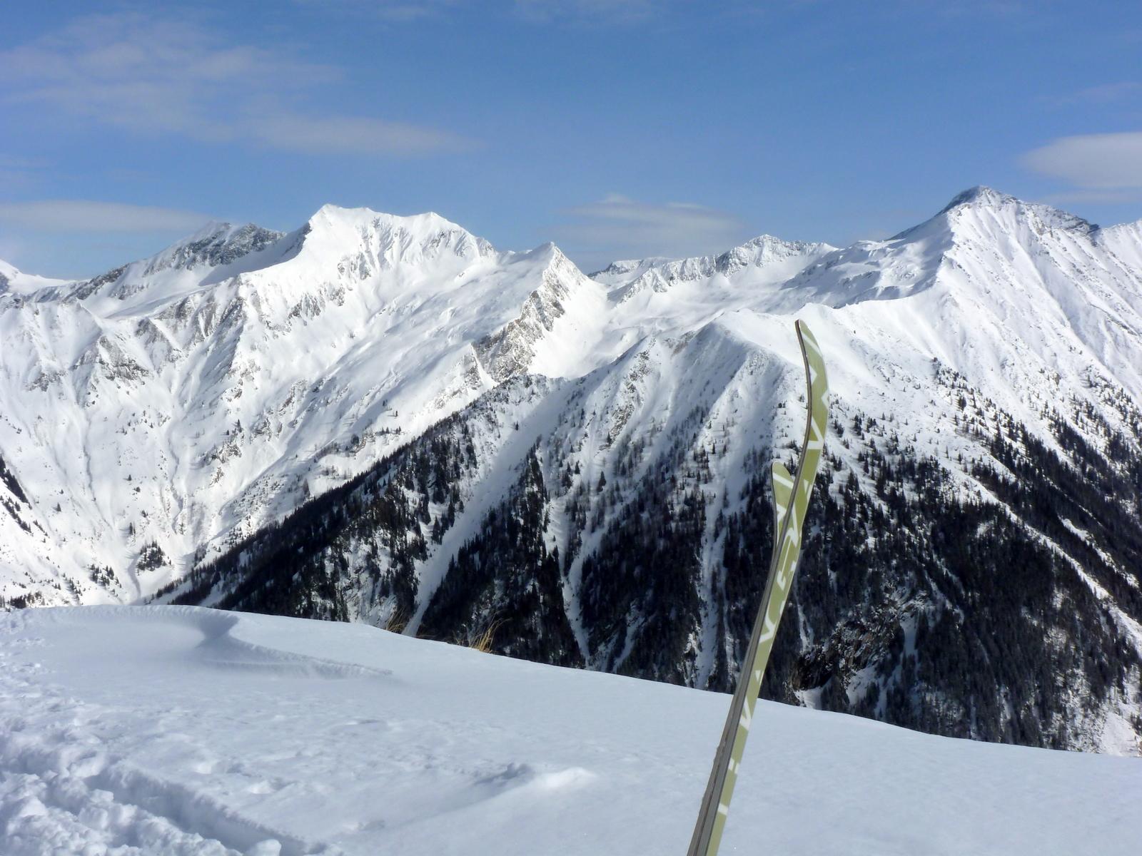 Bei fast schon angenehmen Temperaturen starten wir vom Parkplatz nahe dem bekannten Aschauerstüberl, der traditionellen Einkehr aller Tourengeher im Großarltal hinter Hüttschlag. Der Anstieg sorgt dann ohnehin für gute Betriebstemperatur. Erst oberhalb der Baumgrenze ist aufkommender W-Wind und der damit verbundene markante Temperaturabfall deutlich zu spüren. Während der baumfreie Gipfelhang zwar schönen Pulver, aber darunter kaum eine Unterlage aufweist, wächst die Schneehöhe hinunter in der steilen Waldschneise ab der Waldgrenze schlagartig an und vermittelt in der Abfahrt einen wunderbaren "tree run", der zu rasanten "lines" geradezu verführt. Aber auch der "harmonische Schwanzler" kann dabei durchaus sein Ski-Glück finden ...