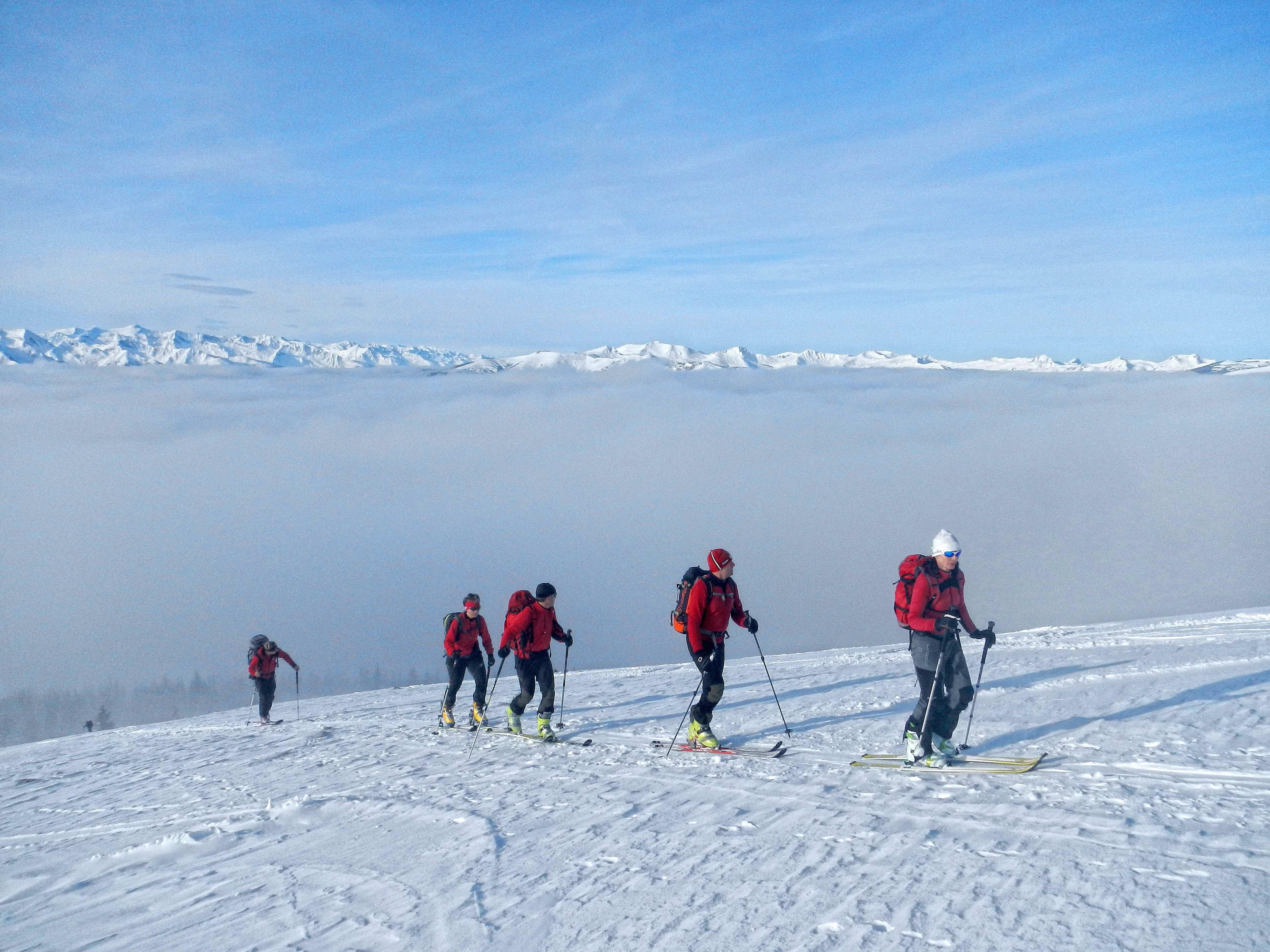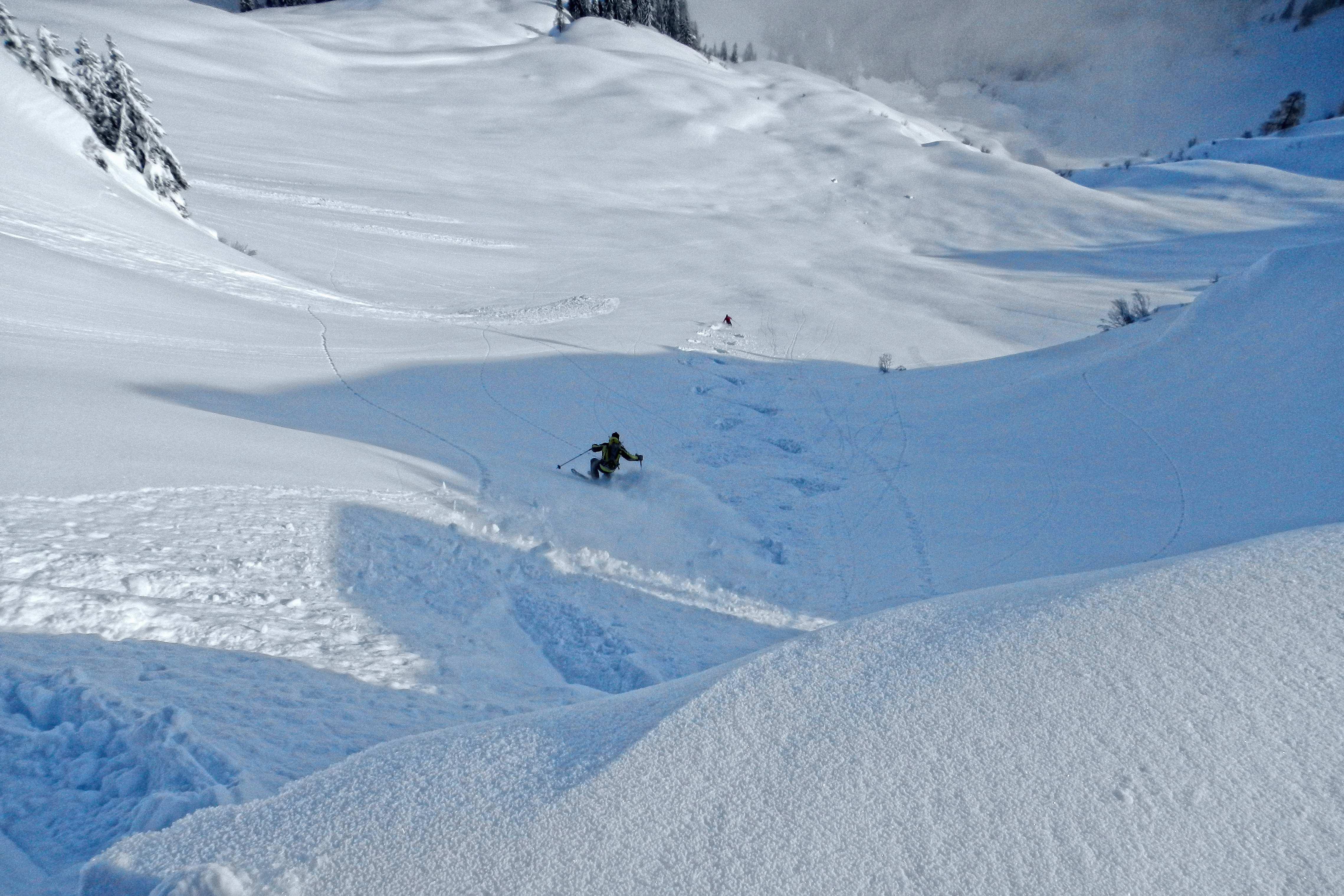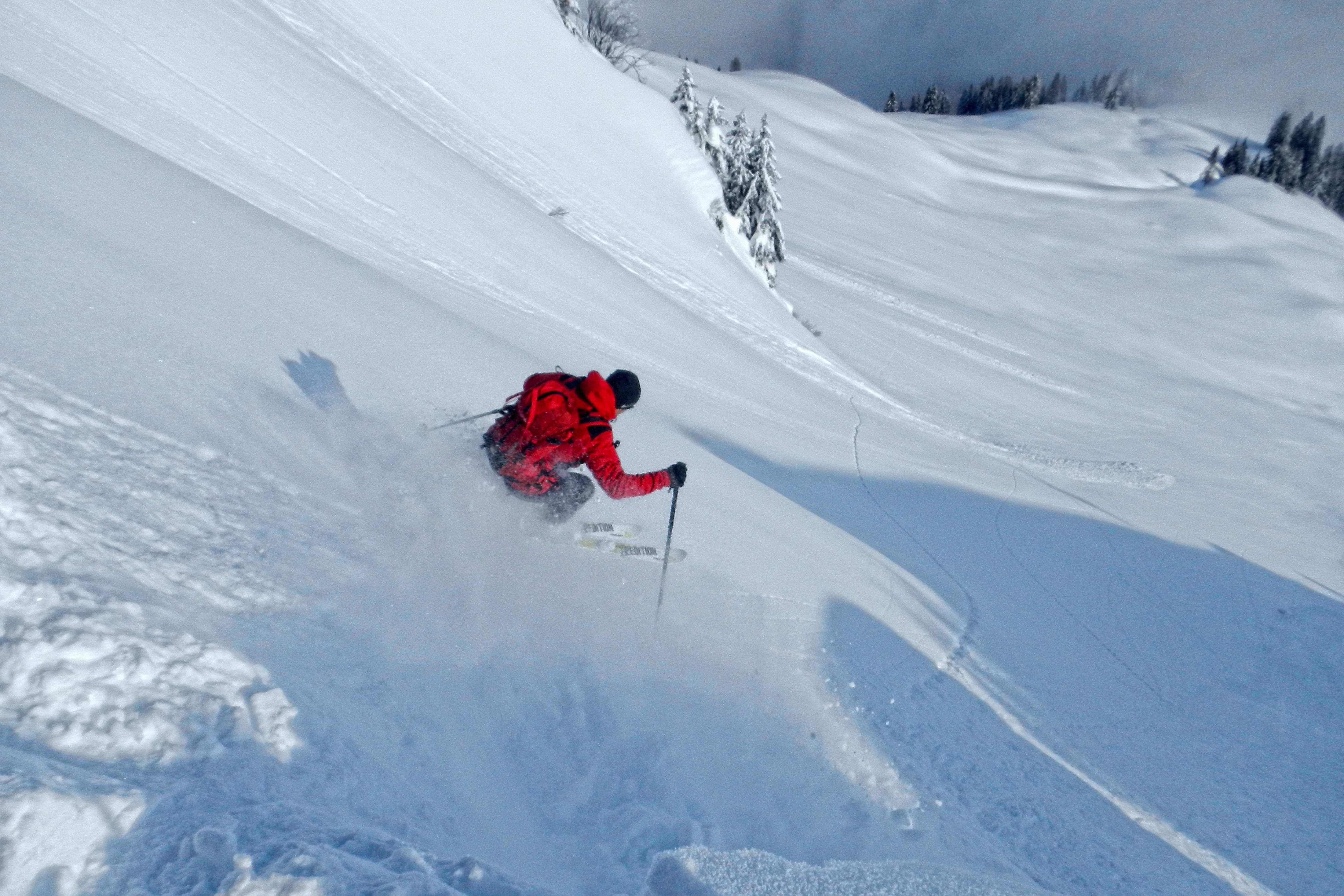 Ausflug der BR Saalfelden auf den Schönwieskopf von Thumersbach aus, mit Abfahrt in den Gemeiniggraben, Wiederaufstieg und Abfahrt nach Thumersbach. Bei der Nordabfahrt traumhafter unberührter Pulver. Im Süden tlw. Pulver Bruchharscht und Harscht. 1400Hm vom Feinsten.