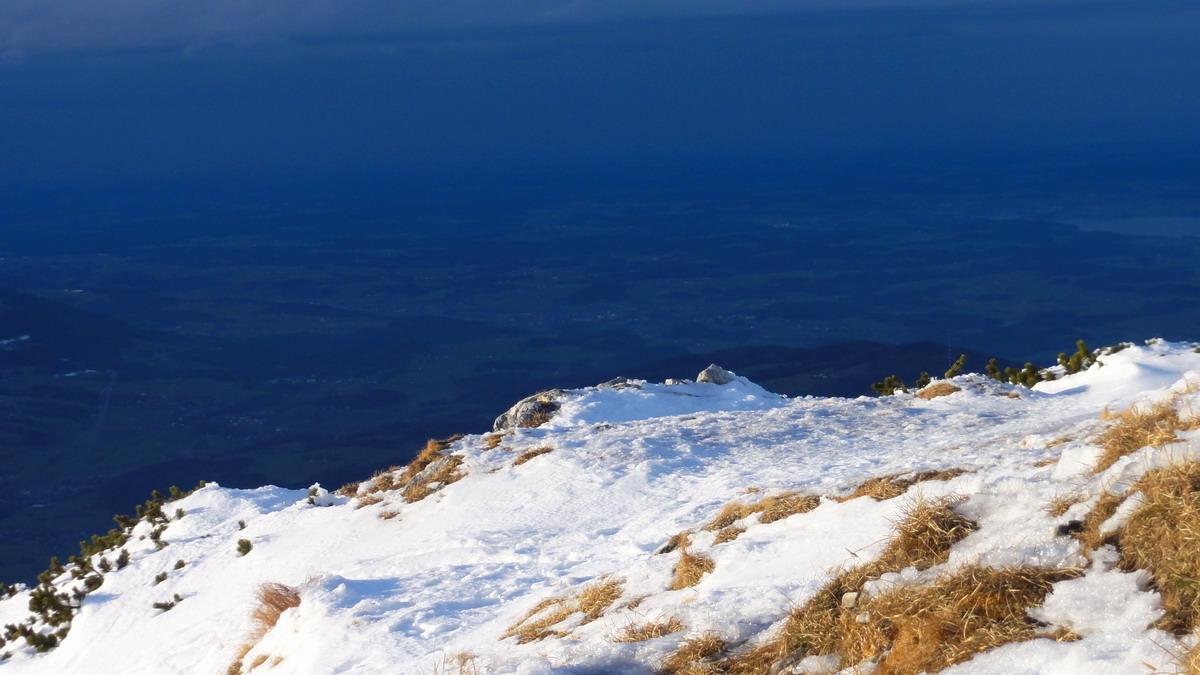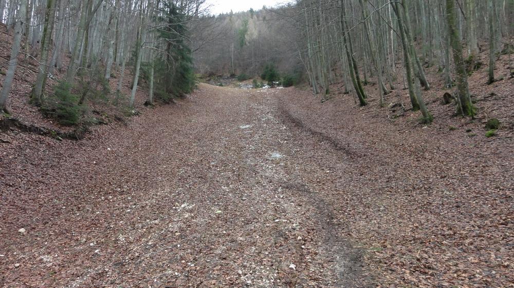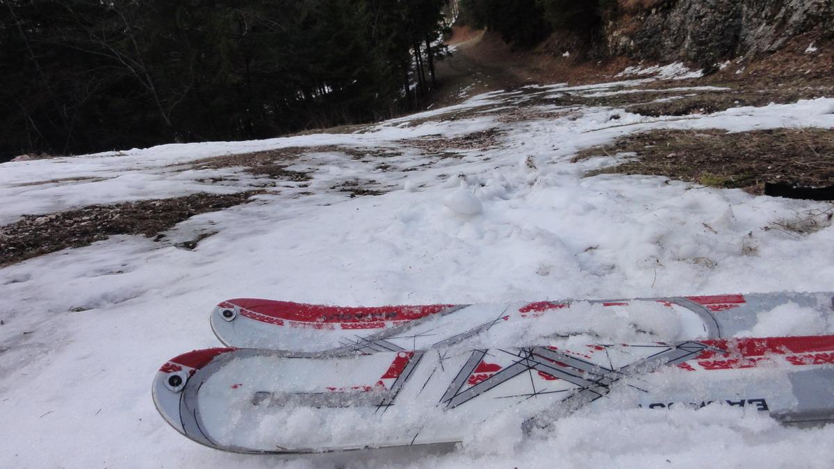 Vielleicht lag es an der zu geringen Schneehöhe, an den warmen Temperatuen und/oder am kräftigen Regen in der Silvesternacht, aber die Schi waren heute vom oberen Parkplatz bis knapp oberhalb der Umfahrung bzw.dem Steilhangende zu tragen. Die Vorteile: Ruhe und Einsamkeit und belagschonende Abfahrt, weil unterhalb von 900 Meter definitiv kein Schnee, nicht einmal mehr auf der Umfahrung, lag!