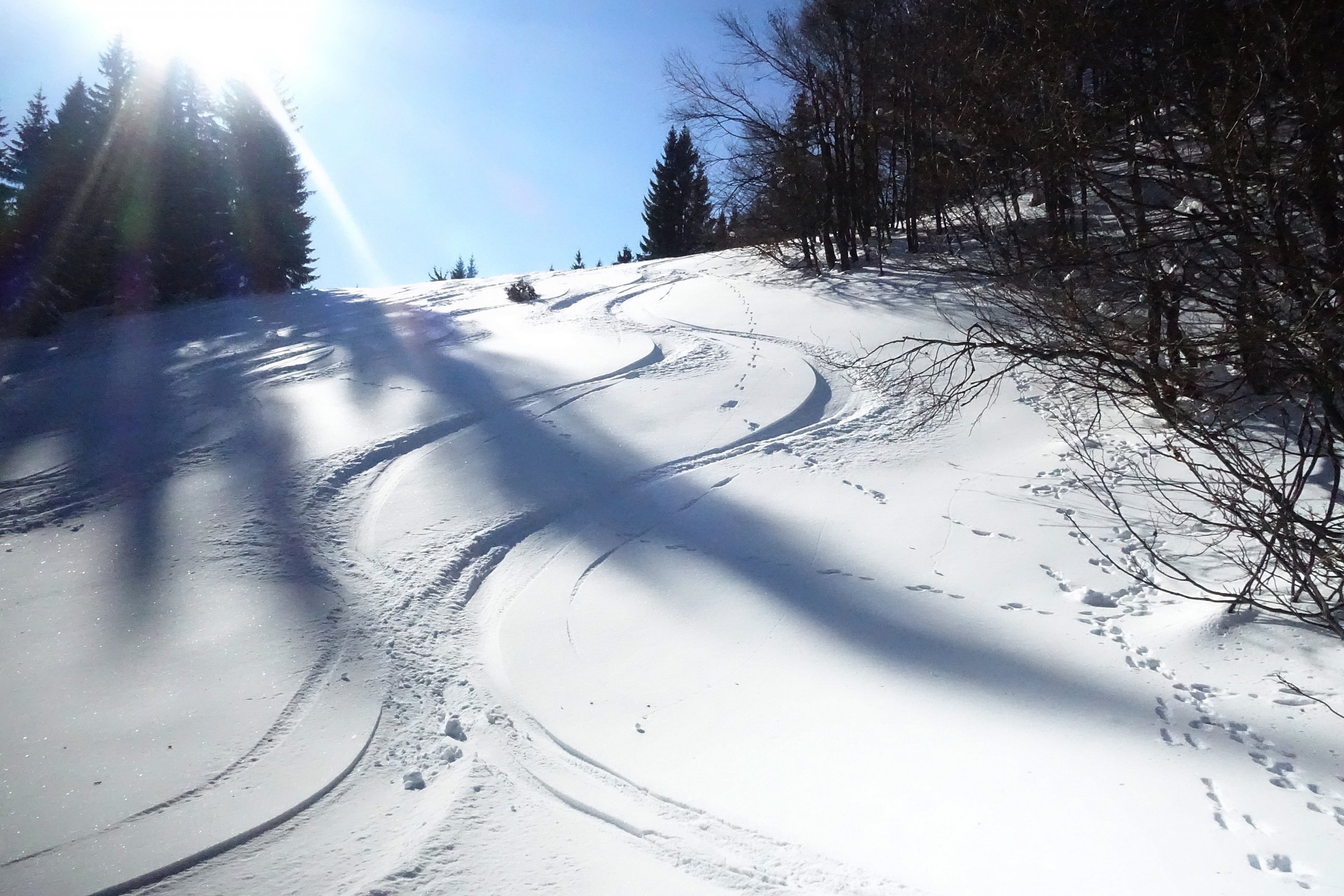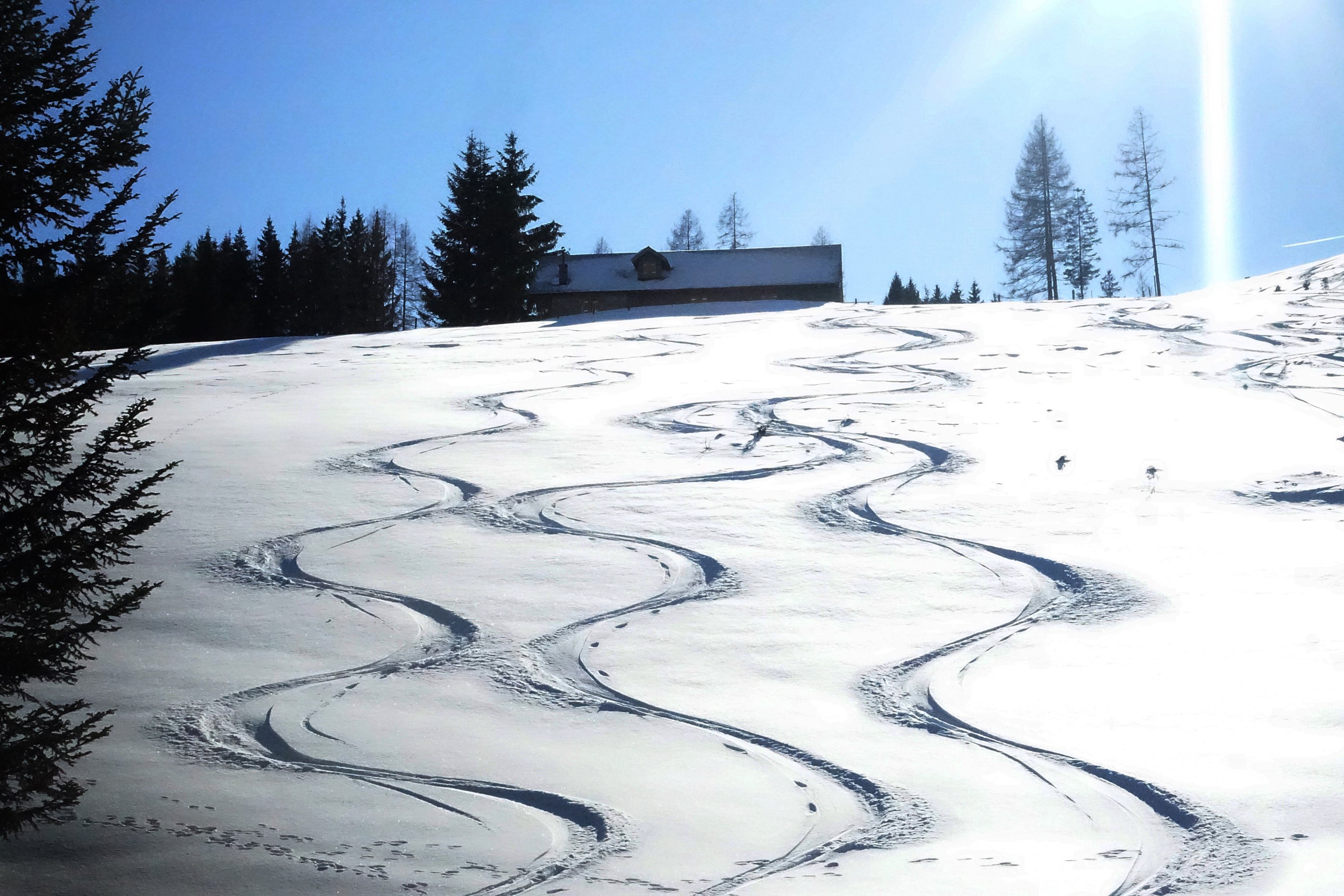 vom Faistenauer Schafberg ist ein Gleitschneerutsch bis kurz vor die Aufstiegsspur abgegangen - sonst alles fest und stabil