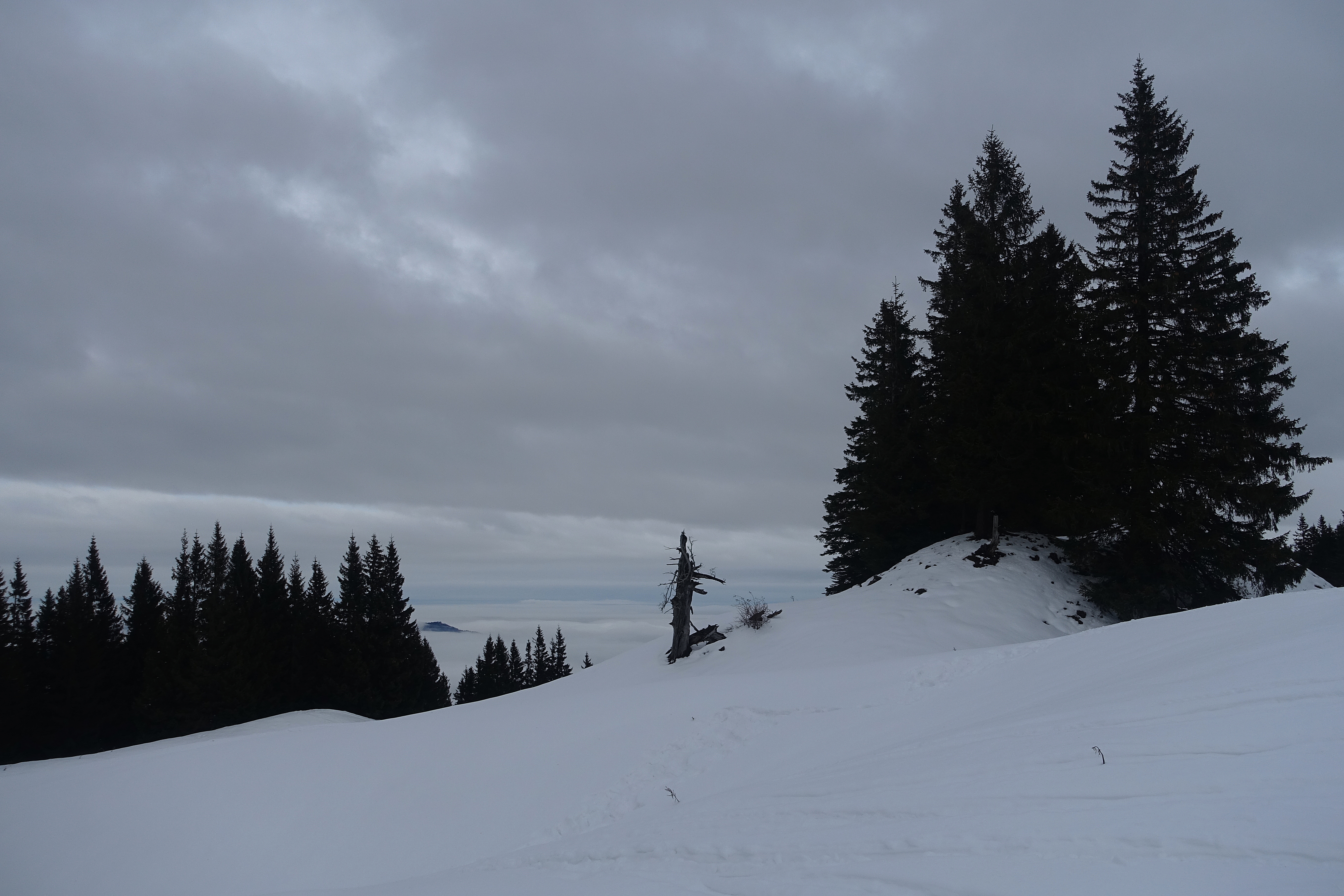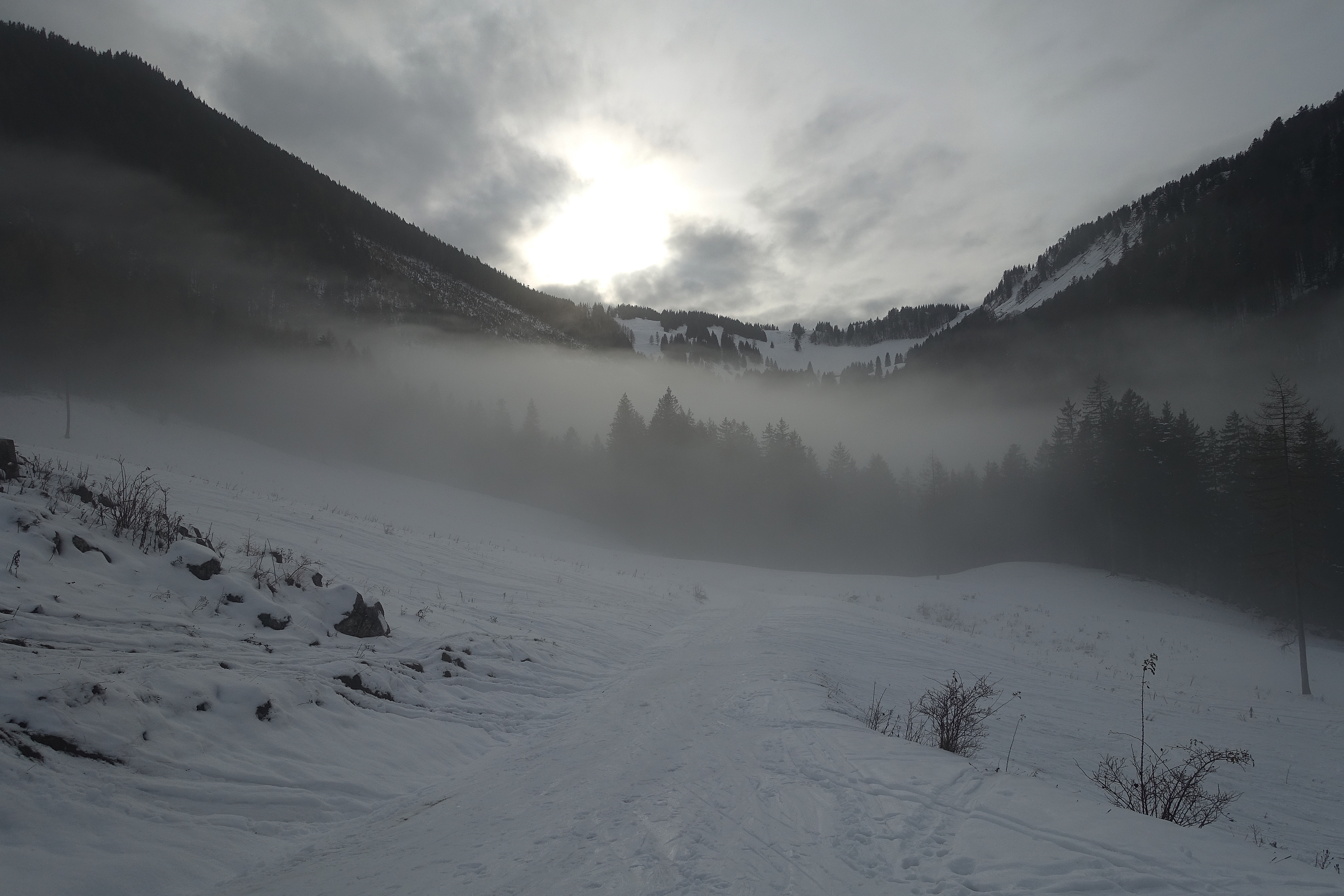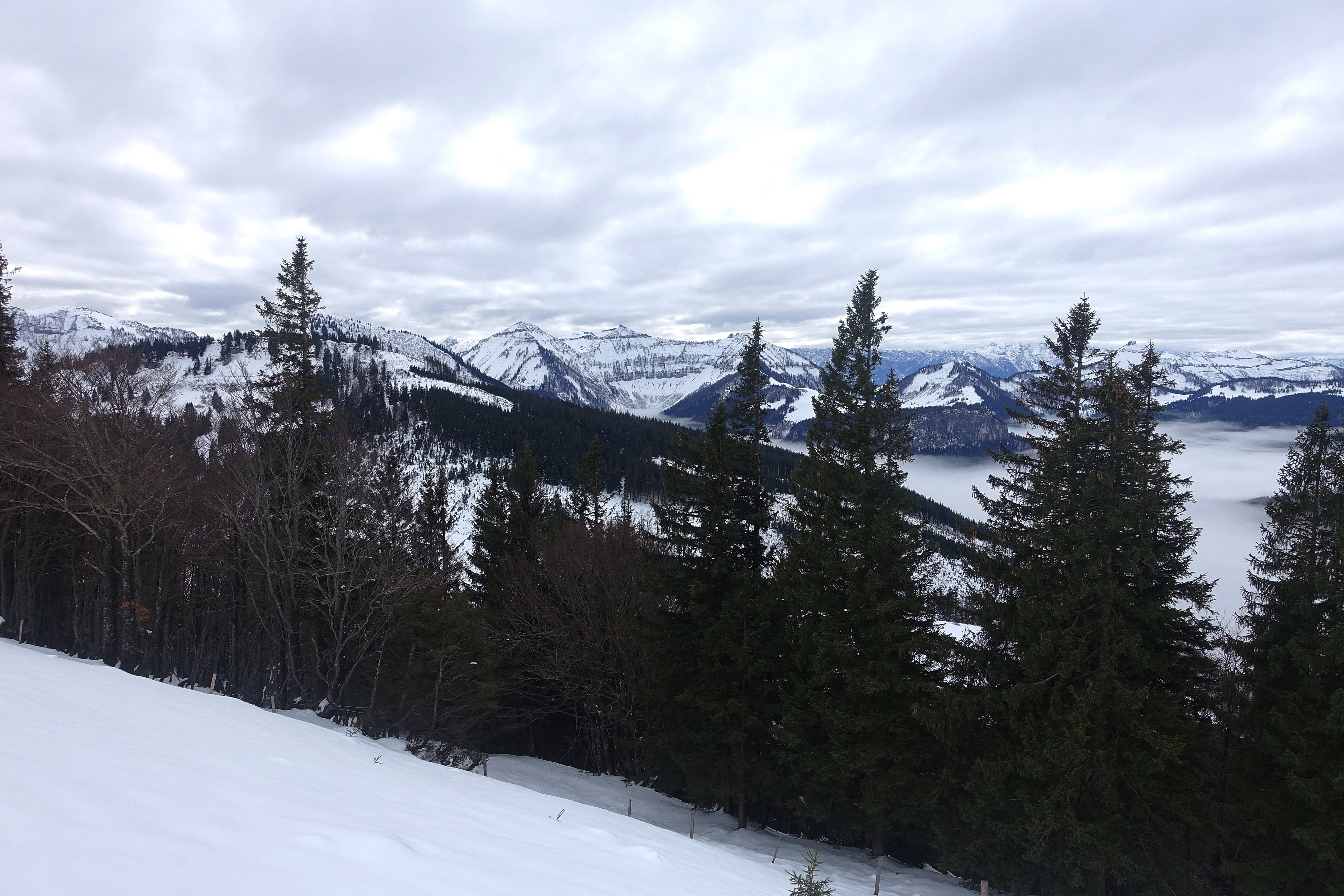 Nicht mehr wirklich lohnend, der Warmwettereinbruch und der Regen bis weit hinauf haben der Schneedecke arg zugesetzt. Stumpfer fauliger Naßschnee bis zum Untergrund - nicht wirklich ein Vergnügen zum fahren (Vergleich Bericht Johann Allgeier bzw. Peter Bruckbauer vom 13.12.2022). Aufstieg über die Gartenbergseite, Abfahrt Standard über Stubneralm und Fortsstraße, der Forstweg von der Stubneralm bis zum Parkplatz Sausteigalm wurde schon einmal geräumt, teilw. sehr dünne Schneeauflage und die Steine kommen an einigen Stellen schon durch. Die Abfahrt zum Auto schon ziemlich eisig und und ebenfalls schon Steinkontakte.