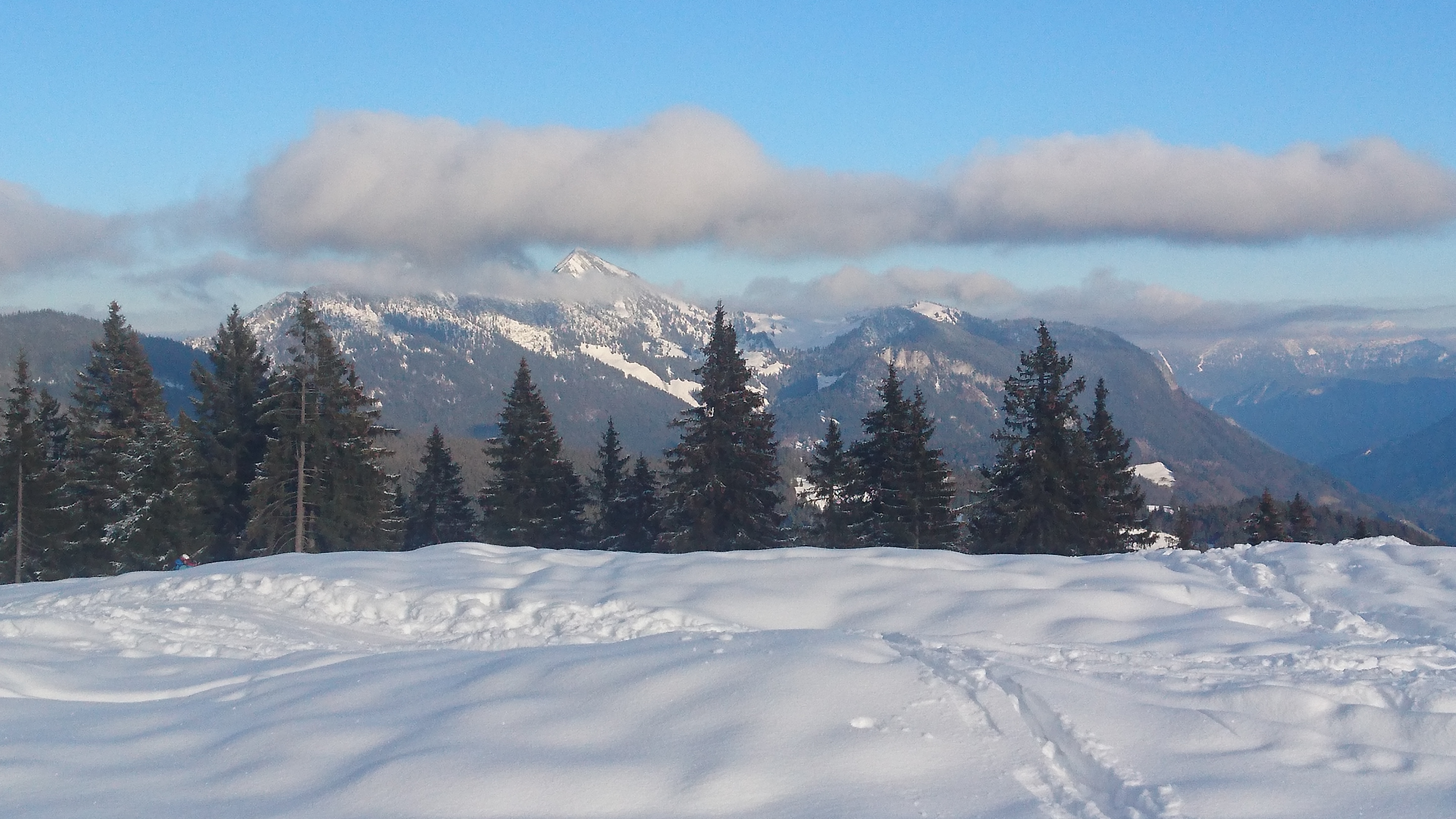 Wer lieber mit dem Auto auf die Winklmoss fährt, an der Roßalm ist ein ganz ansprechende ca. 5m breite Piste, bis zum Scheibelberg-Gipfel perfekte Verhältnisse