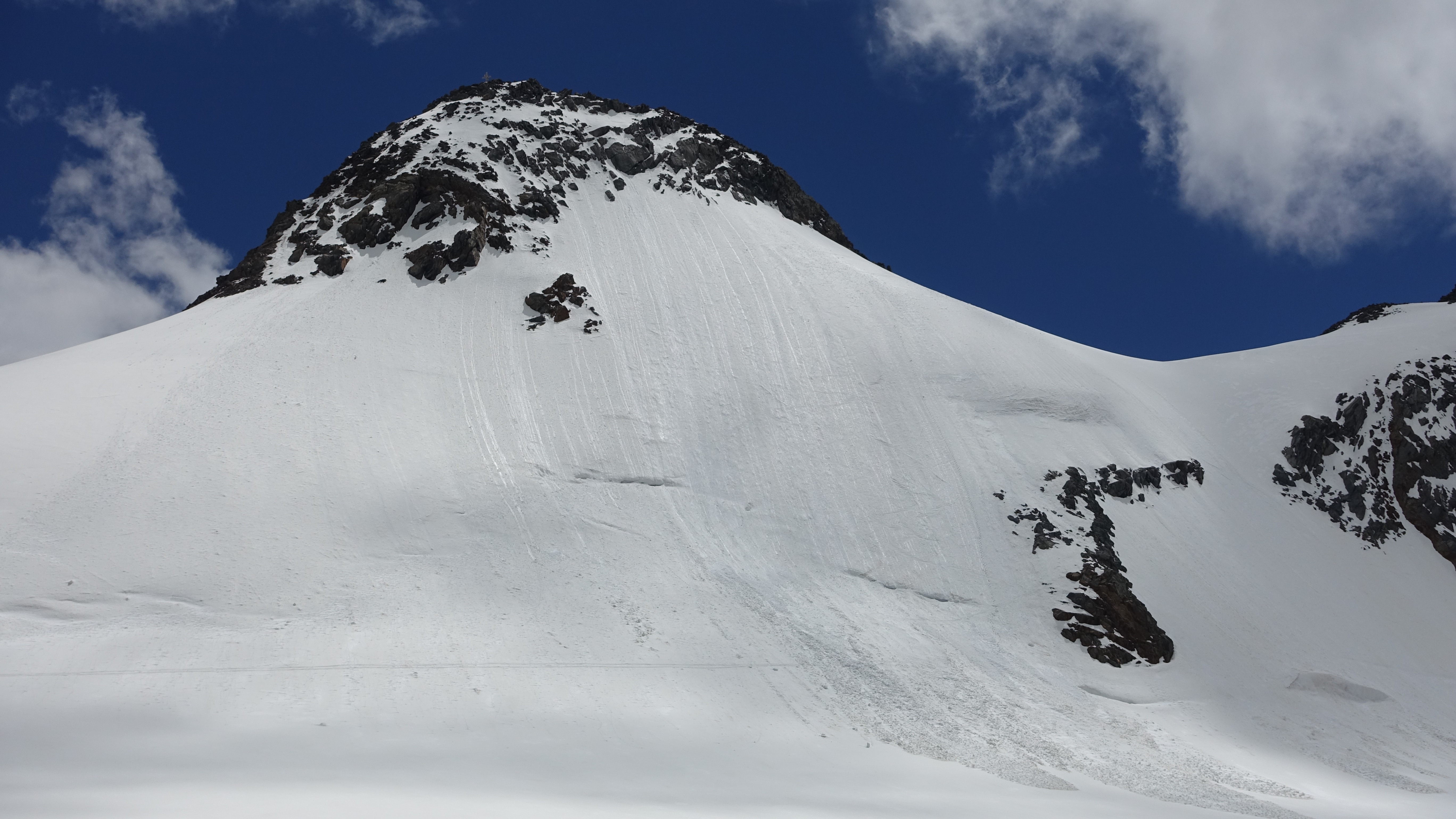 Die Gipfelhänge hatten perfekte Verhältnisse. Nordwand griffig, etwas aufgefirnt, Abfahrt vom Wilden Pfaff Sommerfirn, Abfahrt vom Pfaffenjoch oben noch Sommerfirn, übergehend in Sulz, Abfahrt bis zur Mittelstation je nach Tageszeit, wir sind erst gegen 15:00 h aabgefahren, da war es ziemlich stupf.