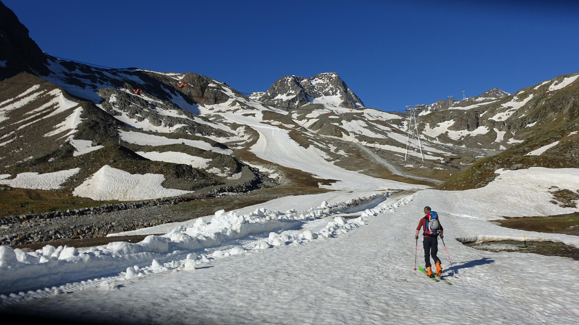 Das Stubaier Gletscherskigebiet ist geschlossen. Der Nachteil: Es ist von der Talstation eine sehr anstrengende Tour mit über 2000 Hm. der Vorteil: Man ist vermutlich alleine unterwegs.