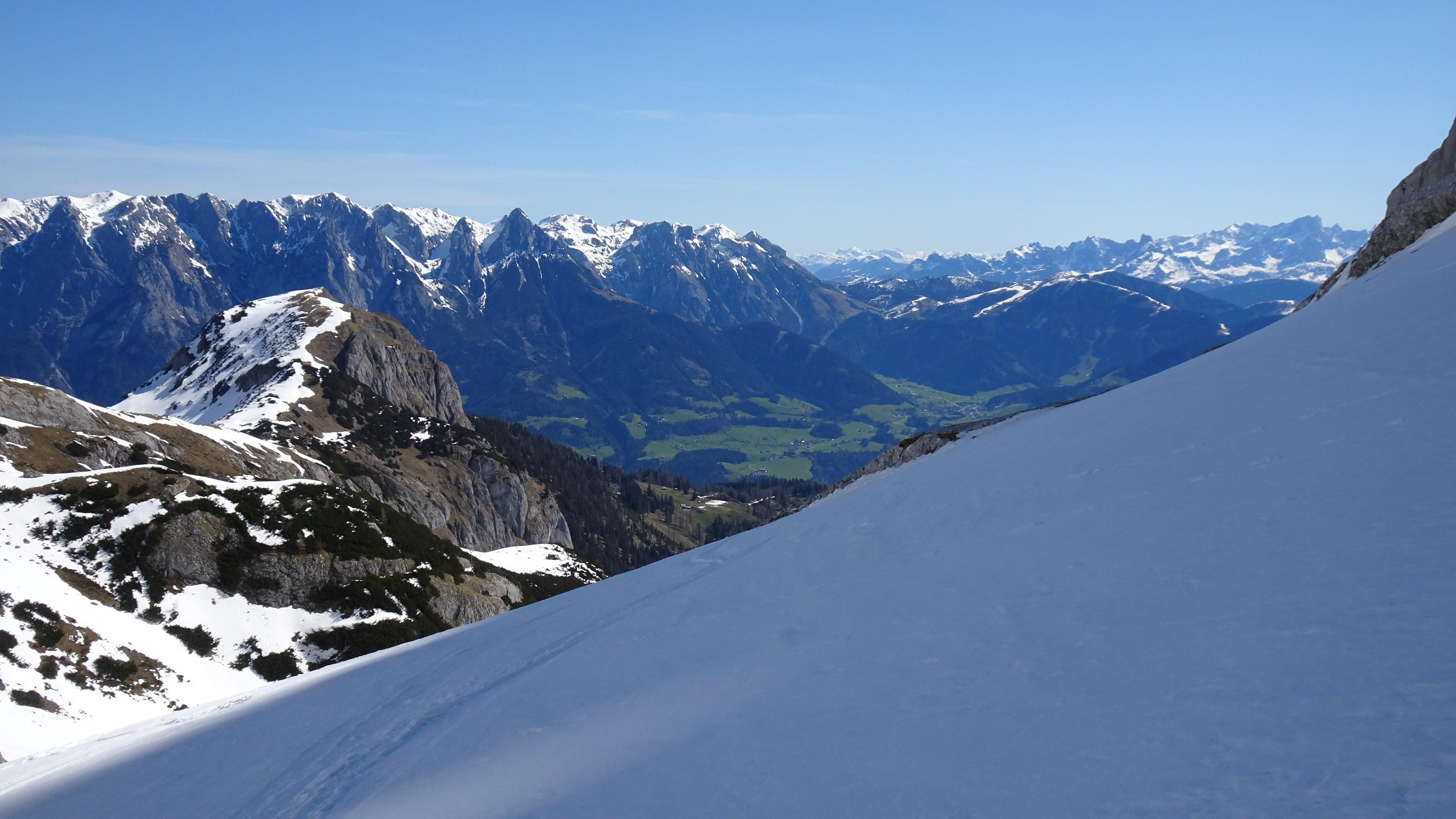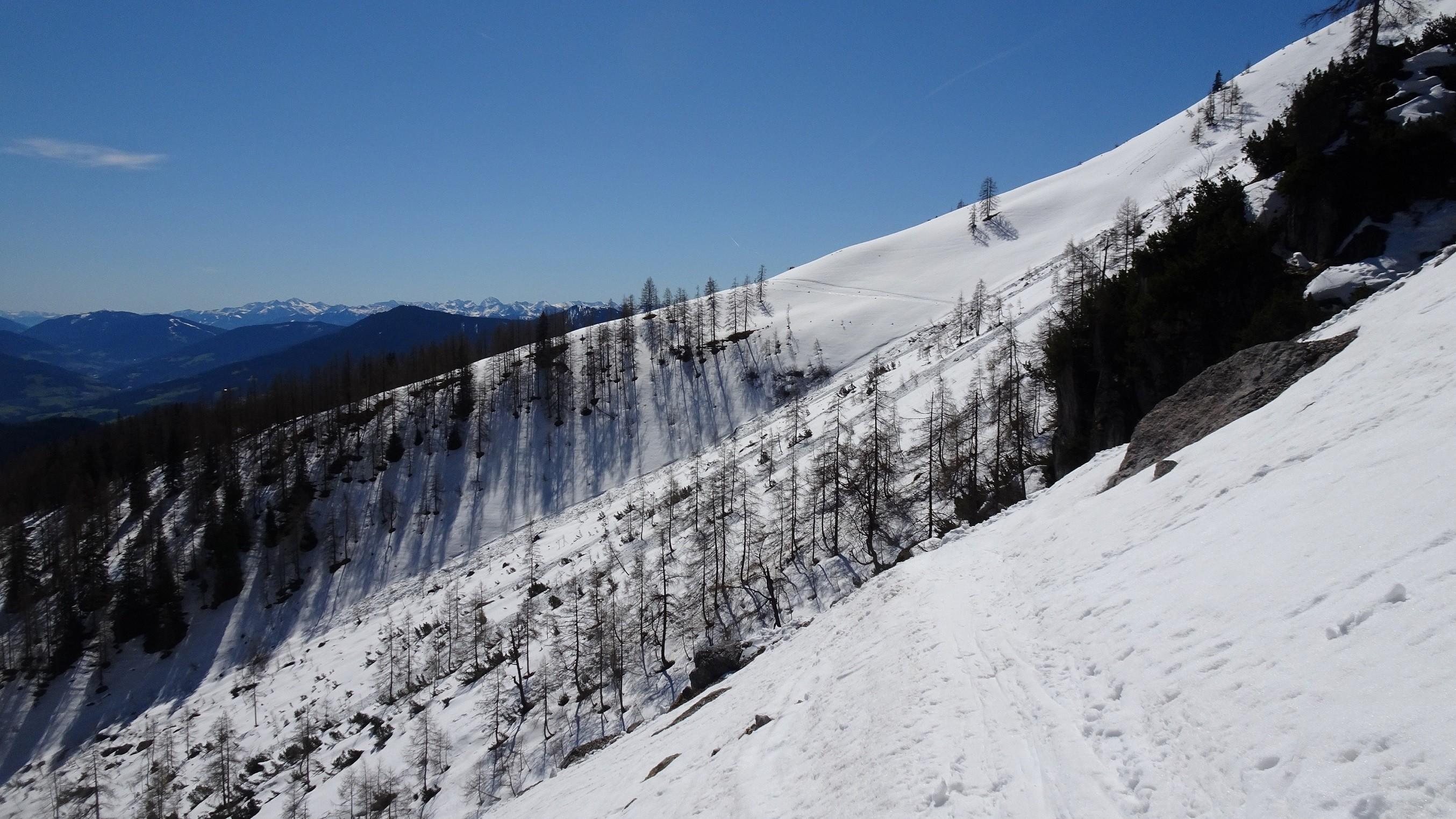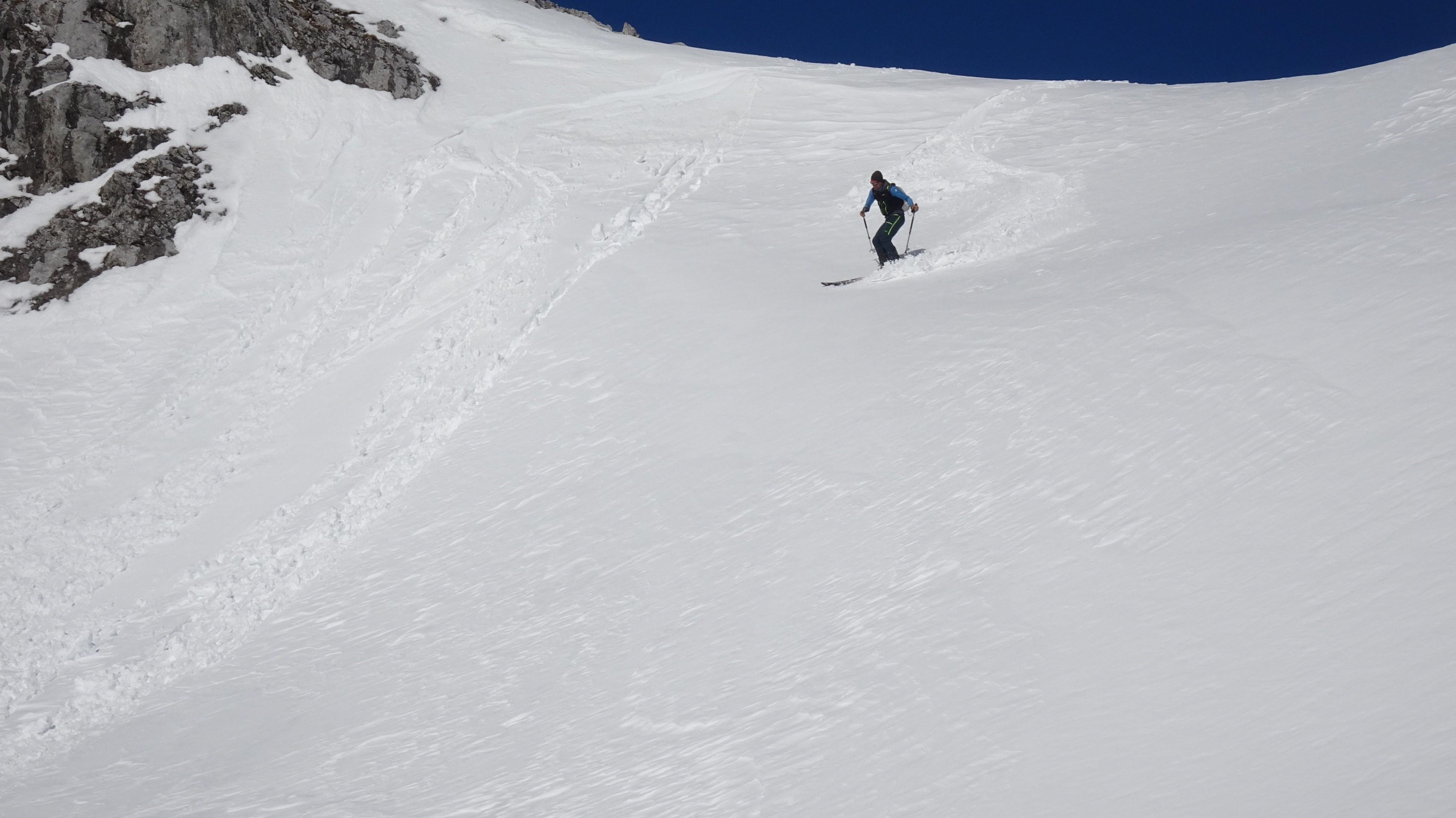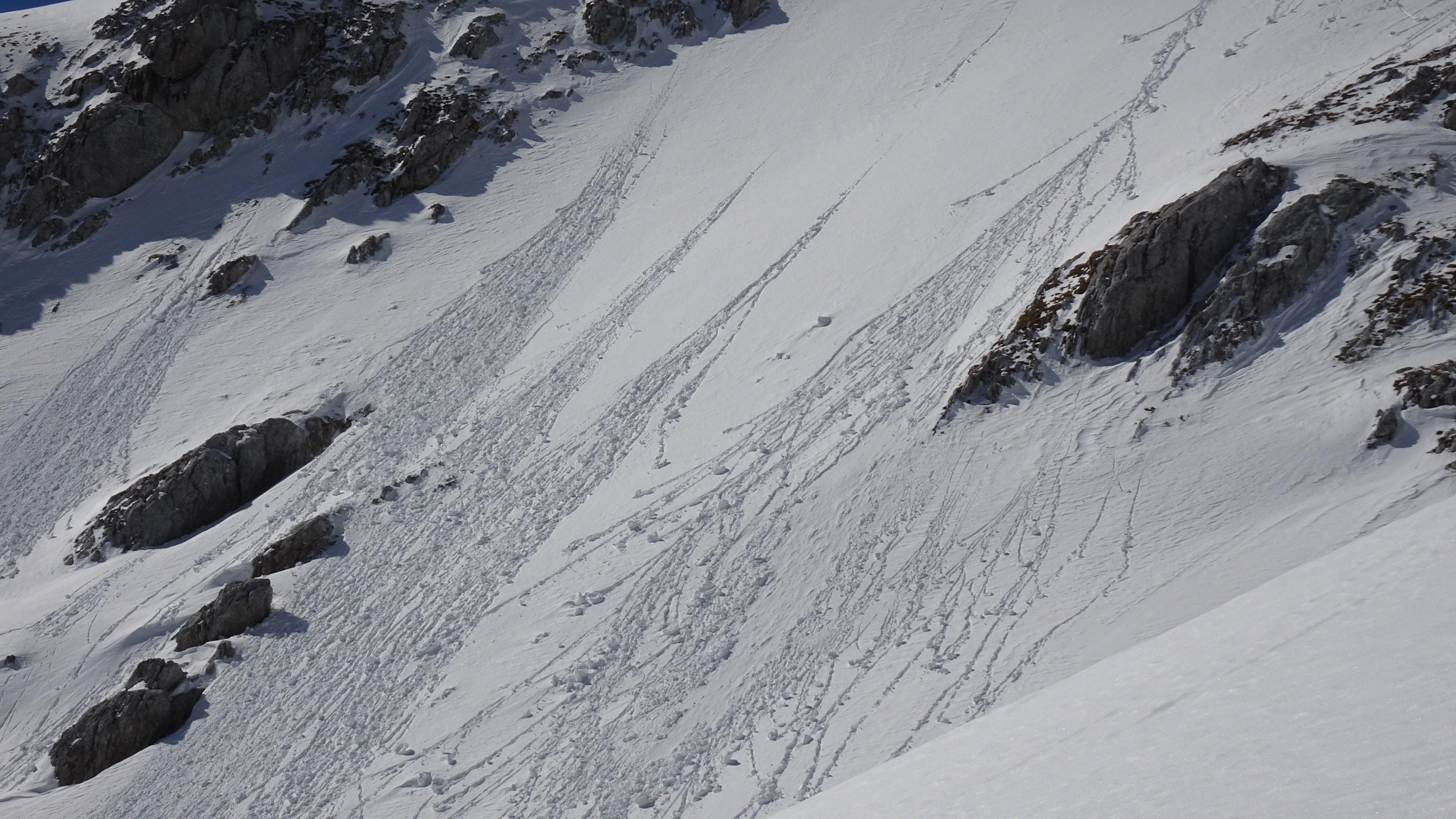 Als wir zur kleinen Geißnase herunterfuhren sahen wir 100 Meter weiter draußen eine Lawine abgehen.