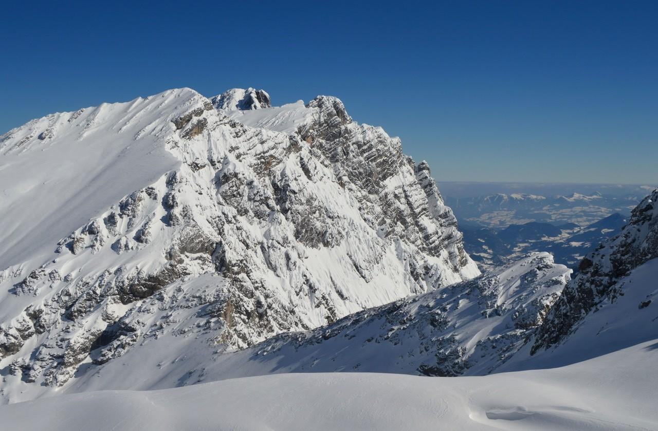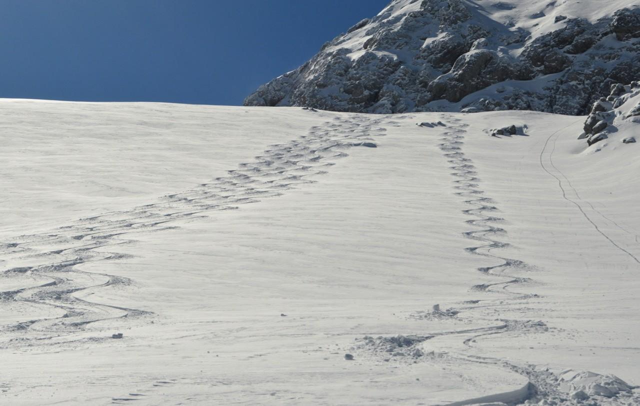 Beim Spuren wurden wir von zwei Berchtesgadenern überholt, die sichtlich genervt waren, dass wir ihre Heimatberge vor ihnen einspuren.