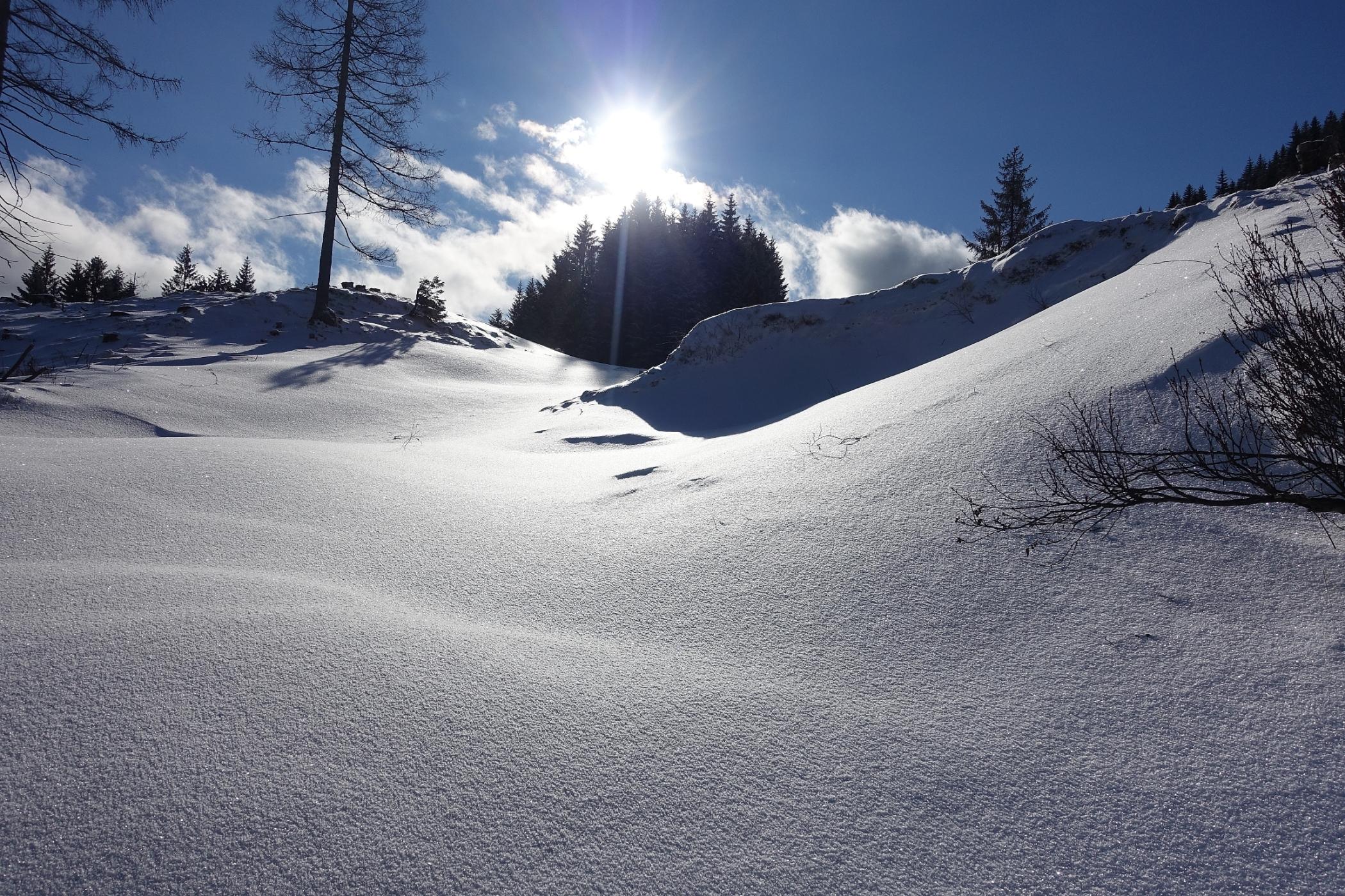 Start in Keflau bei 14° Minus, Anstieg über den Skitourenlehrpfad bis zur Schafbergalm, dann Richtung Süden abgezweigt (großer Andrang Richtung Lanzenalm), auf den breiten Kamm hinaufgespurt und zum Gipfel. Abfahrt anlog Anstieg kein steiles Gelände siehe Stille - schöner lockerer Pulverschnee auf fester Unterlage, direkte Gipfelabfahrt nicht ganz ungefährlich !!!. Als wir wieder bei der Schafbachalm waren, löste ein Abfahrer oder Abfahrerin am Osthang ein Schneebrett kurz nach der Einfahrt unterm Gipfel aus, deren Ausläufer bis zu unserer Aufstiegsspur runterkamen - nochmals gut ausgegangen !!!.