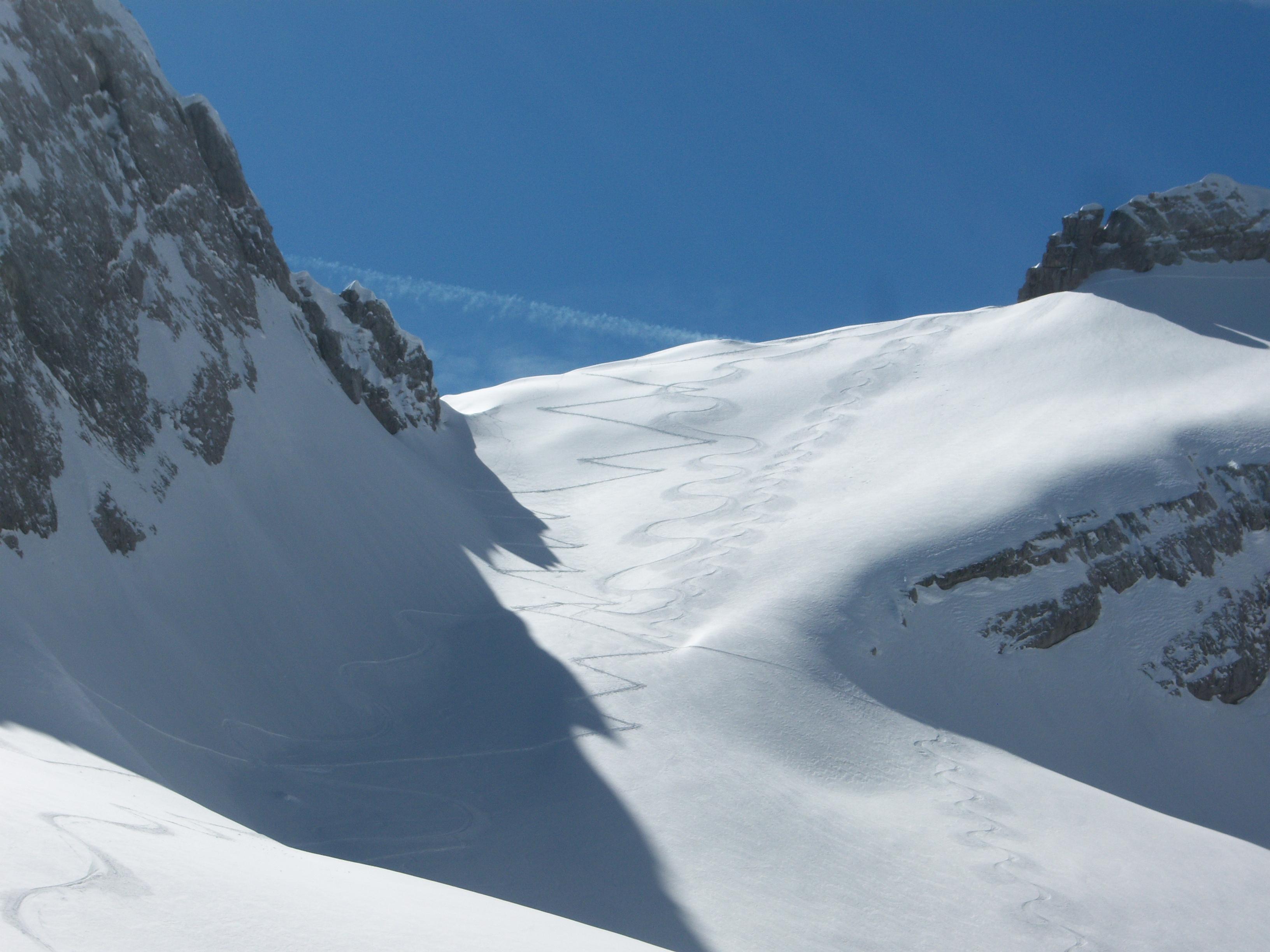 Mit dem E-Klappradl zur Kührointhalm. Hat noch nicht offen, sperrt aber bald auf. 40 Minuten Skitragen. In der Früh war das Wetter noch schön, dann trübt es sich etwas ein, aber windstill. Überall schöner Sommerfirn, nur der letzte Hang zur Slkischarte ist ein Gatsch, es ist schon einiges abgerutscht,es hat über Nacht Plusgrade gehabt. Kein Mensch unterwegs, aber dann seh ich doch drei Leute auf dem ausapernden Dritten Kind sitzen. Abfahrt über die Kante ein Stück in den Lärchenwald, das geht aber bald nicht mehr. In 20 Minuten zum Radl.Die Fotos sind nicht von heute, da ich die heutigen Bilder nicht laden kann, weiss der Teufel warum...