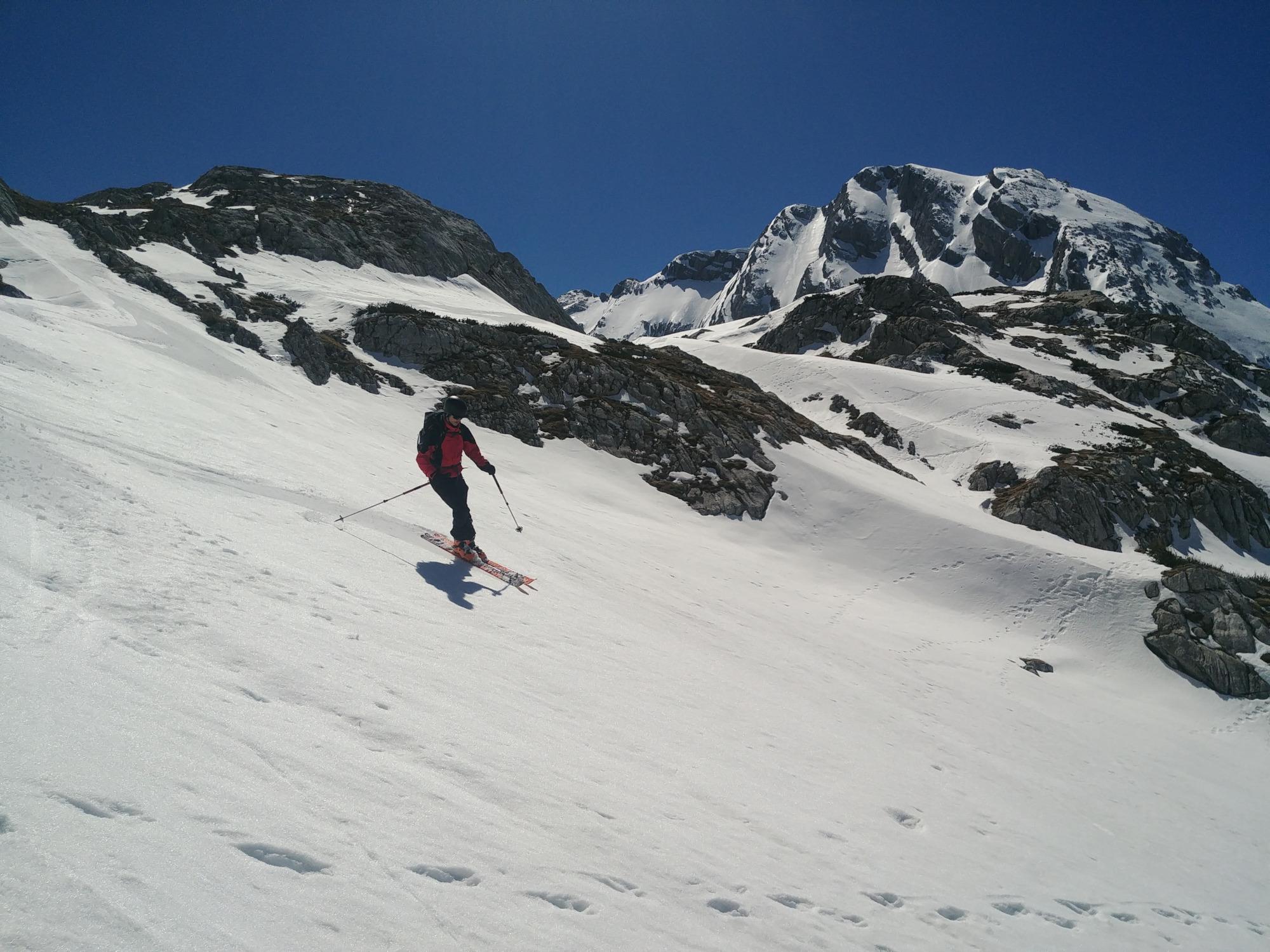 Abfahrt Richtung Seeleinsee und kurzer Gegenanstieg zum Fagstein, um von dort übers Reinersbergbrückerl ein letztes Mal bei immer noch sehr schönem Firn abzufahren (13:30 dann etwa).