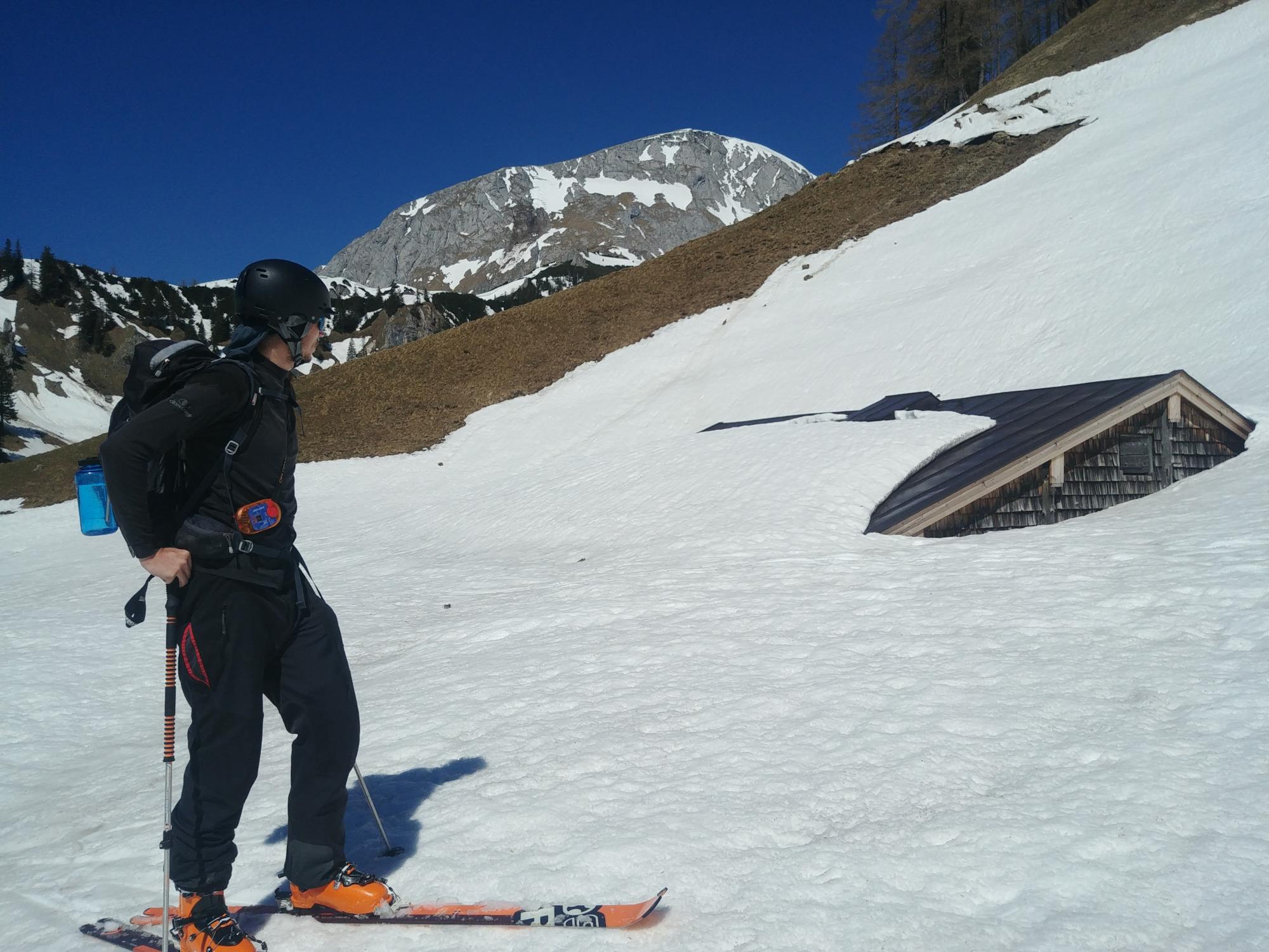 Es ist Ende April und die Saison scheint noch lange zu gehen, zumindest im Hinterbrand-Bereich. Momentan spärliches Tragen bis zur Mittelstation, dann hätte man auch schon durchgehendes Schneevergnügen, wär da nicht die Straße an der Mitterkaseralm vorbei, die heuer wegen der Bauarbeiten geräumt wurde.
