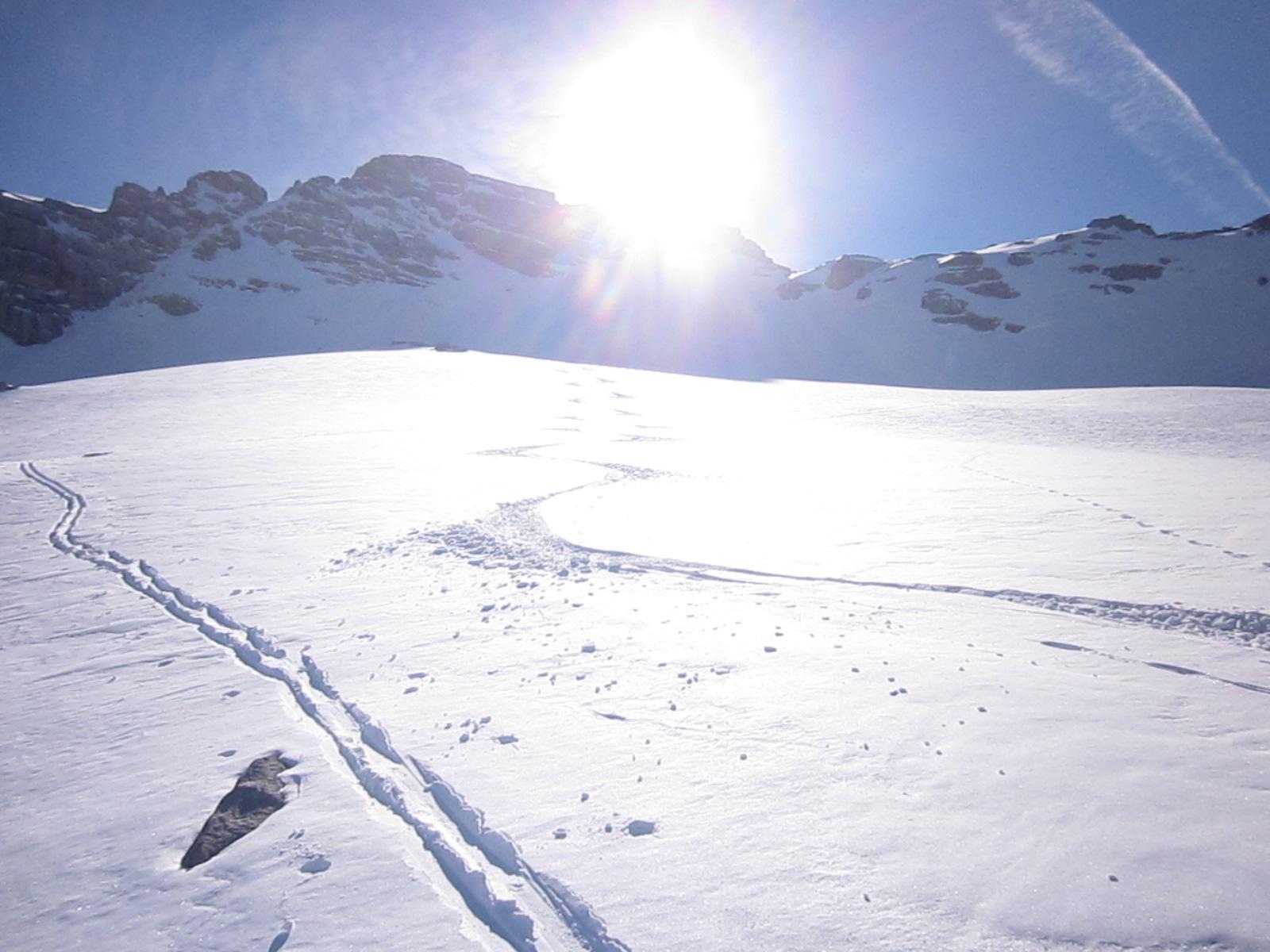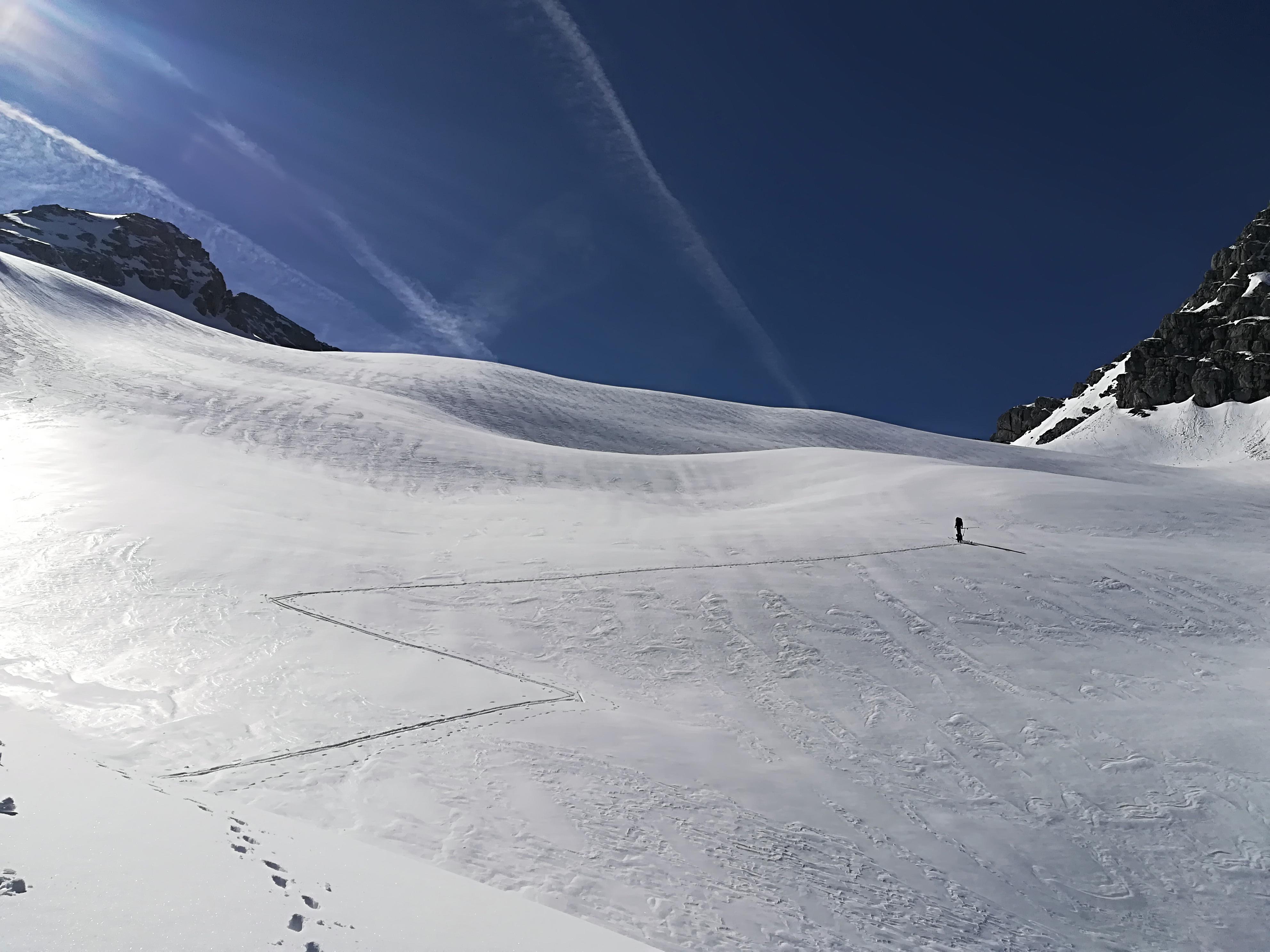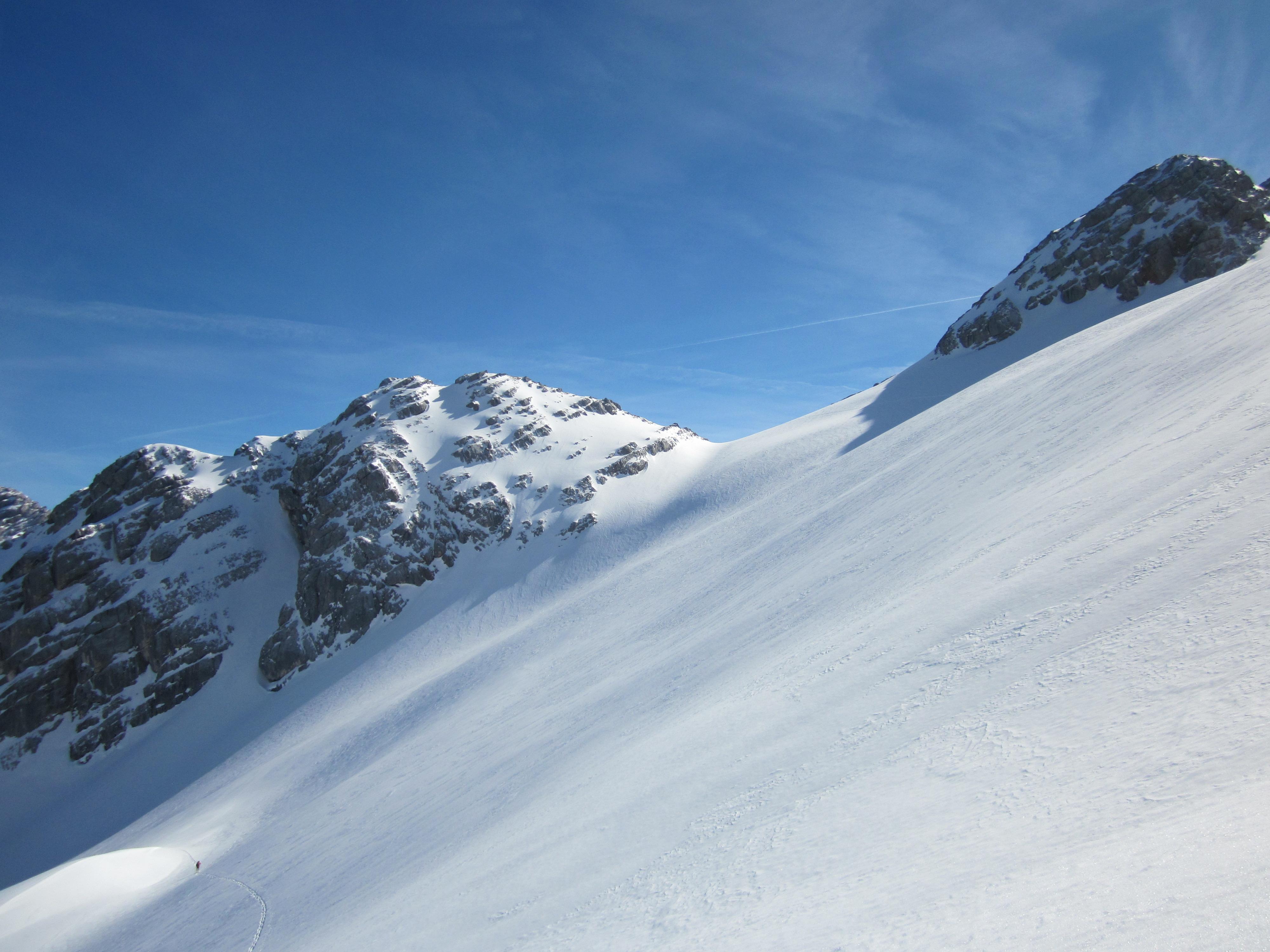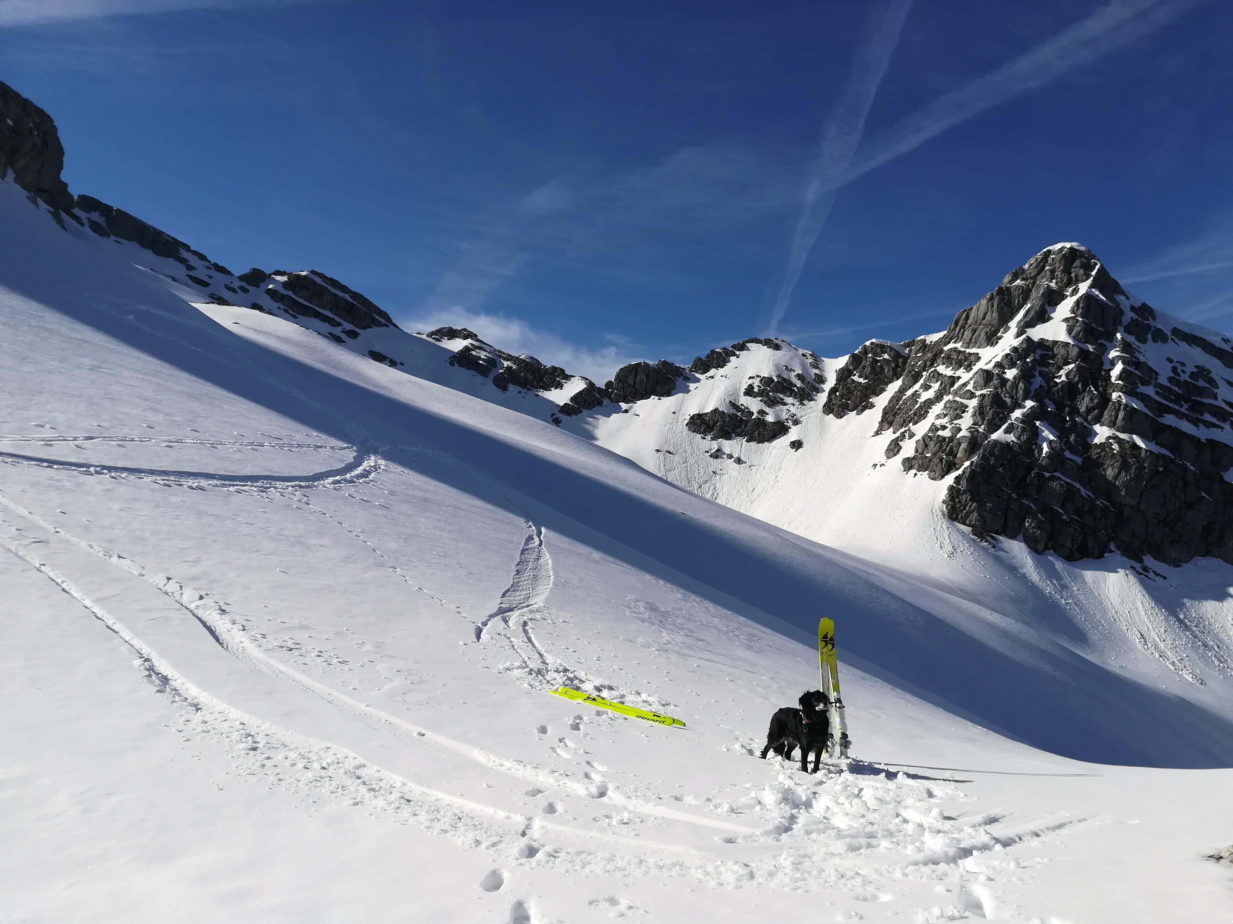 Immer noch Top-Verhältnisse in der Hochgrub und im Dürrkar. Zitat Andi E.: die Hänge muss man sich verdienen.... (oder so ähnlich)- Wie wahr: 27,5 km und knapp 2.000 Hm.