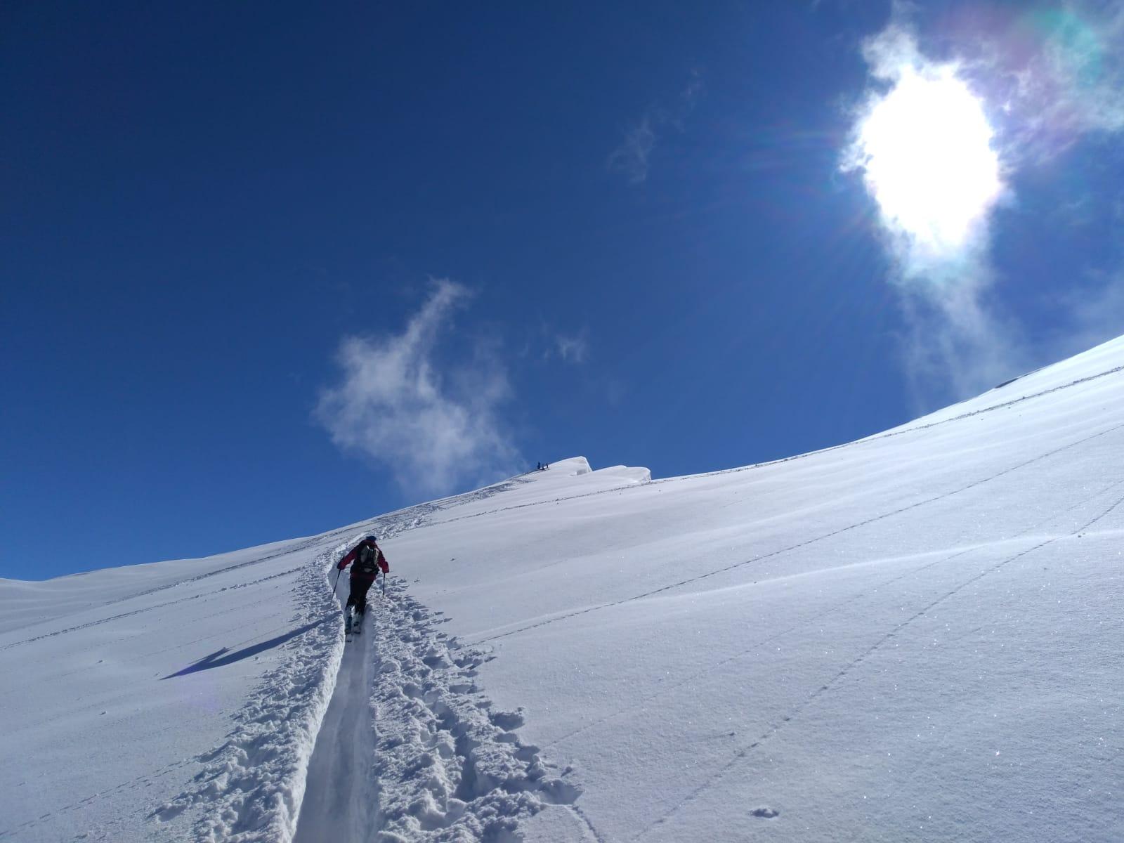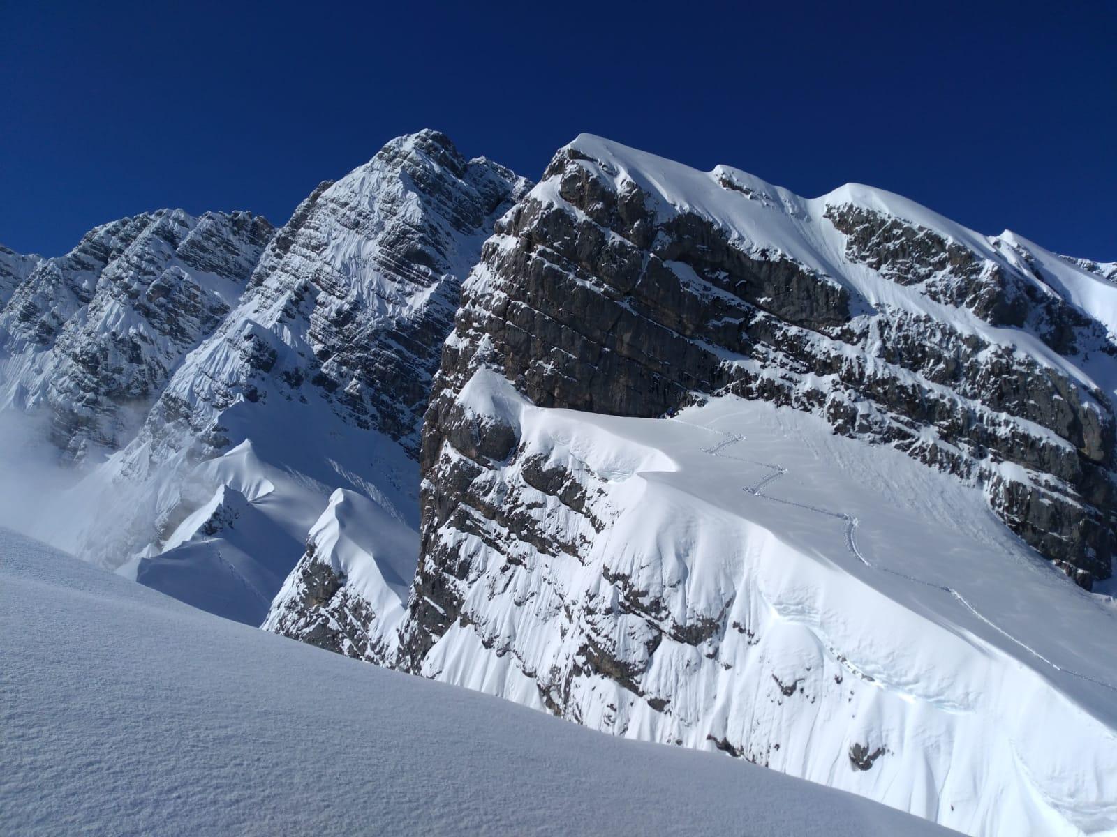 Schnee : im Waldgürtel ca 20cm Pulver,am Gipfelhang ca die doppelte Menge, Neuschnee im Kar auf Harschdeckel.