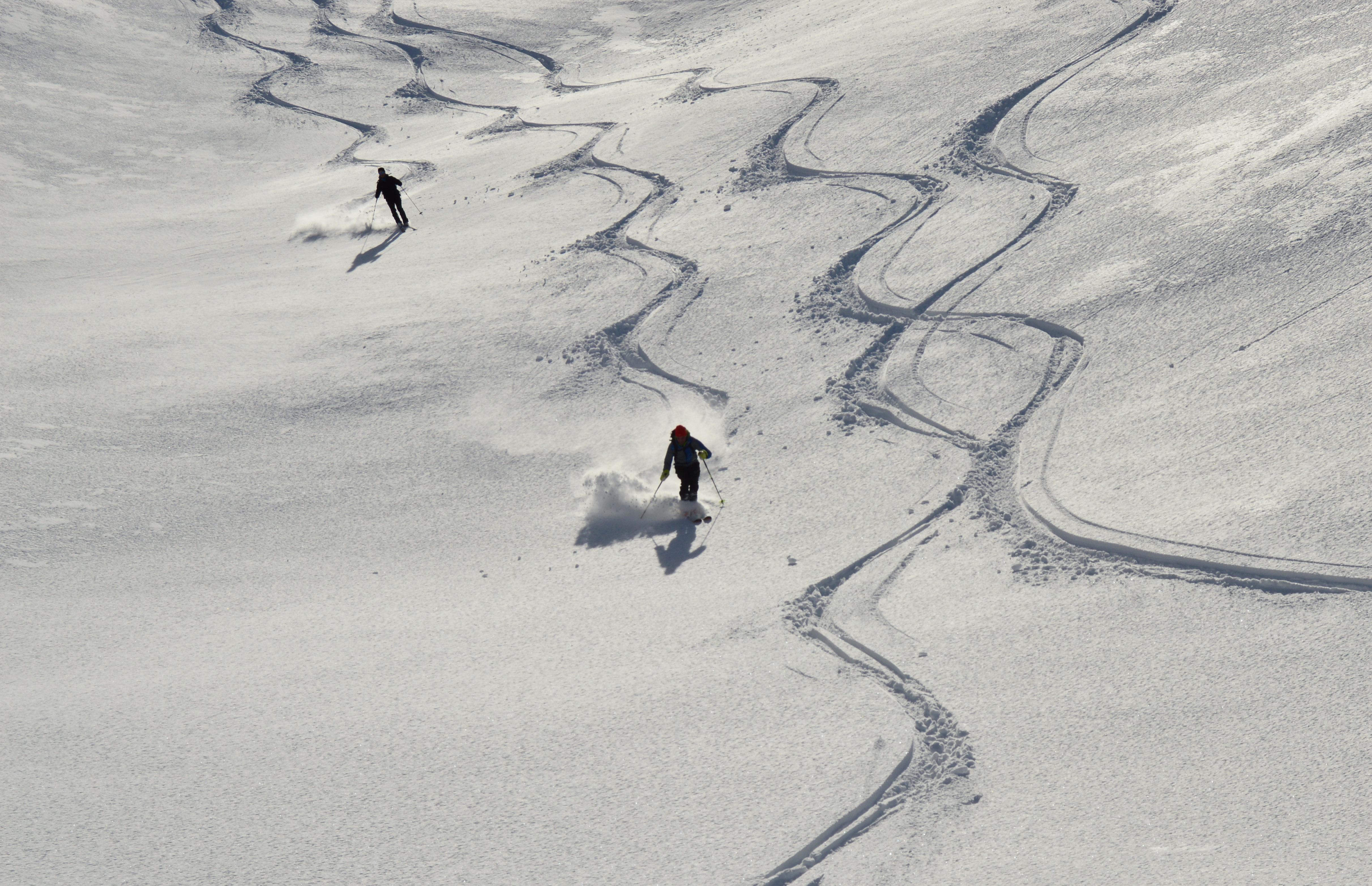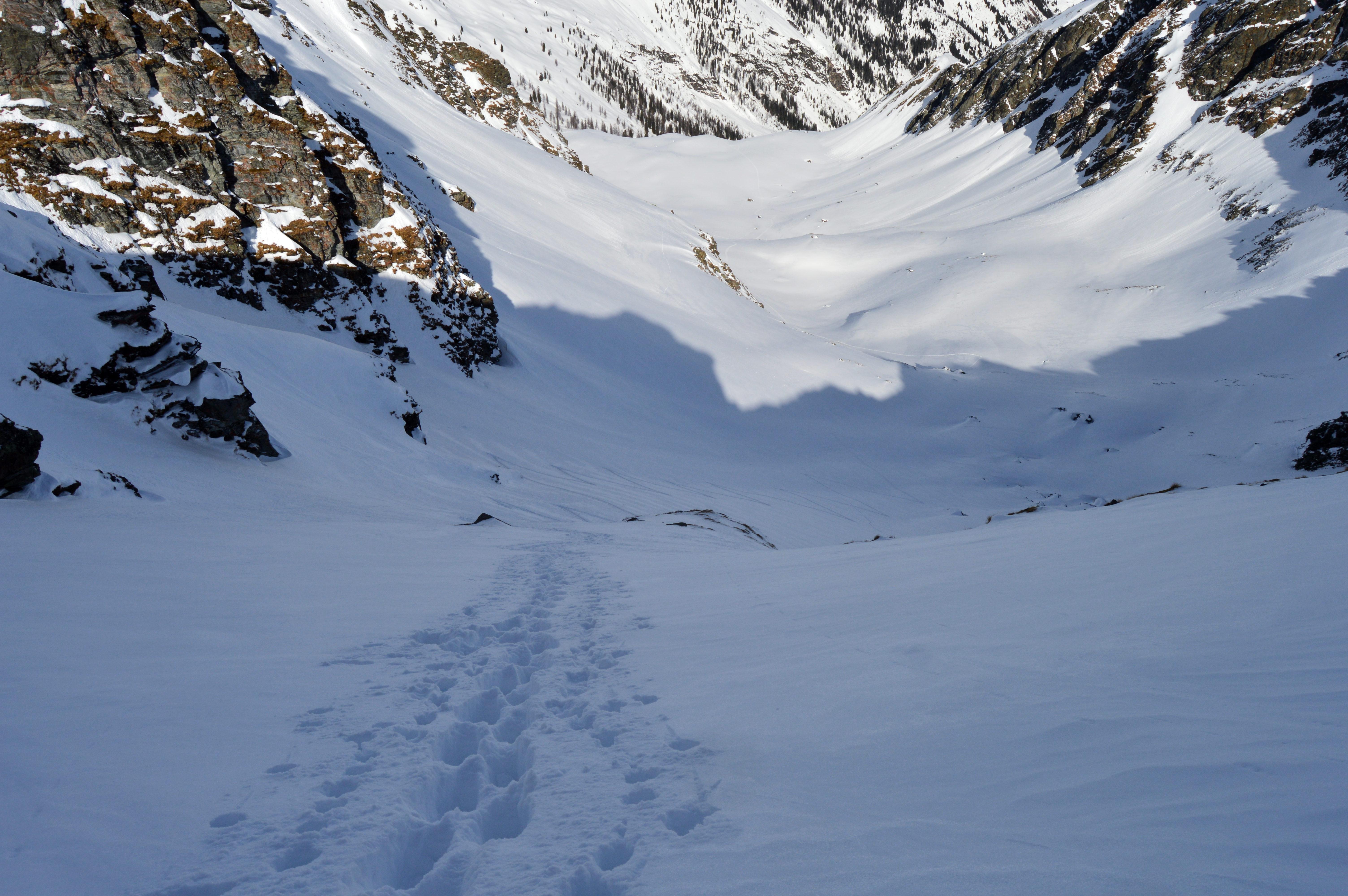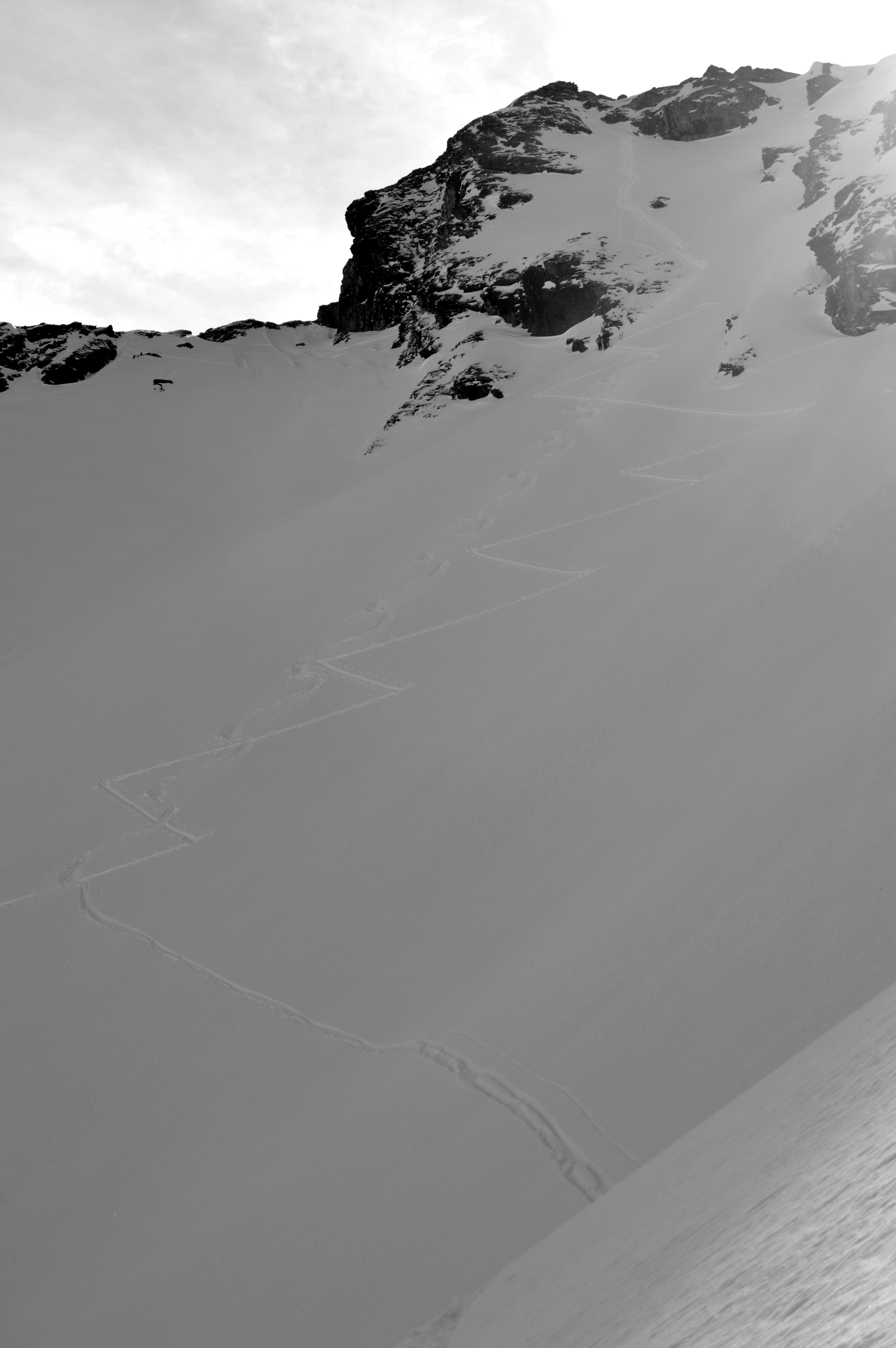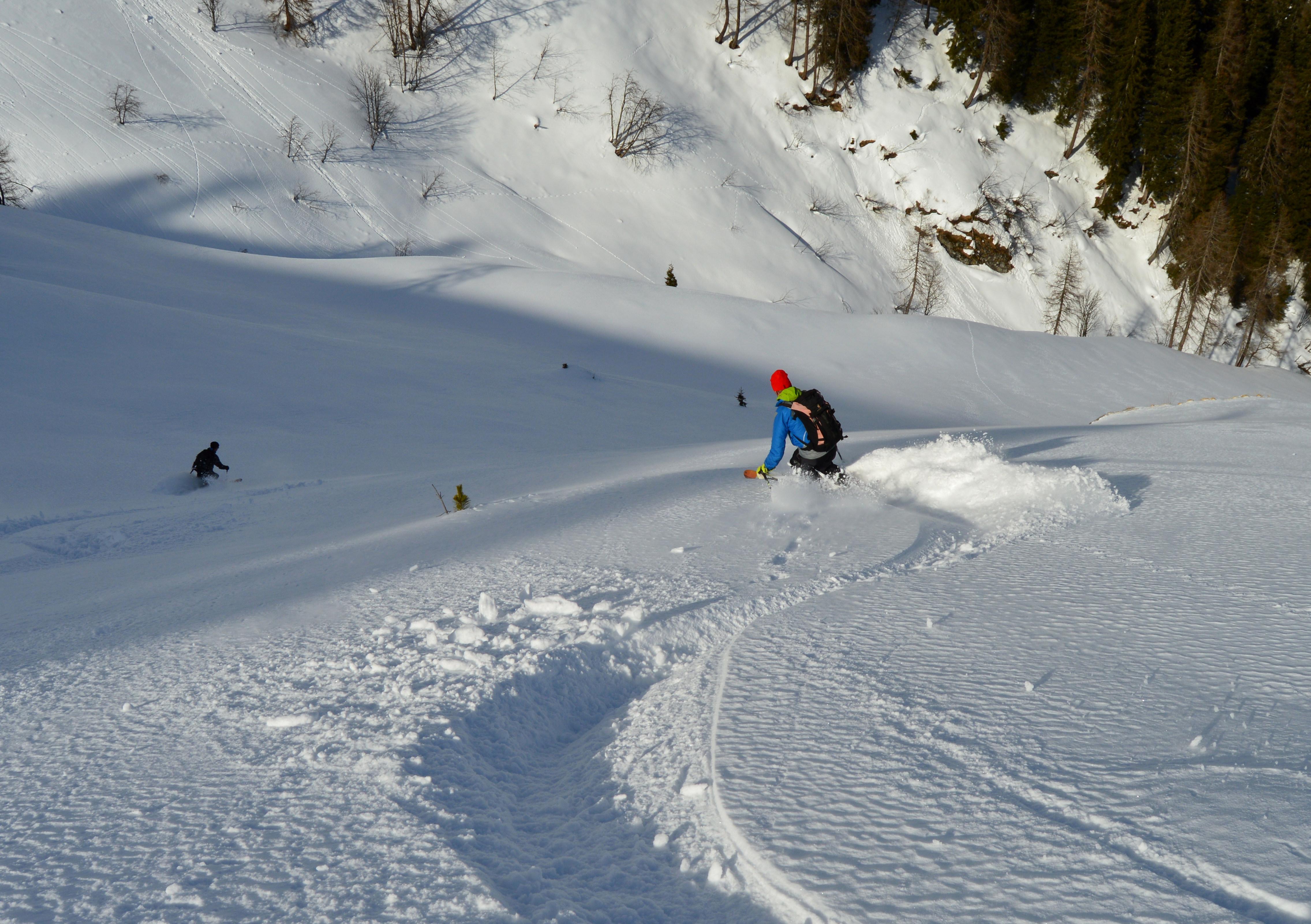 Am Blessachkopf zieren auch schon drei Spuren die riesigen Hänge ins Hollersbachtal.