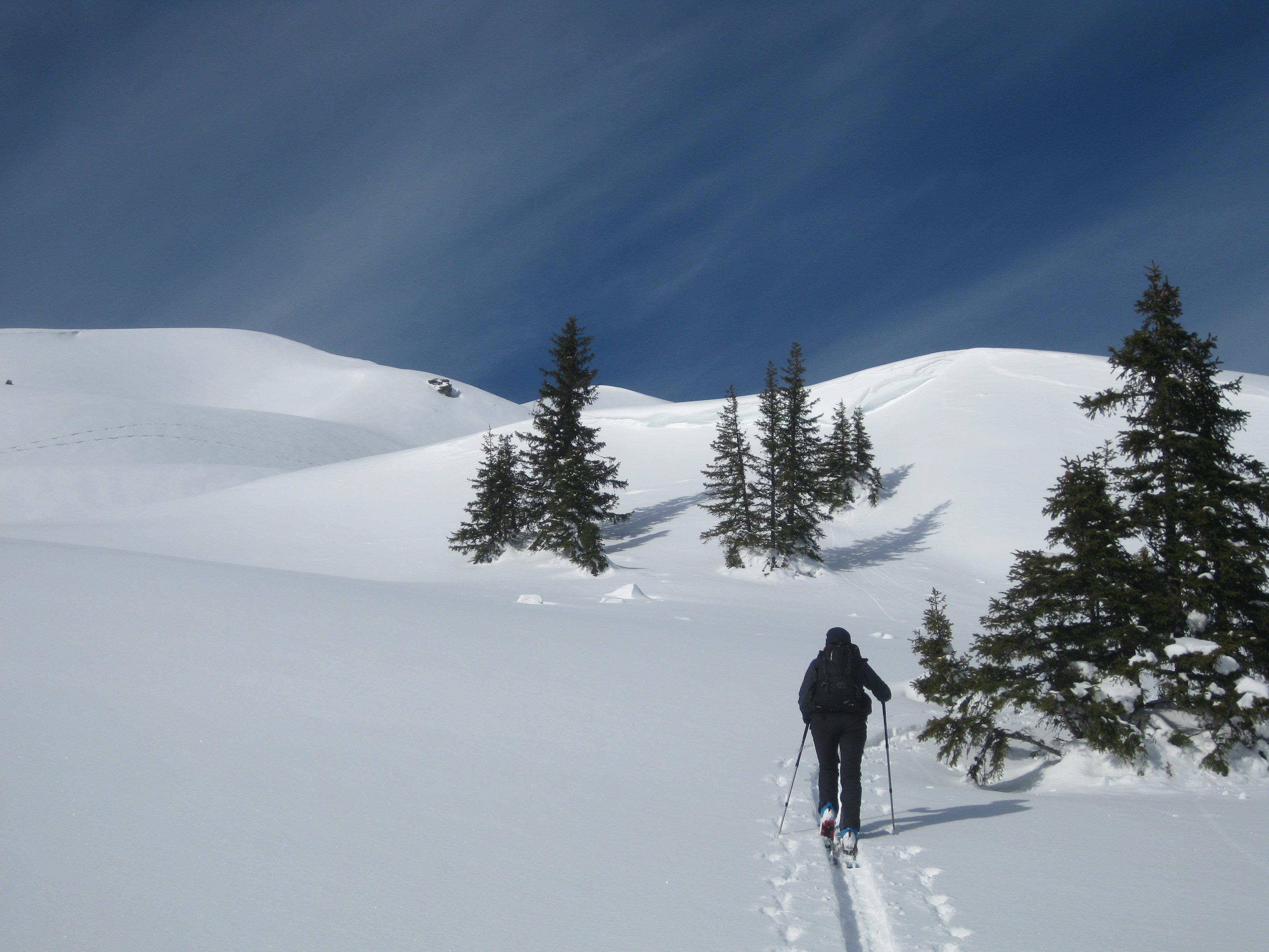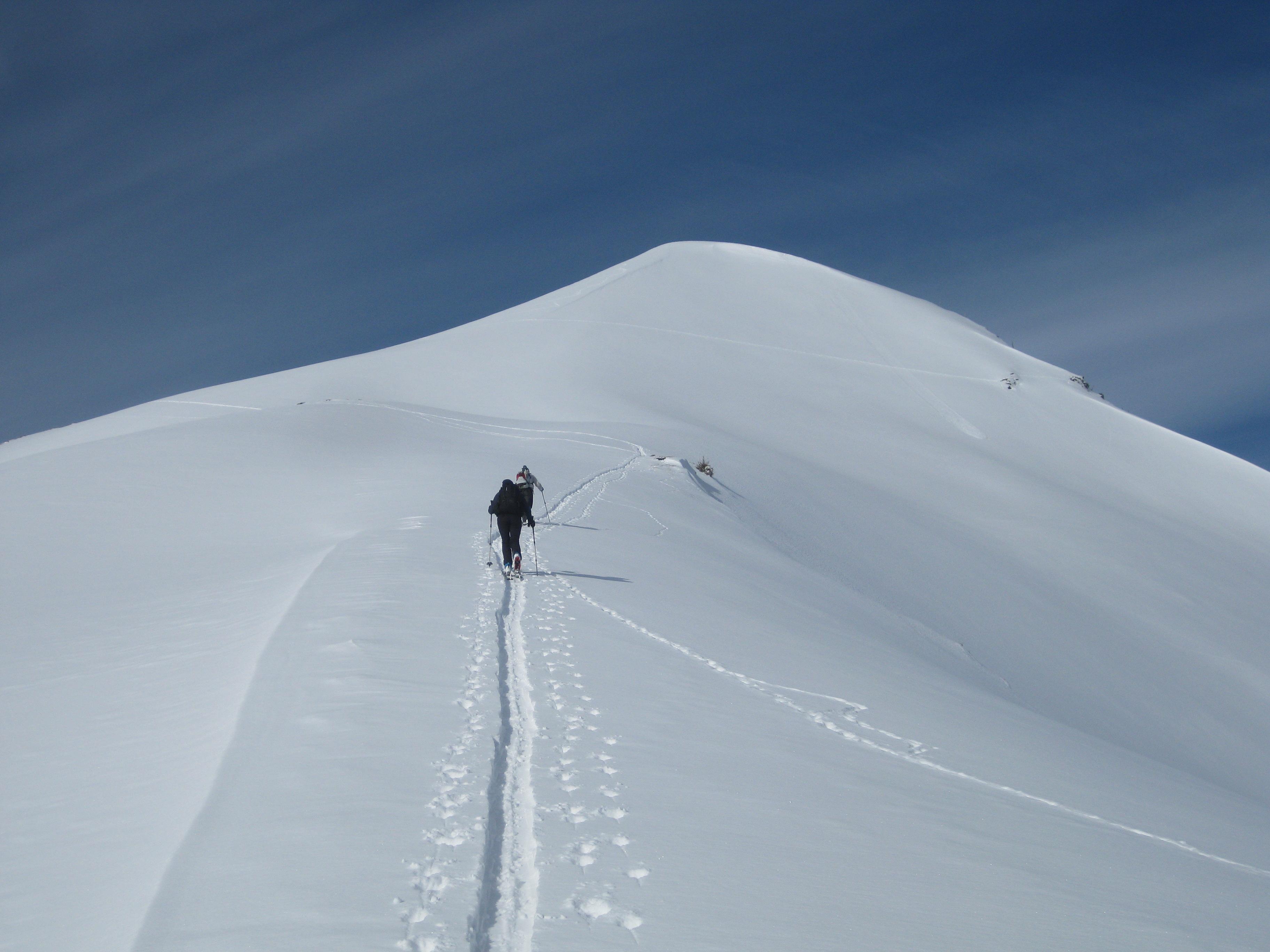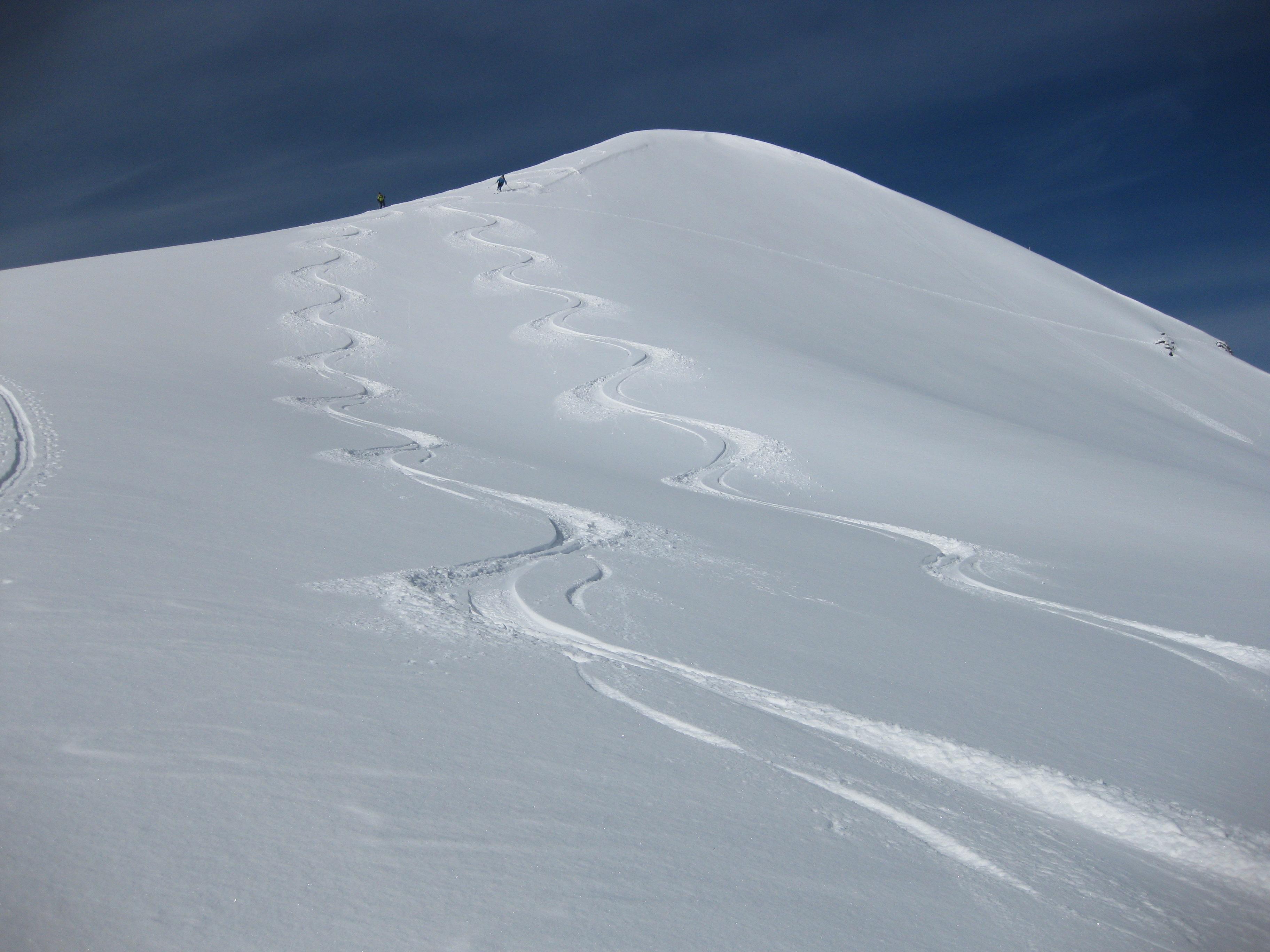 Die richtige Wahl getroffen .Nach der gestrigen Sausteigentour die schon absolut ok war, haben wir für heut ein Schmankerl ausgesucht. Top Bedingungen ca.10- 25 cm Pulverauflage und das vom Gipfel weg bis unten auf gut gestezter Schneedecke. Den Berg hatten wir fast für uns allein nur 2 Tourengeher kamen nach.