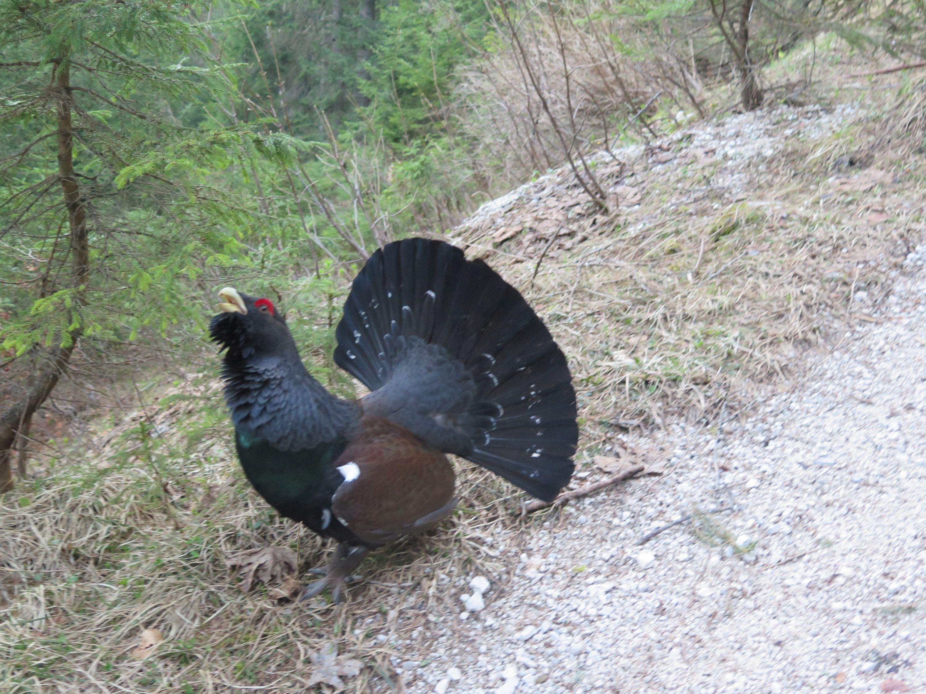 Höhepunkt heute, der prächtige Auerhahn der uns beim Auf und Abstieg