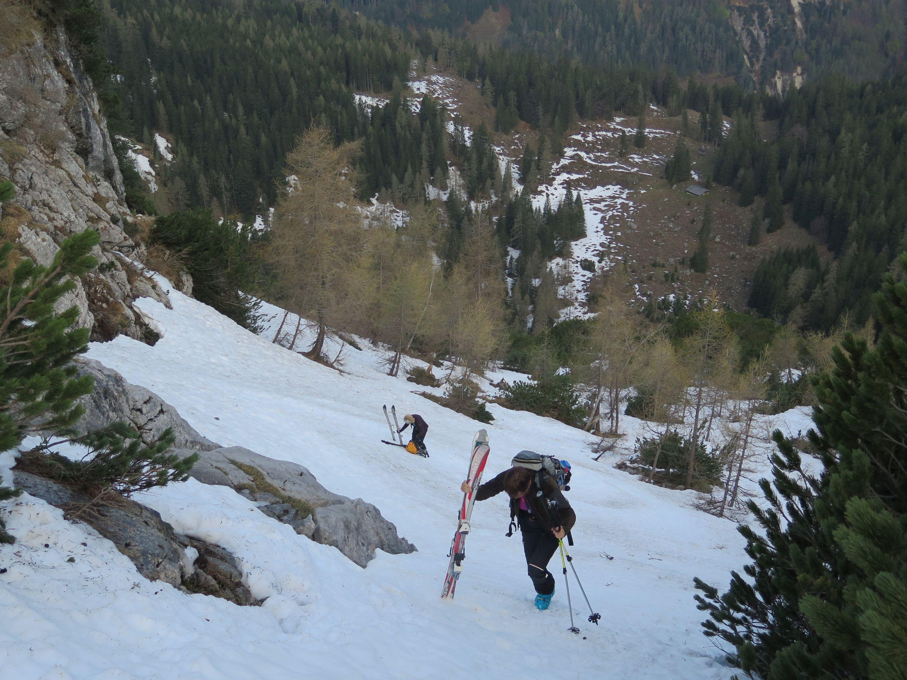 Berchtesgadner. Tragestrecke bis Mittereisalm, bis zum ersten Schnee mühsam durch die Latschen.